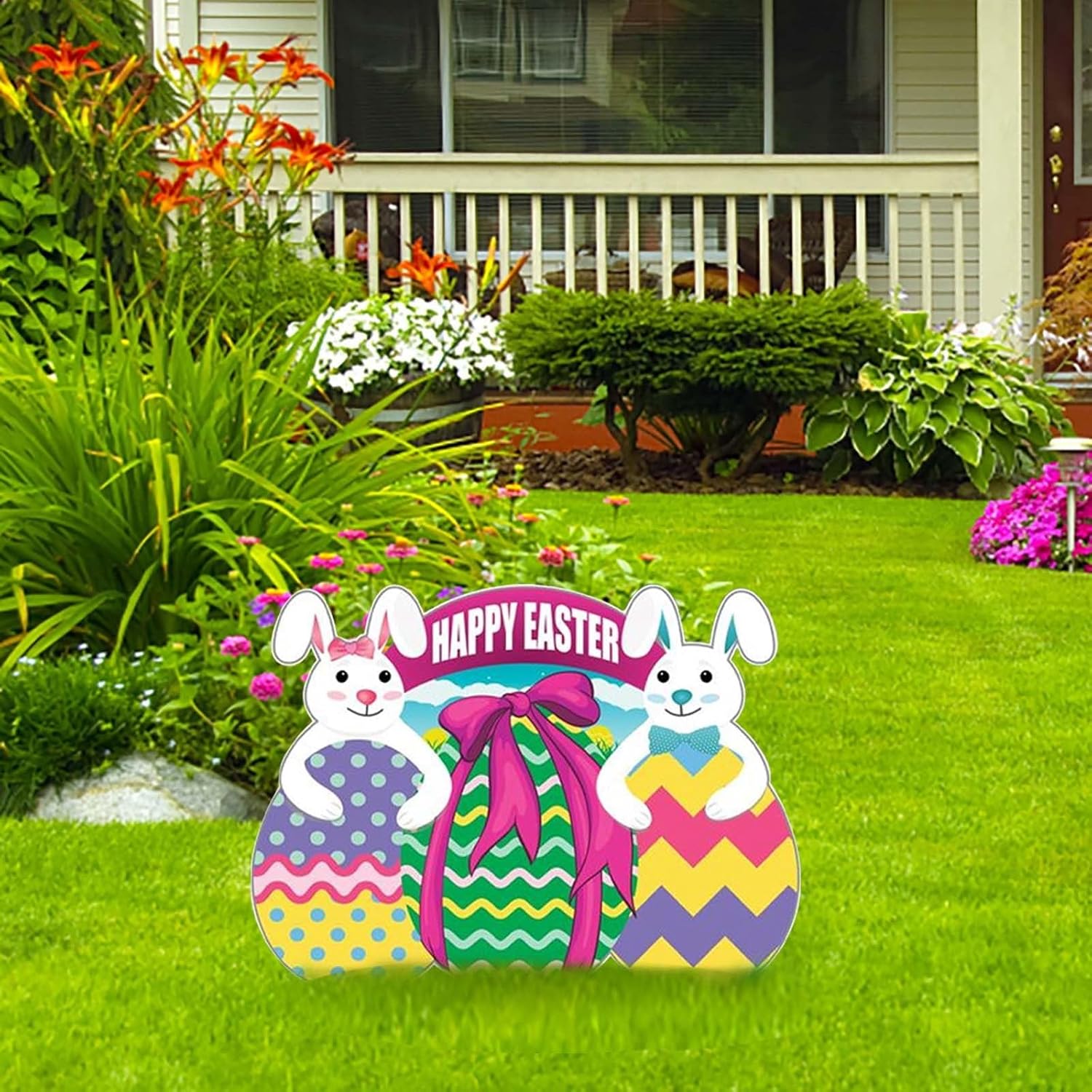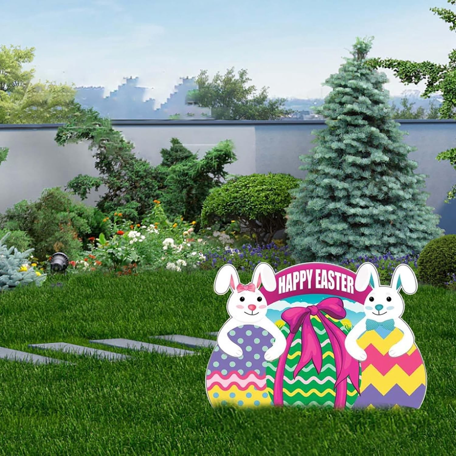 Logo da giardino esterno: realizzato con materiali di alta qualità, durevole e decorativo. Logo del coniglio: design classico pasquale, pulcino dei cartoni animati e motivo colorato con uova di Pasqua renderanno il tuo giardino più bello e bello. Coniglietto: coniglietto pasquale – La dimensione si adatta alla maggior parte delle scene e, con alcuni oggetti di scena festivi, funziona ancora meglio. Segnaletica: decorazione per feste pasquali, splendidamente realizzata con texture realistica, piena di atmosfera festiva. Decorazioni da giardino pasquale