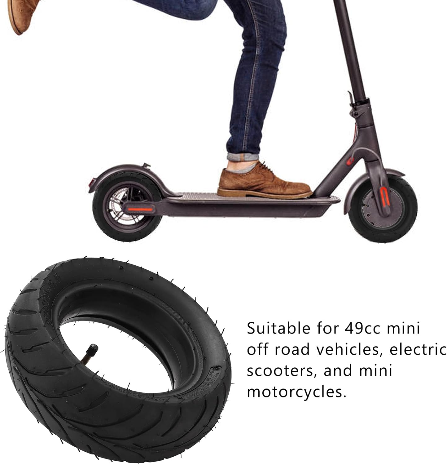 Modello applicabile: adatto per mini fuoristrada da 49 cc, scooter elettrici e mini moto. Alte prestazioni: ha migliori proprietà di tenuta e isolamento elettrico, resistenza all'ozono e resistenza all'invecchiamento. Materiale durevole: realizzato in gomma butilica spessa che assorbe gli urti, resistente all'usura, durevole, sicuro e affidabile. Pneumatici gonfiabili: possono garantire che la pressione sul carico della ruota sia quasi la stessa ovunque. Scopo d'uso: i pneumatici gonfiabili non solo aggiungono comfort alla tua guida, ma garantiscono anche la tua sicurezza.