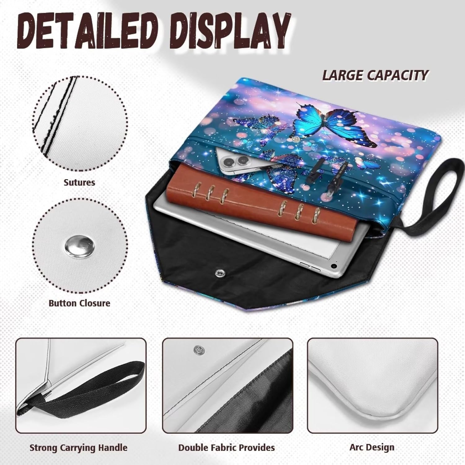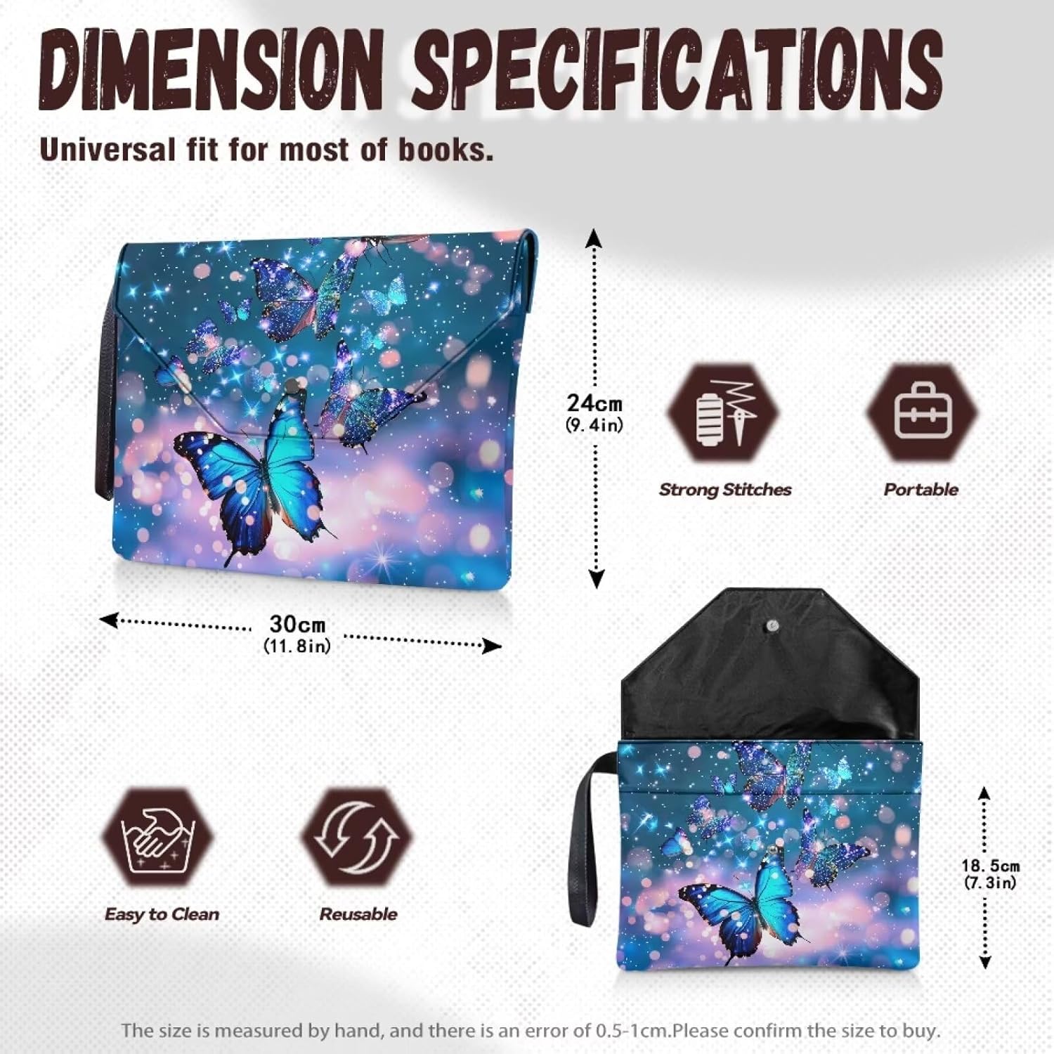 La nostra copertina è un prodotto versatile meticolosamente progettato per proteggere i tuoi libri. Misura circa 30 x 24 cm, con una tasca frontale di circa 30 x 18,5 cm, offre una misura universale per la maggior parte dei libri, libri tascabili, libri di testo, quaderni e libri con copertina rigida. Le sue dimensioni compatte lo rendono facile da infilare in una borsa per un comodo trasporto. Realizzato in poliestere 300D, il tessuto a doppio strato offre una protezione robusta contro lo sbiadimento, mentre le cuciture pulite e robuste garantiscono una lunga durata. Protegge efficacemente i tuoi libri da polvere, macchie, piegature, strappi e pieghe. Inoltre, è facile da lavare a mano e riutilizzabile. Dotato di design a doppia tasca, offre un'ampia capacità di archiviazione. Lo scomparto principale è ideale per libri, diari, tablet e quaderni di cancelleria, mentre la tasca frontale può contenere comodamente occhiali, segnalibri, penne, cosmetici, telefoni, carte, chiavi. Dotato di una chiusura a bottone automatico e di una patta su e giù, è incredibilmente facile da usare. La robusta maniglia laterale consente un sollevamento senza sforzo, rendendolo un gioco da ragazzi da portare in giro. Le nostre copertine per libri sono disponibili in una vasta gamma di motivi carini e intriganti, che vantano colori vivaci e la possibilità di personalizzazione personalizzata. Perfetto per riunioni, ufficio, casa, viaggi, scuola e viaggi d'affari, non solo proteggono i tuoi libri, ma sono anche un articolo premuroso per topi di biblioteca, amici, colleghi, insegnanti e studenti. Nota: 1. Si prega di assicurarsi che le specifiche delle dimensioni di questo prodotto siano adatte ai vostri articoli prima dell'acquisto. 2. Questa copertina per libri è lavabile a mano ma non deve essere immersa per lunghi periodi, sbiancata o lavata in acqua superiore a 45ºC. 3. Non è adatto a bambini di età inferiore ai 3 anni.