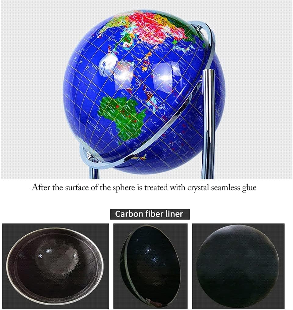 Divertente ed educativo: questo mappamondo è di buone dimensioni, facile da riporre e trasportare, elegante e pratico. Non sbiadisce facilmente, la lunga durata rende l'apprendimento della geografia più interessante e adatto a studenti di età diverse. Aspetto squisito: staffa universale in metallo a forma di U, alla moda e bella. La superficie della staffa metallica è placcata con cromo decorativo brillante e l'effetto specchio è più bello. Materiale selezionato: lo stampo del serbatoio interno è un dispositivo di lavorazione di precisione CNC e il metodo di raschiatura viene utilizzato per raschiare lo stampo. È realizzato in fibra di carbonio mescolata con resina epossidica siliconica. Una volta formate le due metà, unitele in modo che il tutto combaci. Squisita fattura: dopo che la superficie della palla è stata trattata con colla senza cuciture, ha una consistenza unica e i vantaggi di elevata luminosità, resistenza all'usura e facile pulizia. La superficie può essere pulita con acqua e panno, resistente e non facile da sbiadire! Dettagli e caratteristiche: Il globo posto sulla base può ruotare in tutte le direzioni. Allo stesso tempo, secondo il design del globo stesso, non importa come il globo viene ruotato orizzontalmente, alla fine ritornerà automaticamente alla sua posizione originale per garantire che la sfera mantenga la posizione dell'angolo giallo-rosso.