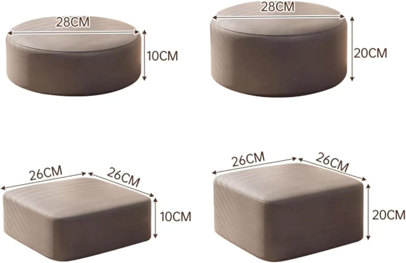 * materiale: realizzato con tessuti tecnici, delicato sulla pelle e resistente all'usura, ampia superficie di seduta non affollata, facile da sedersi, cablaggio stretto, tessuto tecnico bello e robusto, confortevole, traspirante e al tatto, questo sgabello è lo stile decorativo perfetto per il tuo divano e qualsiasi stanza della tua casa e aggiungi un tocco di colore a qualsiasi stanza o design d'interni. * sedile comodo: spugna ad alta densità, nessun collasso quando si è seduti per lungo tempo, comoda superficie dello sgabello, consistenza morbida, superficie dello sgabello ispessita, comodo per sedersi a lungo, elastico e morbido quando usato, comodo se si cammina i tuoi piedi o sederti sopra. * dimensioni: rotondo: 28x10 cm/11 x 3,9 pollici, 28x20 cm/11 x 7,8 pollici, quadrato: 26x26x10 cm/10,2x10,2x3,9 pollici, 26x26x20 cm/10,2x10,2x7,8 pollici, questo pouf compatto offre un comodo poggiapiedi che non ti ostacolerà. aggiungi un poggiapiedi per fornire supporto e rendere più confortevole il tuo divano o sedia. * struttura in legno massello: struttura in legno massello di qualità, stabile e durevole, impilata e riposta nell'angolo, uso sapiente dello spazio del mobile, semplice e versatile, coesistenza estetica, gradevole alla vista, molto facile da pulire e mantenere, basta pulire la macchia con un asciugamano bagnato. * multifunzionale: utilizzato in scene multifunzionali, il poggiapiedi è molto adatto per sedersi o riposare, può essere utilizzato come poggiapiedi, sgabello per bambini, sgabello da tè per divano, sgabello basso, poggiapiedi, sgabello per gradini, ecc., che è molto adatto per corridoi d'ingresso e soggiorni, camere da letto, balconi o qualsiasi altro punto della casa.