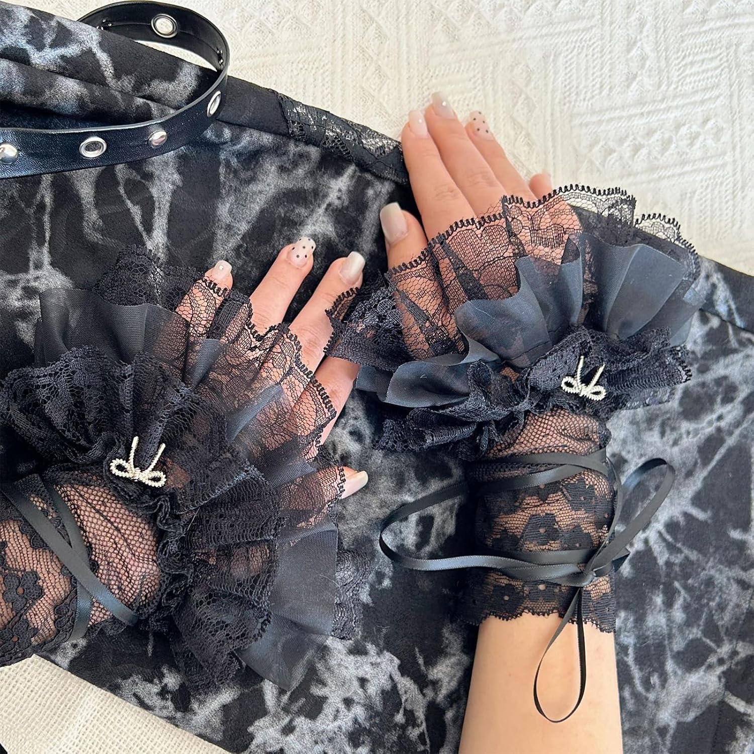 Bella decorazione Balletcore per maglioni, cappotti, camicie, abiti, uniformi, giacche e altri vestiti casual... Evidenzia la tua moda con questi squisiti polsini da polso, elegante accessorio per qualsiasi outfit. Polsini in pizzo elaborati, staccabili ed eleganti. Materiali in poliestere, comodo al tatto e morbido da indossare. Adatto per riunioni di lavoro, cene e altre occasioni formali, aggiungendo moda al tuo vestito.