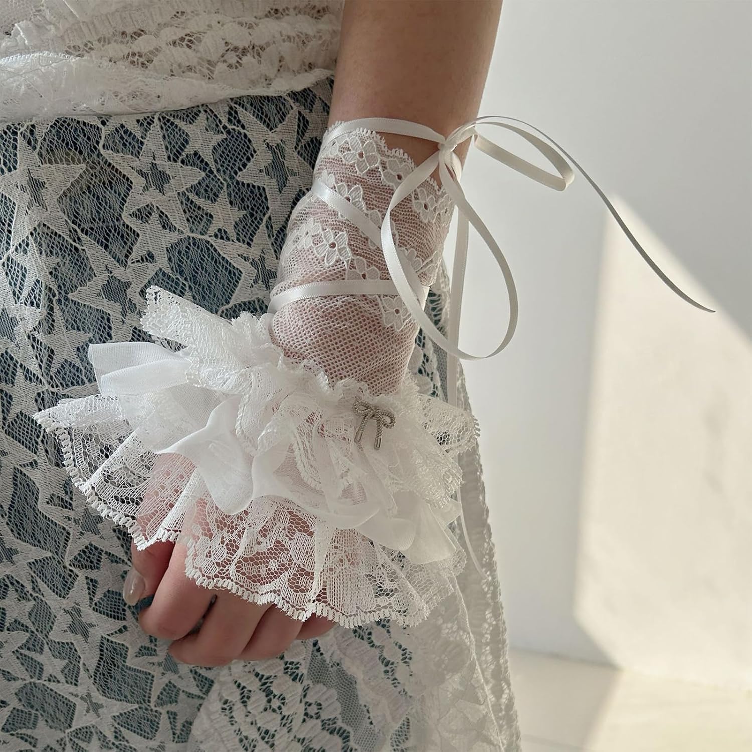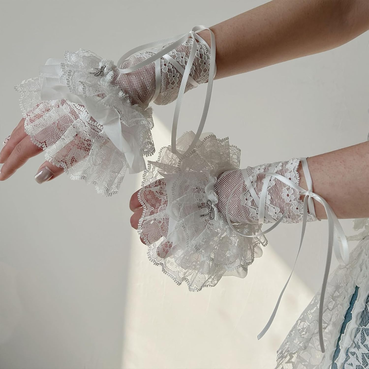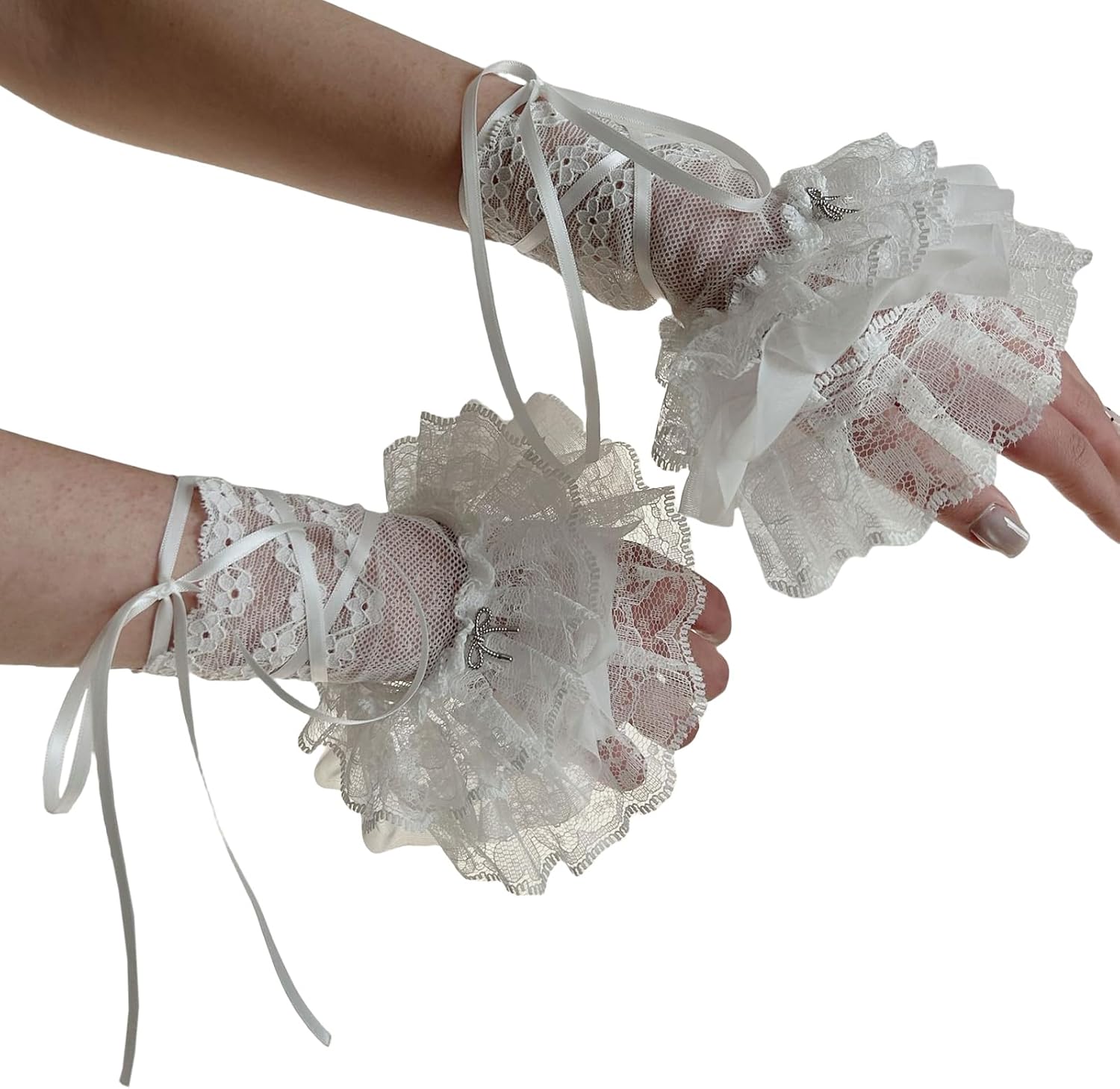 Bella decorazione Balletcore per maglioni, cappotti, camicie, abiti, uniformi, giacche e altri vestiti casual... Evidenzia la tua moda con questi squisiti polsini da polso, elegante accessorio per qualsiasi outfit. Polsini in pizzo elaborati, staccabili ed eleganti. Materiali in poliestere, comodo al tatto e morbido da indossare. Adatto per riunioni di lavoro, cene e altre occasioni formali, aggiungendo moda al tuo vestito.