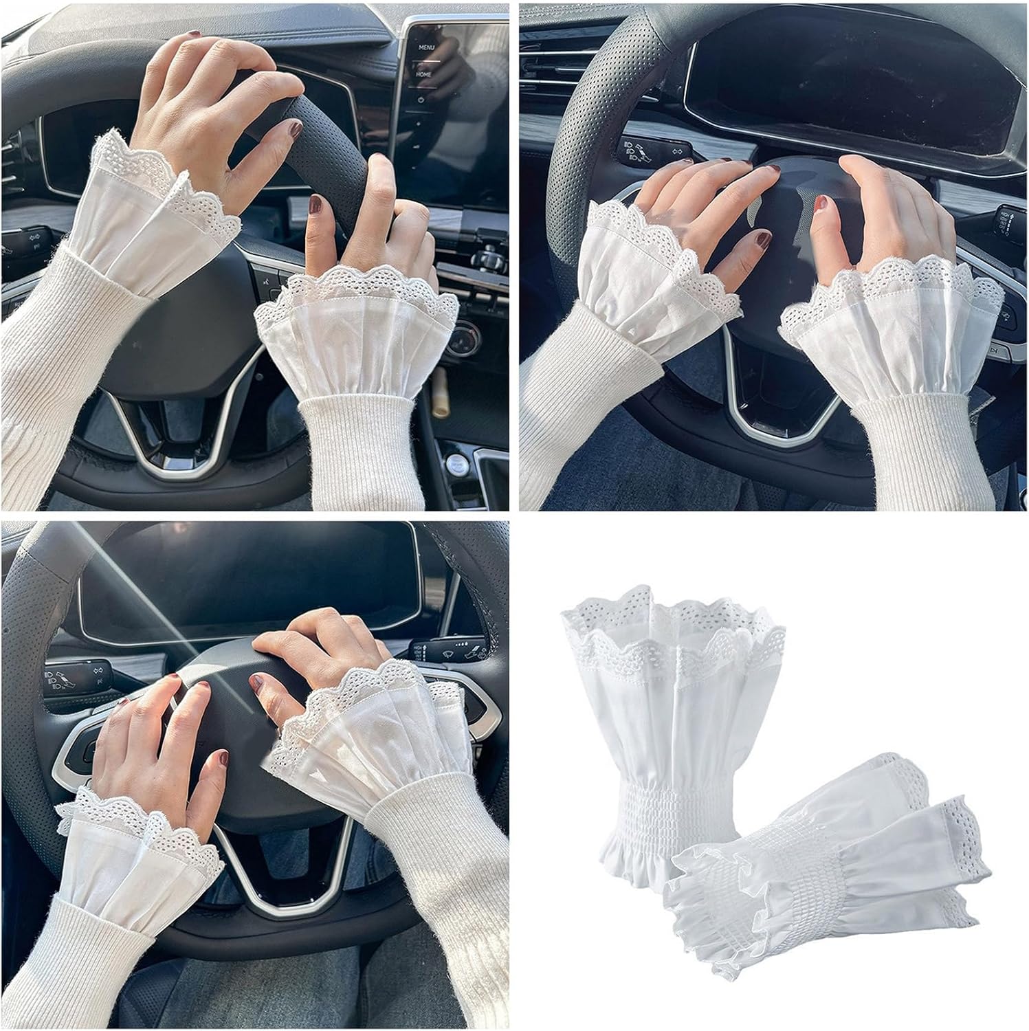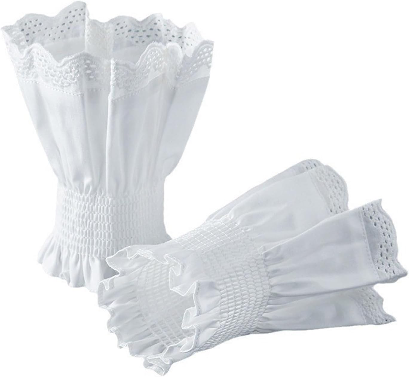 Polsini svasati con volant staccabili. Semplice, i polsini W si abbinano a tutti i tipi di vestiti senza pressione. Decora perfettamente le maniche delle ragazze per rendere il tuo vestito più fatato e . Con poliestere, comodo al tatto e morbido da indossare. Bella decorazione di maglioni, cappotti, camicie, abiti, uniformi, giacche e altri vestiti casual per renderlo bello. La confezione include: 1 paio di polsini da polso