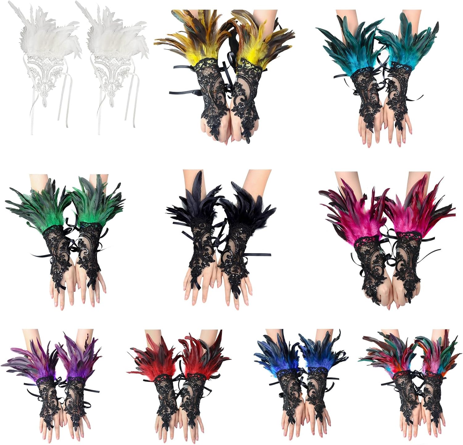 Caratteristiche: I guanti da merletto mostrano stili eleganti. Elegante piumato e nastro evidenziano la tua bellezza. Per cosplay, donne che partecipano a matrimoni, ospiti a banchetti e celebrazioni... Completa perfettamente abiti da sera e abiti da ballo, esaltando il look generale con dettagli raffinati e fascino distintivo. Matrimonio, banchetti, celebrazioni e altre occasioni. Specifiche tecniche: Componente: Lacework Colore: 10 Opzione Dimensioni: circa 25 x 15 cm. Quantità: 1 paio. Nota: 1. Si prega di considerare un margine di errore di 1-2 cm dovuto alla misurazione manuale. 2. A causa delle differenze tra i diversi monitor, l'immagine potrebbe non riflettere esattamente il colore reale. La confezione include: 1 paio di guanti da lavoro con pizzo.