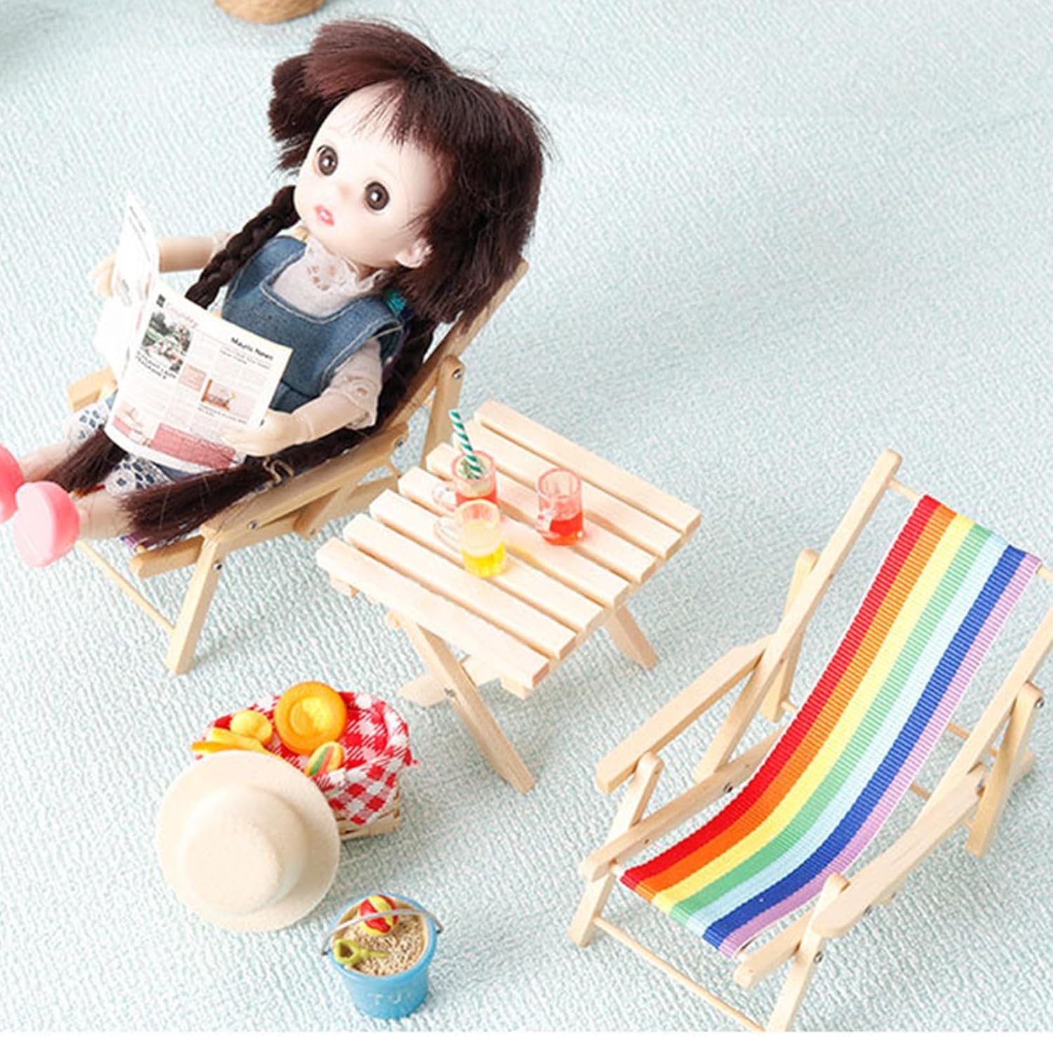 Design semplice per il gioco dei bambini e garantisce avventure liberamente fantasiose in mondi in miniatura per collezionisti. La sedia da spiaggia in legno in scala 1/12, dai vivaci colori dell'arcobaleno, migliora l'estetica della casa delle bambole con una struttura robusta per un gioco divertente e duraturo. Utilizza legno naturale di prima qualità, questa poltrona lounge in miniatura presenta bordi lisci e portabilità, pur mantenendo l'integrità strutturale. Perfetta per bambini creativi di 6 anni e collezionisti di miniature che cercano vivacità, accessori fantasiosi per la casa delle bambole per il gioco interattivo. Ideale per l'artigianato in resort sulla spiaggia. Diorama, avventure in campeggio o lettura di canzoni interne nella bambola. configurazioni di narrazione domestica