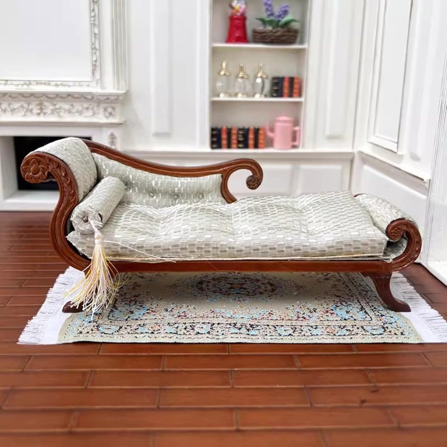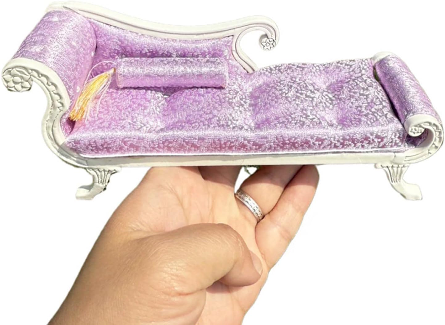 è molto divertente per i decoratori di case delle bambole con materiali in legno. Modello dall'aspetto eccellente, non facile da deformare e innocuo, molto vicino alla realtà. Ottimi oggetti di scena fotografici realizzati con materiali in legno, questo divano visivamente accattivante Modello di divano letto a sdraio dettagliato e vintage, compatto e classico, alto livello di riduzione