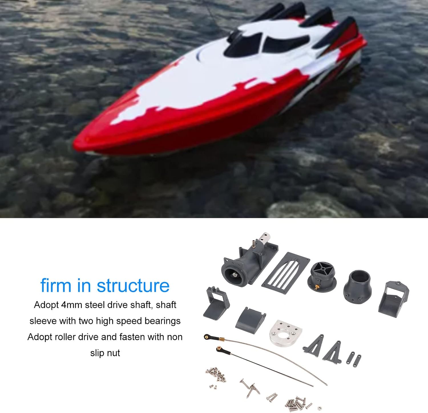 [Materiali robusti] Questo propulsore per barca RC è realizzato con una combinazione di plastica e lega di alluminio, offrendo resistenza, durata e un aspetto elegante eccezionali. [Facile da usare] Questo propulsore per barca RC è progettato per comodità, adatto a tutti i livelli di abilità e in grado di azionare scafi del peso di circa 3-4 kg. [Prestazioni versatili] Con la capacità di andare sia avanti che indietro, questo propulsore offre un'esperienza di navigazione credibile ed efficiente per vari modellini di barche e modifiche di barche RC. [Flessibilità migliorata] La costruzione robusta di questo propulsore migliora la flessibilità della barca, rendendola ideale propulsione potente e riducendo gli impatti delle correnti. [Funzionamento regolare] Dotato di un albero motore in acciaio da 4 mm, due cuscinetti ad alta velocità e un dado di fissaggio antiscivolo, questo propulsore garantisce un funzionamento regolare ' e una facile manutenzione.