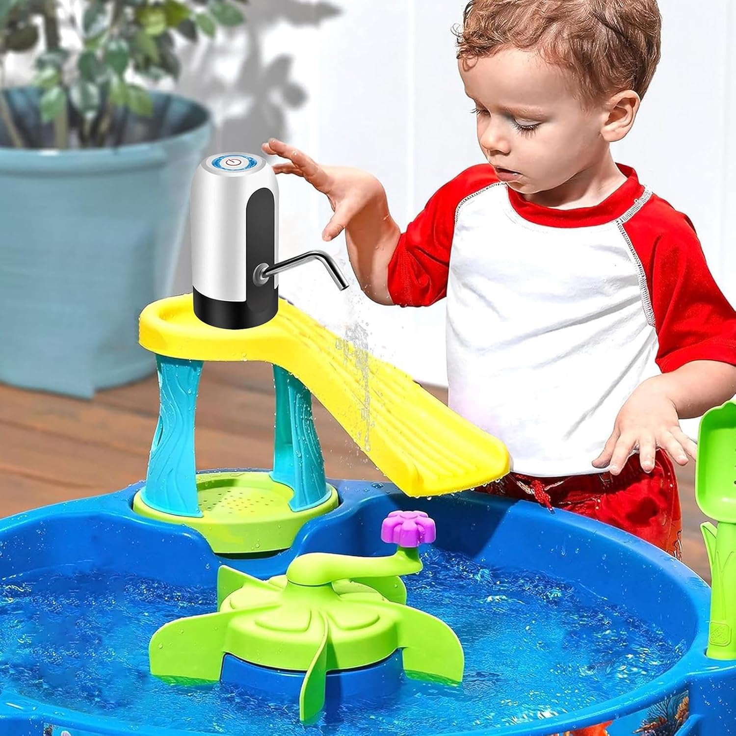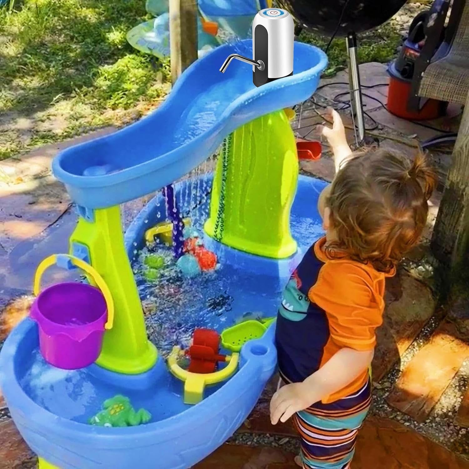 Introduci il gioco dinamico: aumenta la meraviglia dell'acqua con una pompa dell'acqua che incoraggia il gioco fantasioso. È una grande aggiunta alle riunioni all'aperto e al gioco quotidiano. Permette ai bambini di provare l'emozione dell'acqua che scorre e stimola la creatività con una varietà di usi. Nessun cavo disordinato: sperimenta il fascino dell'acqua con la nostra pompa dell'acqua wireless per la falda freatica. Trasforma il tuo contatore dell'acqua in uno divertente e interattivo per i bambini con la nostra semplice conversione. Non sono necessari cavi, solo divertimento ed eccitazione. Installazione senza problemi: installa le nostre pompe dell'acqua senza sforzo praticando un foro nella parte superiore, collegando il tubo al fondo e infilandolo attraverso l'apertura della falda freatica. Guarda il flusso dell'acqua in modo naturale. Facile da usare: preparati per un divertimento senza sosta con la nostra pompa dell'acqua progettata per un pompaggio sicuro e portatile. L'avvio e la batteria ricaricabile integrata consentono il funzionamento indipendente in qualsiasi momento e garantiscono un'esperienza senza preoccupazioni. Prestazioni efficienti: con la nostra pompa dell'acqua progettata per le falde acquifere, puoi goderti un'installazione e uno stoccaggio senza problemi grazie al suo design compatto. Questa pompa facile da usare è adatta a diversi livelli d'acqua, garantendo prestazioni efficienti.
