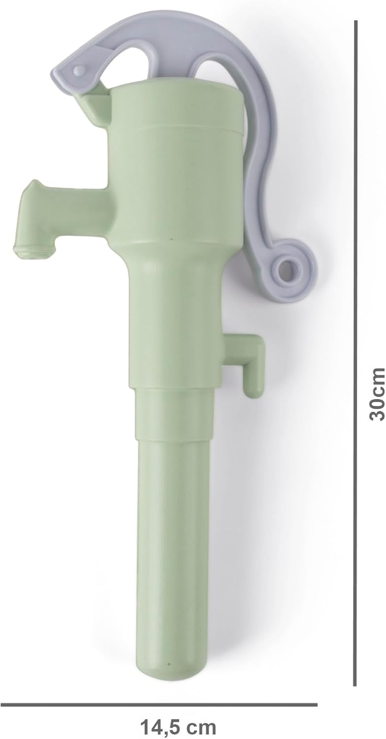 Imparare giocosamente: la pompa dell'acqua per bambini favorisce le capacità motorie, la coordinazione occhio-mano e la destrezza attraverso pompe e siringhe attive. Creatività e fiducia in se stessi: i bambini imparano a gestire l'acqua in modo indipendente, sviluppano l'immaginazione e rafforzano la loro fiducia in se stessi. Robusto e sostenibile: realizzato in plastica riciclata al 100%, durevole, sicuro ed ecologico. Per interni ed esterni: ideale per conchiglie d'acqua, secchi, sabbiere o giardino. Con pratico gancio per il fissaggio. Facile da pulire: giocattolo lavabile in lavastoviglie, dimensioni circa 30 x 14 cm, i colori possono variare.