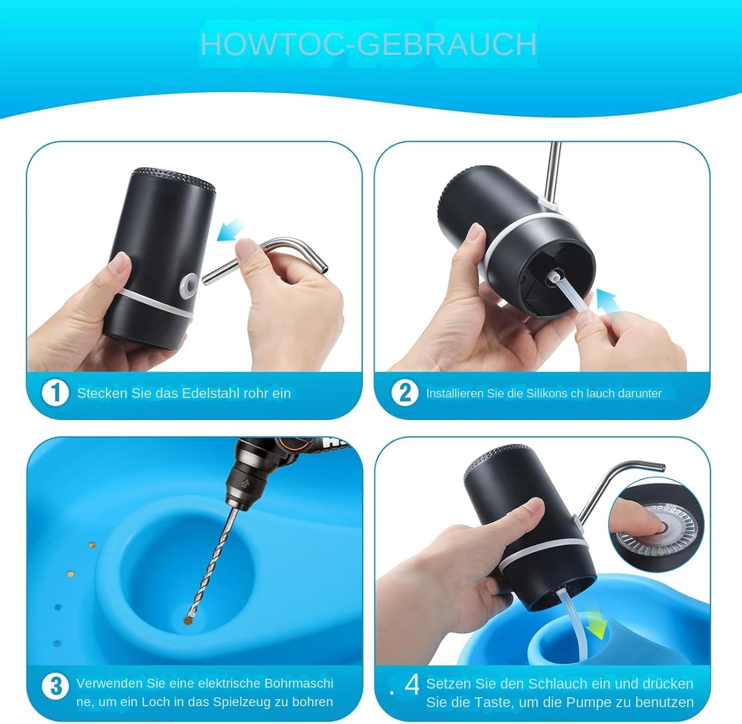 Design wireless: migliora la tua fontana estiva con la nostra pompa da falda wireless e pompala senza sforzo con gli accessori essenziali. Efficienza effettiva del distributore di acqua in bottiglia: installa facilmente la nostra pompa del livello dell'acqua praticando un foro nella parte superiore del tavolo, collegando il tubo con il fondo della pompa e facendolo passare attraverso il foro per far circolare l'acqua liquida. Sicuro e portatile: garantisci la sicurezza di tuo figlio mentre gioca con la nostra pompa dell'acqua. La batteria ricaricabile integrata e l'attivazione 1-top lo rendono una soluzione portatile e conveniente. Divertimento di lunga durata: sfrutta la potenza della nostra pompa dell'acqua per più di 2 ore di gioco continuo dopo ogni pieno carico: i tuoi bambini potranno godersi l'eccitazione continua dall'acqua tutto il giorno! Ampiamente usato: nei giochi di carillon per feste di compleanno, la pompa dell'acqua aggiunge un tocco di eccitazione agli eventi all'aperto. Questa pompa multifunzionale è perfetta per tutte le età e crea un'atmosfera vivace per il massimo divertimento.