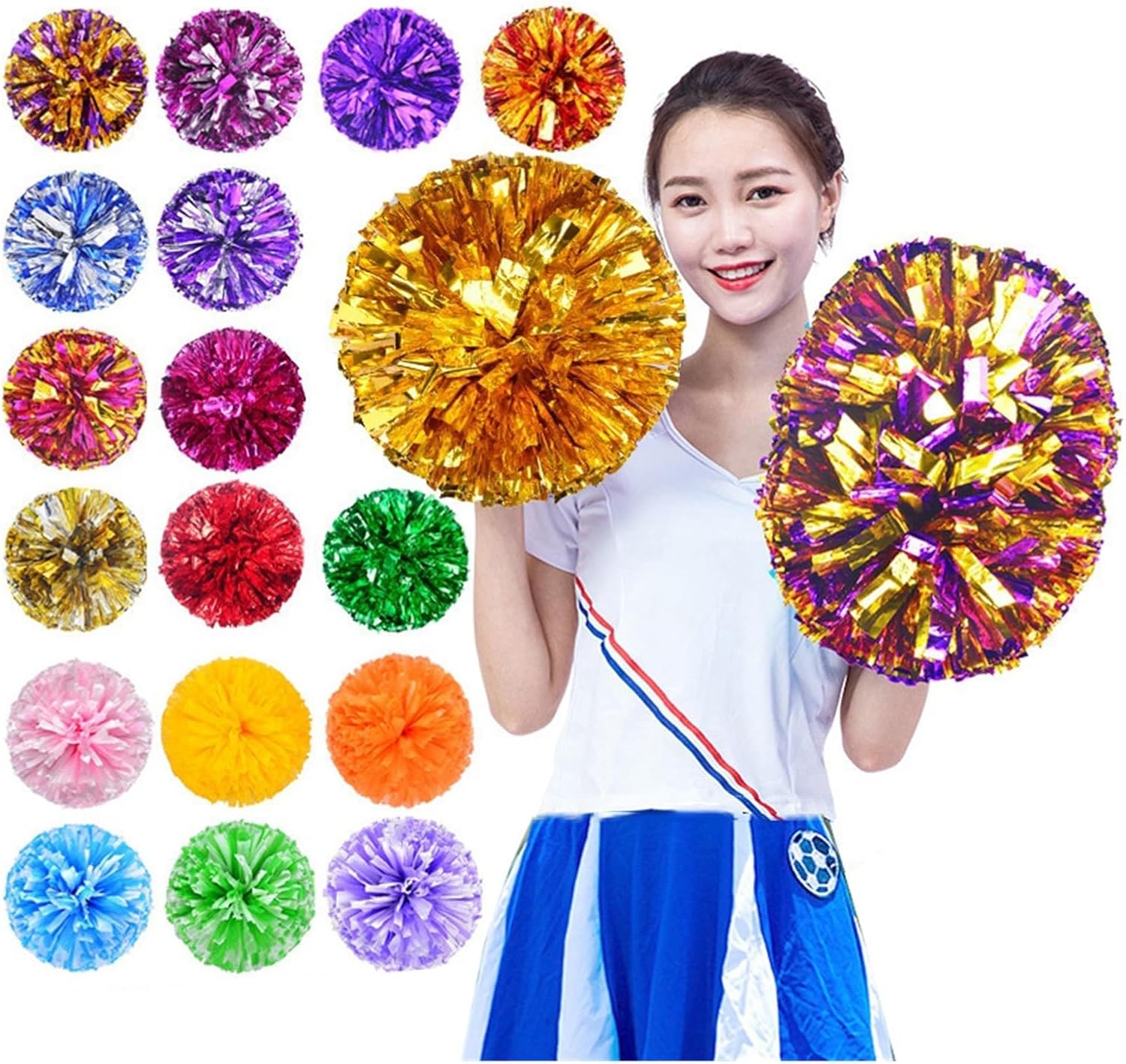 FACILE DA USARE: Progettati for la semplicità, i pompon da cheerleader sono facili da usare, consentendo alle cheerleader di tutti i livelli di abilità di incorporarli nelle loro esibizioni senza difficoltà MIGLIORA L'ALLEGRIA: i pompon delle cheerleader sono essenziali for migliorare lo spirito di squadra, consentendo alle cheerleader di radunare la folla e dare energia alle esibizioni con colori vivaci e movimenti vivaci COLORI VIVACI: Disponibili in una varietà di colori vivaci, questi pompon consentono alle cheerleader di personalizzare il loro look, mettendo in mostra i colori della squadra e aggiungendo un tocco di stile a ogni routine Questo pompon da tifo non è solo un accessorio perfetto e raffinato for il tifo, ma anche un accessorio indispensabile for molte occasioni. Può essere utilizzato for partite sportive, partite di calcio, partite di basket, stadi, feste e spettacoli teatrali. Rende l'atmosfera più calda e allegra. Pompon da cheerleader: il colore attira l'attenzione ed è attraente, il che fornisce stimolazione visiva e tattile, pompon da cheerleader
