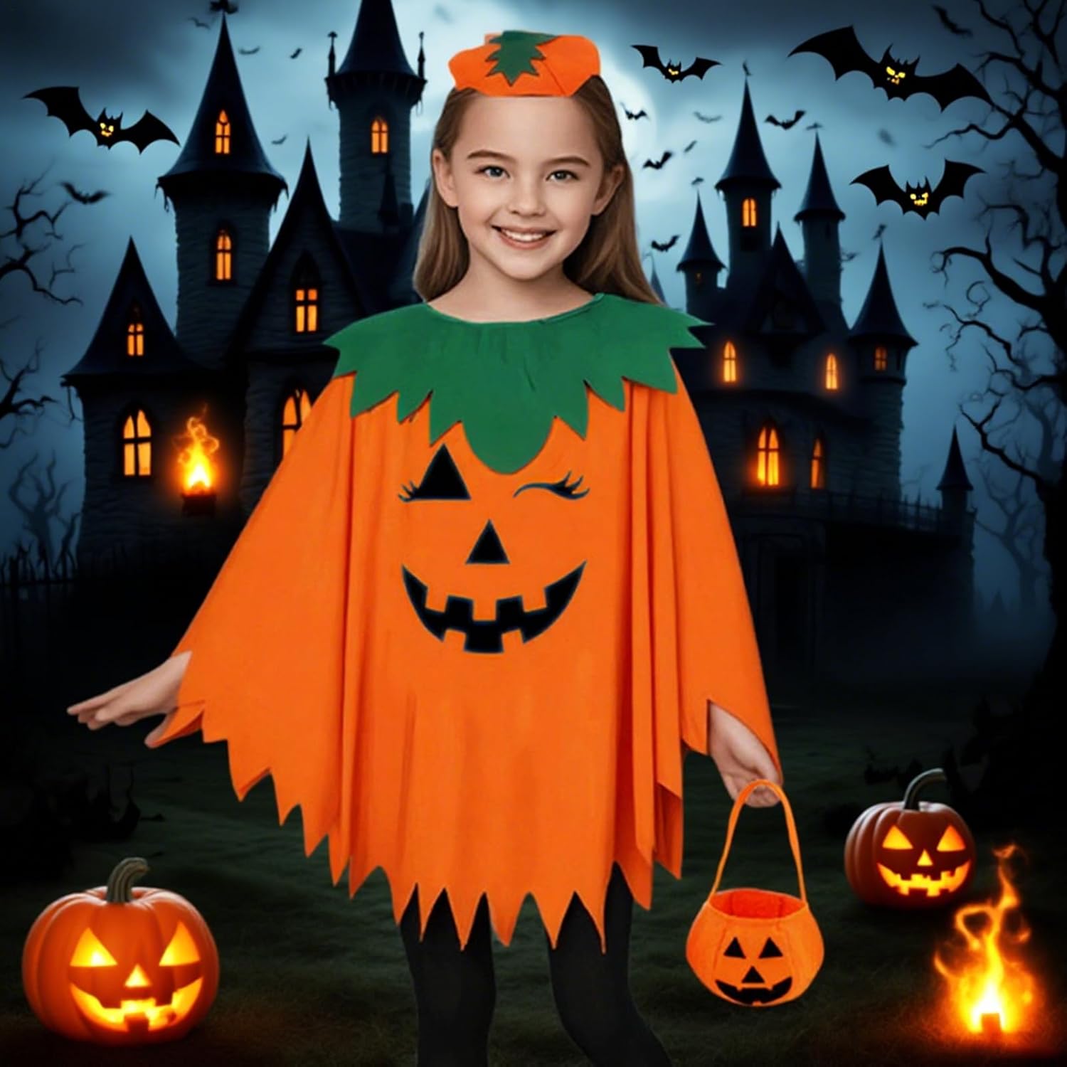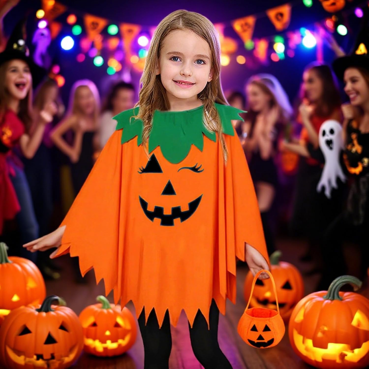 Descrizione prodotto Con il suo accattivante motivo a zucca, questo poncho brilla come aggiunta luminosa alle tue feste di Halloween. Ideale come elemento decorativo o come oggetto di scena fotografico, è adatto anche per scenari cosplay. Dal carnevale al ballo in maschera, dalle case spaventose ai concerti, il comodo comfort garantisce l'idoneità per spettacoli sul palco e vivaci feste di compleanno. Specifiche: Dimensioni del Taglia S: circa 104 x 70 x 53 cm. Taglia L: circa 120 x 85 x 56 cm. Materiale del prodotto: poliestere. Contenuto della confezione: 1 poncho a forma di zucca. 1 cappello da zucca. 1 sacchetto di zucca. Note: Il colore dell'articolo potrebbe essere leggermente diverso da quello mostrato nell'immagine a causa delle differenze di illuminazione e dello schermo. A causa della differenza nella misurazione manuale, si prega di considerare una dimensione di 1-3 cm. Avviso di sicurezza Inapplicabile