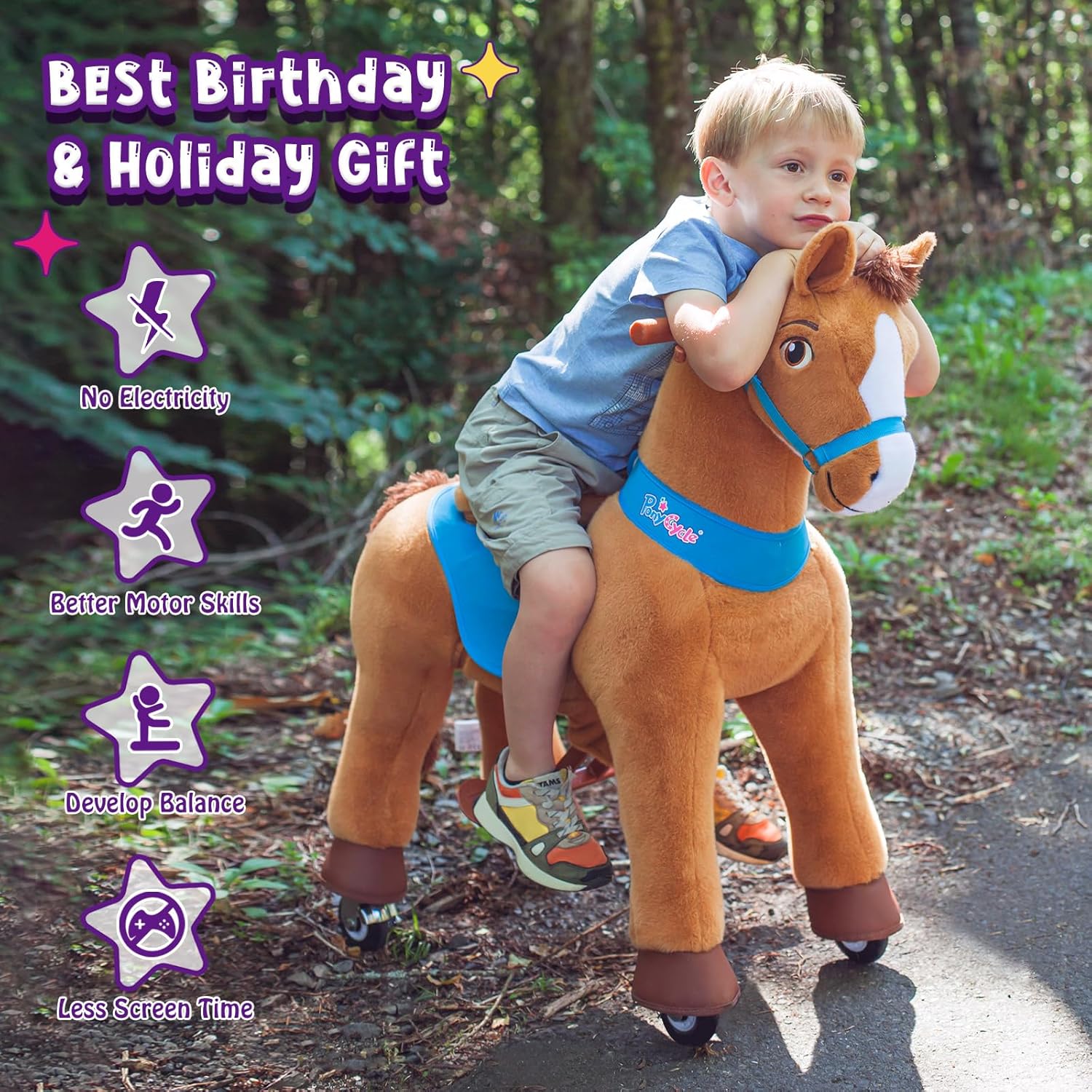 【100% Alimentato dai Bambini】: PonyCycle cavallo cavalcabile per bambini è un nuovo giocattolo che cammina da equitazione. L'pony giocattolo cavalca come un vero cavallo e permette ai bambini di fare esercizio. 【Sella Rialzata】: PonyCycle cavallo che cammina consente alle braccia, alla vita e alle gambe del cavaliere di lavorare contemporaneamente, per coordinare il movimento del corpo. 【Funzione Freno】:PonyCycle cavallo giocattolo cavalcabile con ruote per bambini sono dotati di un freno a mano che ferma il pony in sicurezza. 【Ruote Aggiornate】: PonyCycle animali cavalcabili per bambini sono aggiornati con ruote che hanno un'area di contatto più ampia per garantire una guida più fluida e sicura. 【Divertimento Senza Fine】: PonyCycle cavallino cavalcabile bambini può essere utilizzato all'interno e all'esterno, consentendo a ragazzi e ragazze di divertirsi ovunque e in qualsiasi momento senza preoccuparsi di rimanere senza energia.