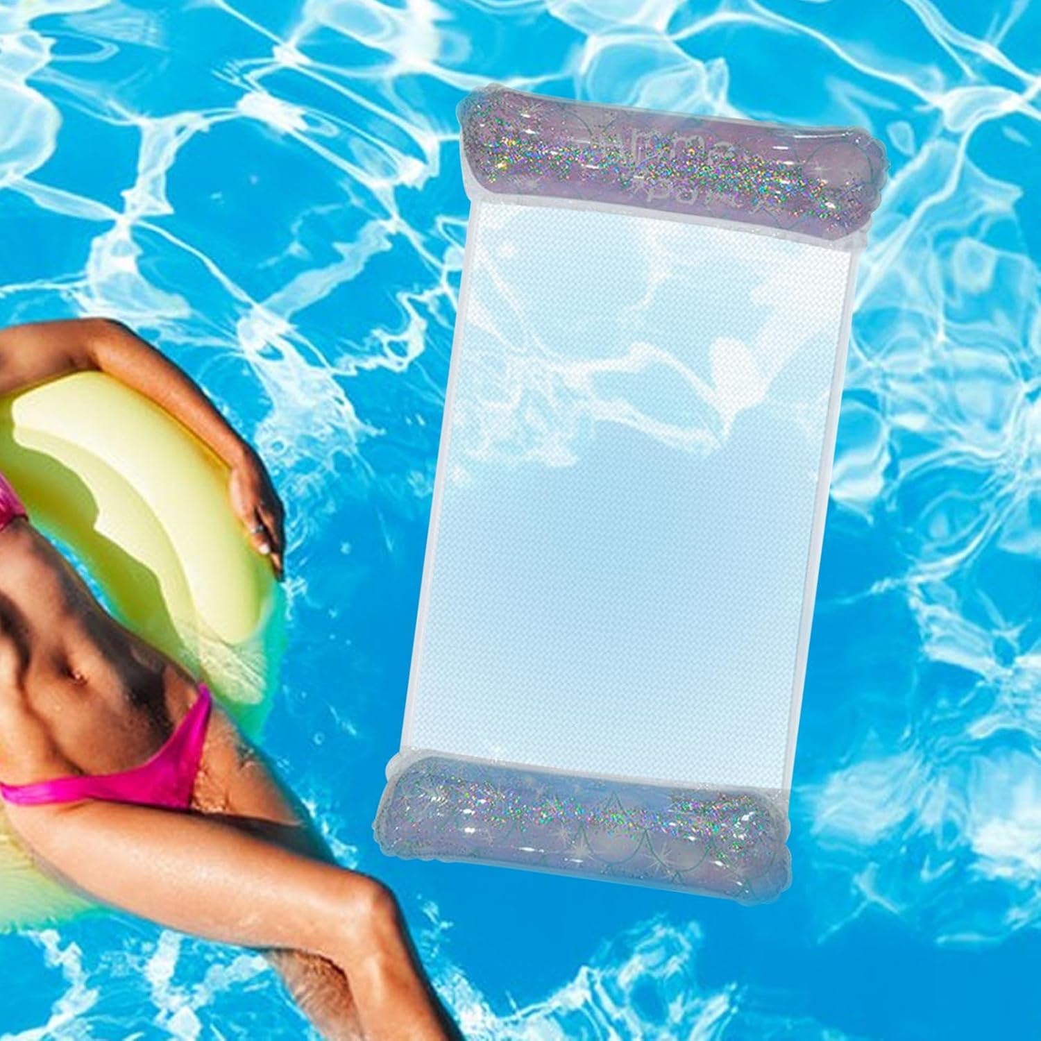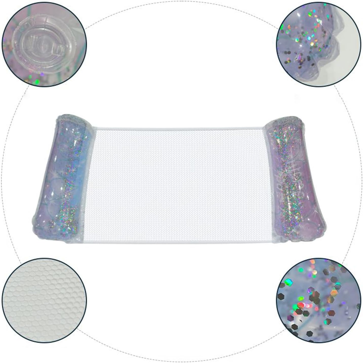 Mesh traspirante: la parte centrale della fila galleggiante gonfiabile adotta un design a rete traspirante. In estate, metà del corpo viene immersa nell'acqua, che non solo può bloccare la luce solare diretta, ma anche mantenere la pelle rinfrescante, e non sarà soffocante se utilizzata per lungo tempo. Adattamento confortevole: il materiale di superficie della linea galleggiante con piscina di paillettes è morbido, elastico e traspirante e la struttura di supporto interna distribuisce scientificamente la pressione. Rispetto alle tradizionali sedie del letto idrica, si adatta meglio alla curva del corpo umano e offre un'esperienza di nuoto profondamente rilassante. Supporto stabile: l'amaca gonfiabile per piscina è appositamente progettata per la struttura di supporto ottimizzata per la forma del corpo per adulti, in grado di soddisfare le esigenze degli adulti con un peso inferiore a 100 kg. È dotato di bordi rinforzati e una base equilibrata, tenendo conto della stabilità galleggiante e del comfort e godendo di un riposo sicuro. Pieghevole e portatile La nostra Row galleggiante per adulti adotta un design gonfiabile e materiali leggeri. Può essere rapidamente piegato e riposto in una valigia o in uno zaino e può essere facilmente trasportato in piscine, laghi e altre scene d'acqua per godersi il divertimento della pista. Molte possibilità di utilizzo: la poltrona per letto ad acqua è adatta per gite in famiglia o riunioni con gli amici. Il design di supporto stabile galleggiante soddisfa le esigenze dell'uso quotidiano e crea uno spazio interattivo idrofilo immersivo per le feste estive.