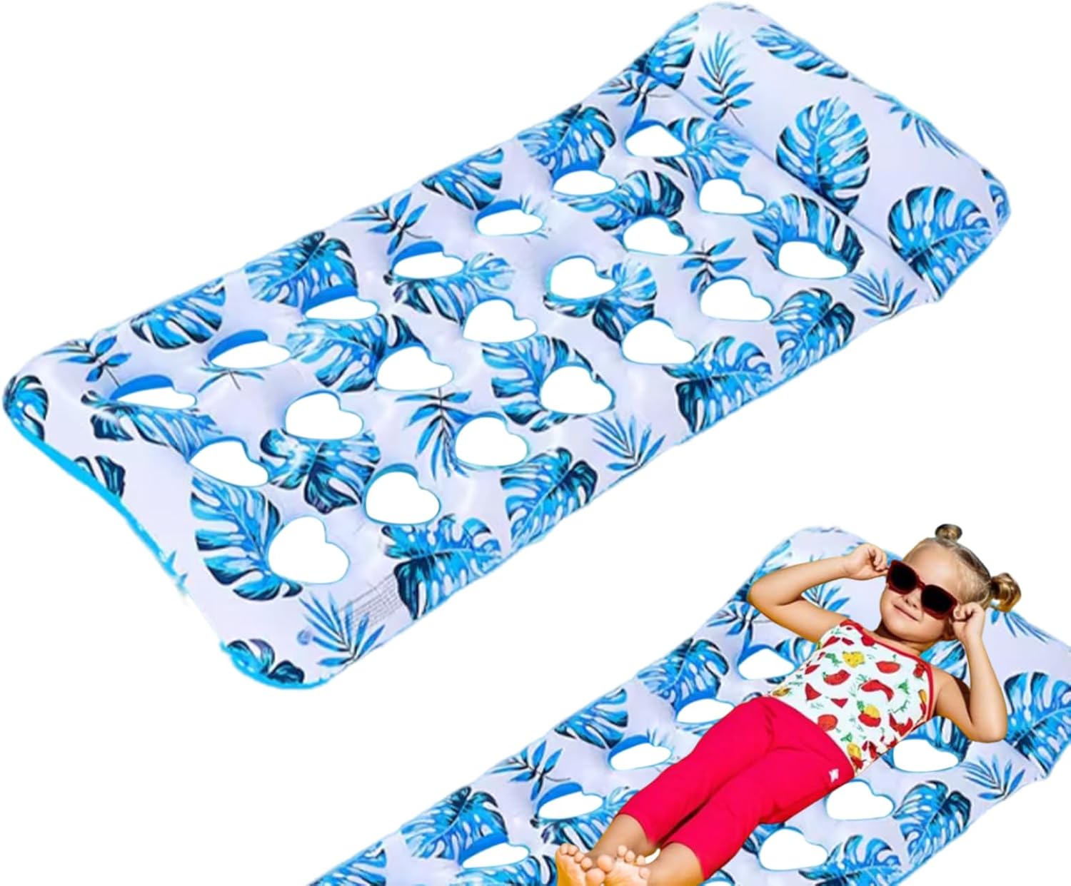 Foldable and Easy to Inflate: Quick-inflate design allows for hassle-free setup, while the foldable structure makes it easy to deflate and store in a bag or trunk, perfect for beach trips, pond days, or lake house weekends Oversized Floating Lounger for Adults: Designed for adult use with a spacious area, this inflatable pool float lounger supports men and women comfortably while sunbathing, relaxing, or floating in the pool or lake Comfortable Tanning Bed Style Support: Built like a floating hammock with raised pillow ends, this float ergonomic head and back support for all-day lounging, ideal for catching sun while drifting on the water Ideal for Pool, Lake, Beach or Pond: Versatile design makes this lounger suitable for all calm-water environments including backyard pools, sunny lakes, sandy beaches, and even garden ponds during outdoor parties Adorable Material With Leakproof Valves: Made from thickened, puncture-resistant PVC with reinforced seams and airtight valves to ensure safe, long-lasting flotation and minimal air loss during extended outdoor use