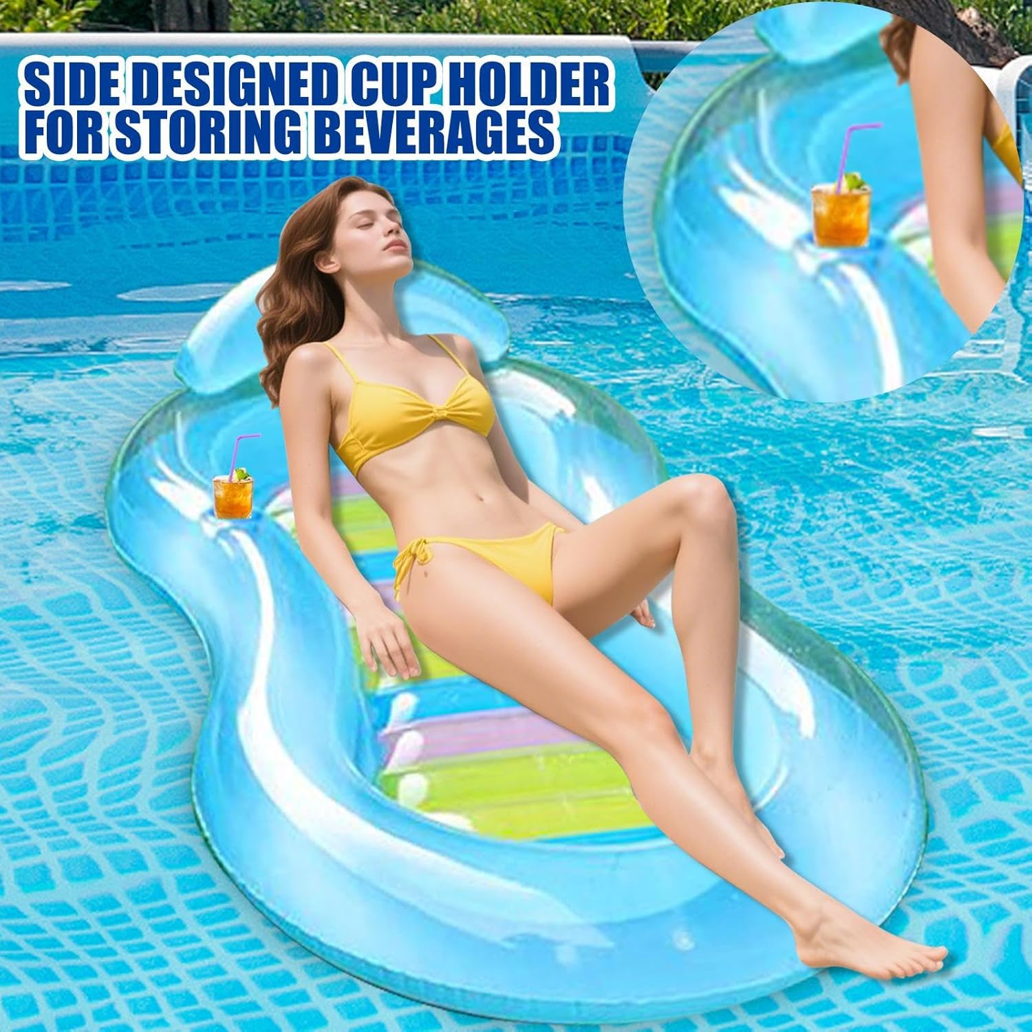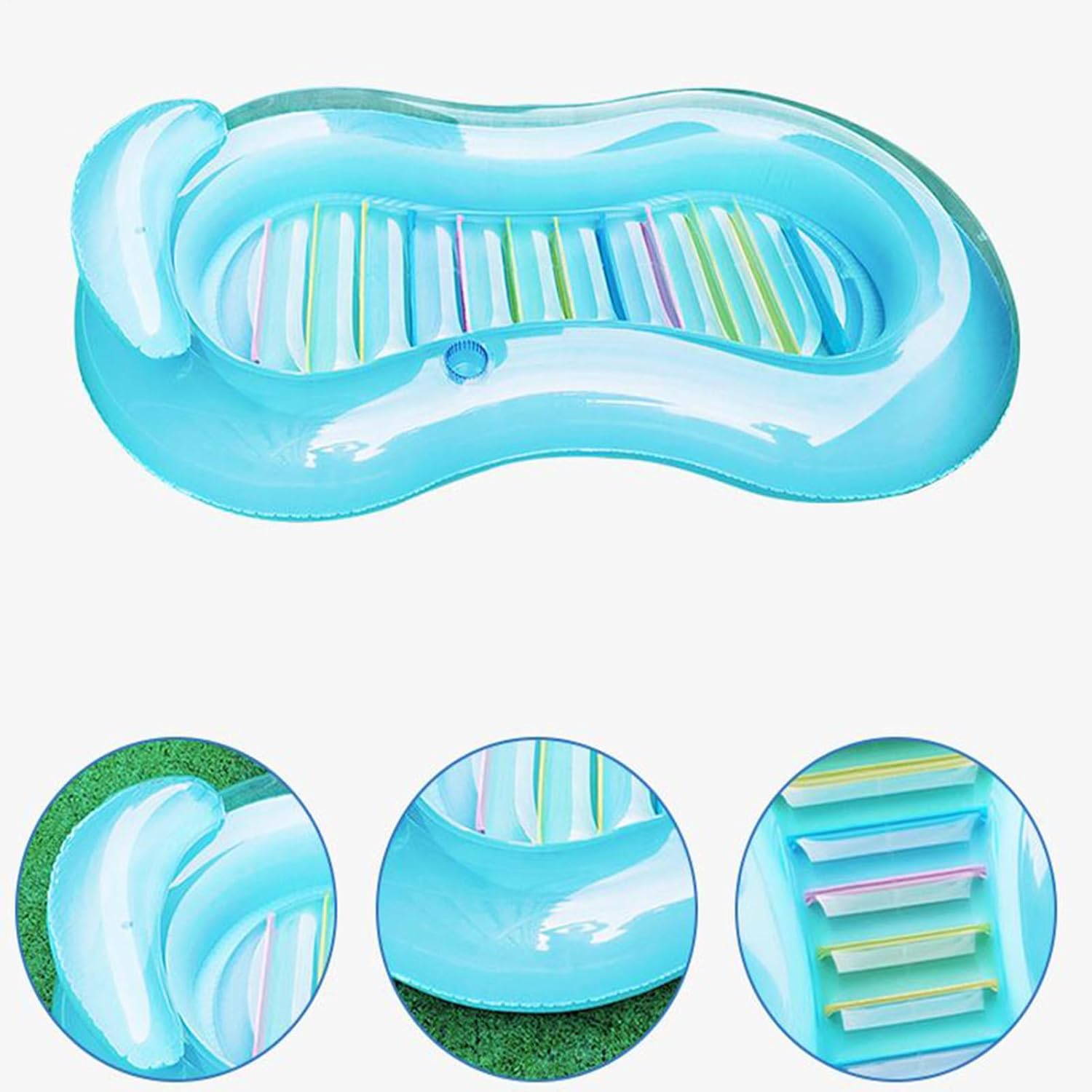 Esperienza di galleggiamento rilassante: Cuscino oversize per comfort eccezionale combinato con base a cuscino d'aria rinforzata che garantisce stabilità prolungata. Ideale per creare un'oasi di relax totale in piscina o in giardino, il lettino galleggiante offre ampia superficie per riposo confortevole Funzionalità Moderna: Progettato per gonfiarsi/svuotarsi rapidamente con chiusura ermetica, offre soluzione pratica e duratura per trasporto e conservazione, ideale per relax acquatico senza di supporto ottimizzato: Grazie al cuscino cervicale integrato e all'imbottitura a coste ergonomiche, offre il massimo relax mantenendo stabilità attraverso la struttura portante rinforzata Galleggiante longevo per piscina: a camere multiple e cuciture rinforzate assicurano relax sicuro e durata prolungata, con funzionalità mantenuta anche in caso di parziali Struttura resistente e impermeabile: Prodotto in PVC da 0.25 mm, questo materassino resiste efficacemente a usura e strappi, garantendo impermeabilità affidabile e superfici antiscivolo per stabilità e comfort durante i giorni in piscina