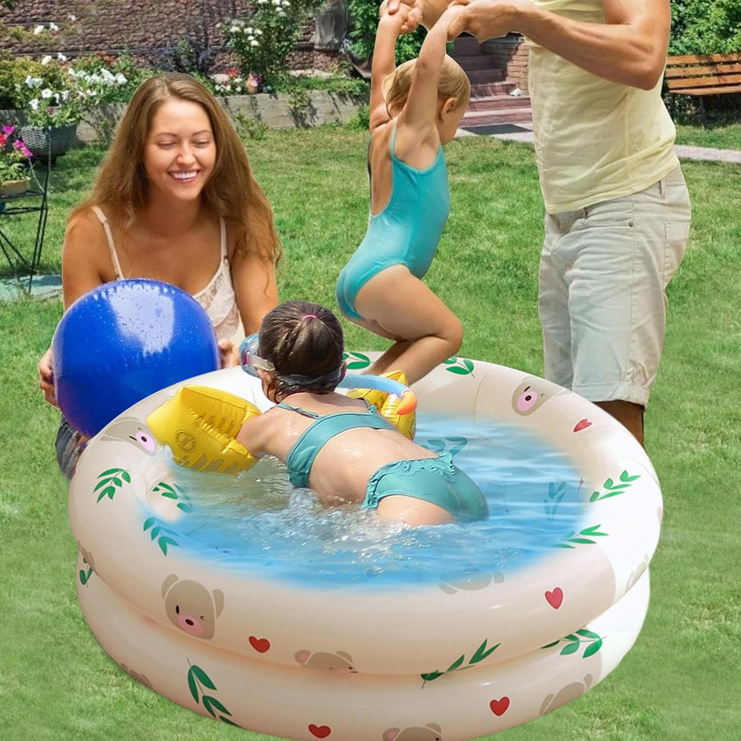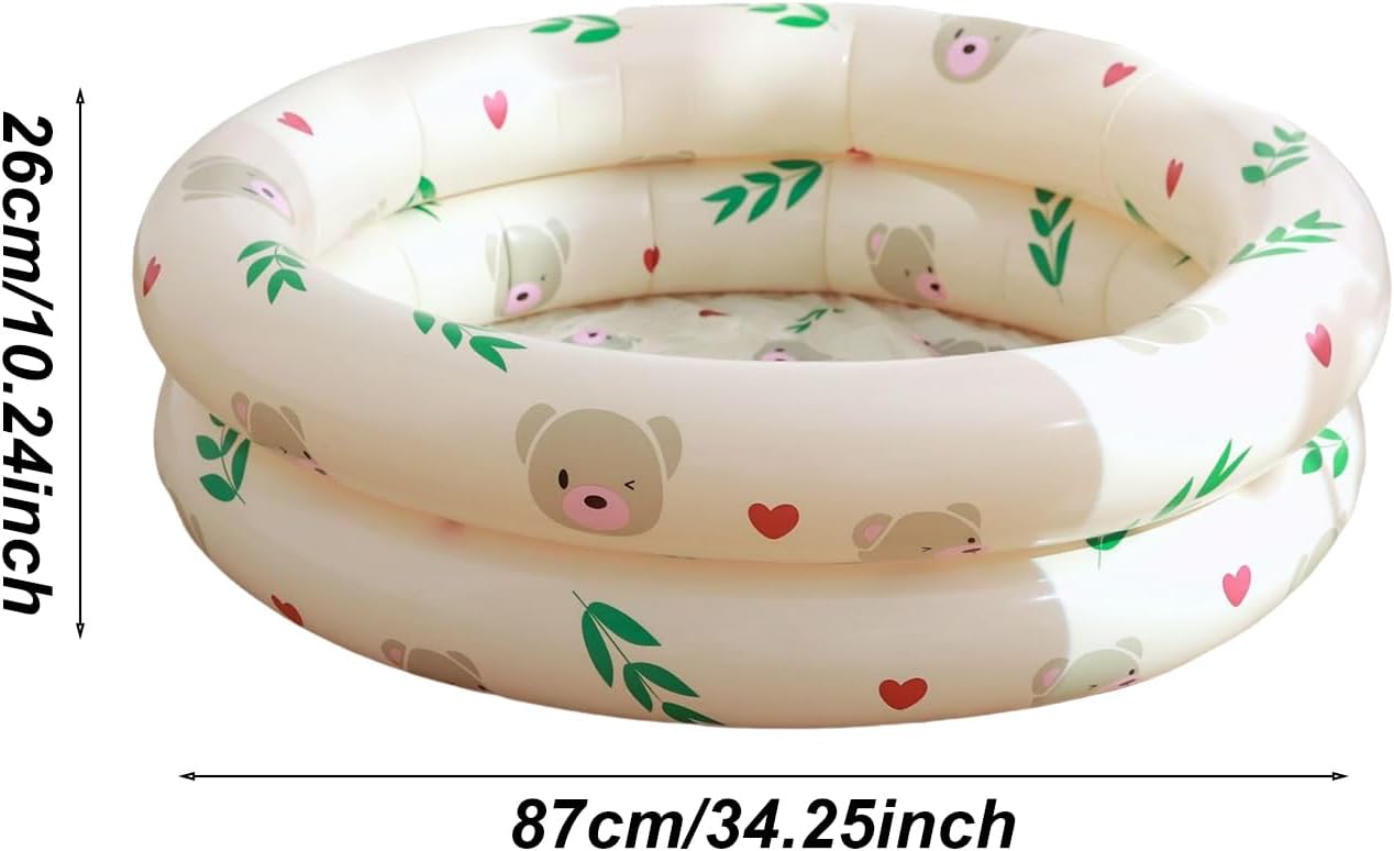 Design per bambini: la nostra piscina per bambini gonfiabili ha bordi rotondi che garantiscono che la pelle sensibile dei tuoi bambini piccoli non sia graffiata. Questa piscina fatta di materiale in PVC addensato è robusta e sicura per il divertimento giocoso di tuo figlio. Facile da trasportare: il divertimento in famiglia è solo una pompa Push Away! La nostra piscina gonfiabile per bambini è perfetta per ogni foto di attività all'aperto, spiaggia o festa. Leggero, facile da riporre e trasportare. Promuovi lo sviluppo del bambino: il nostro pool di bambini gonfiabili promuove lo sviluppo e il coordinamento sensoriali e allo stesso offre molto spazio per giocare a terra. Con un design rotondo multifunzionale, le opzioni di intrattenimento sono infinite! SEGNO MODELLO DEL CAMPIO: la piscina per bambini gonfiabili con simpatici motivi di orso può affascinare otticamente e dare a qualsiasi spazio o struttura da gioco una nota attraente. Divertimento per la famiglia: questa piscina gonfiabile è perfetta per giocare l'unica giocando per i bambini, garantisce un'atmosfera piacevole e rafforza il perché invita i genitori a partecipare.