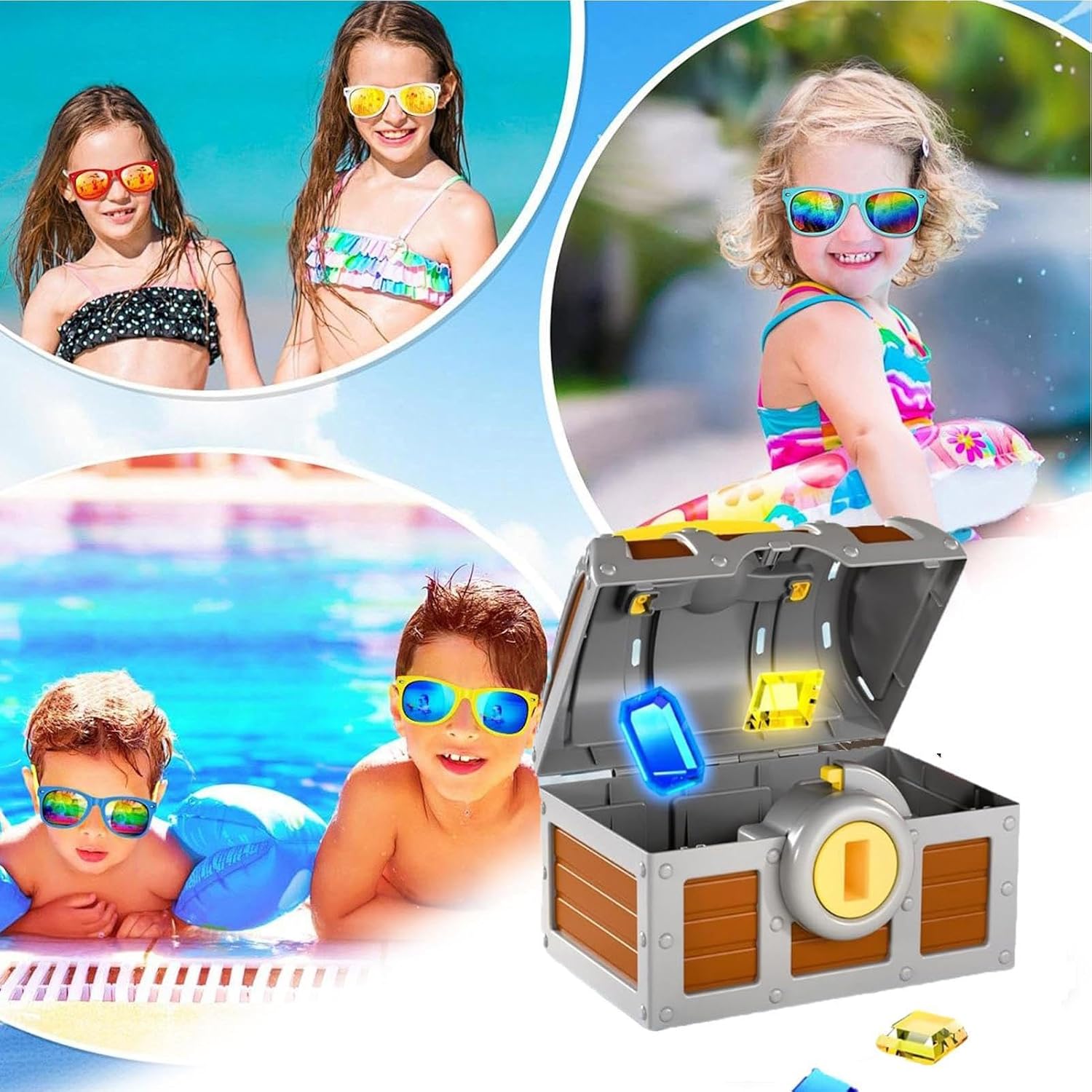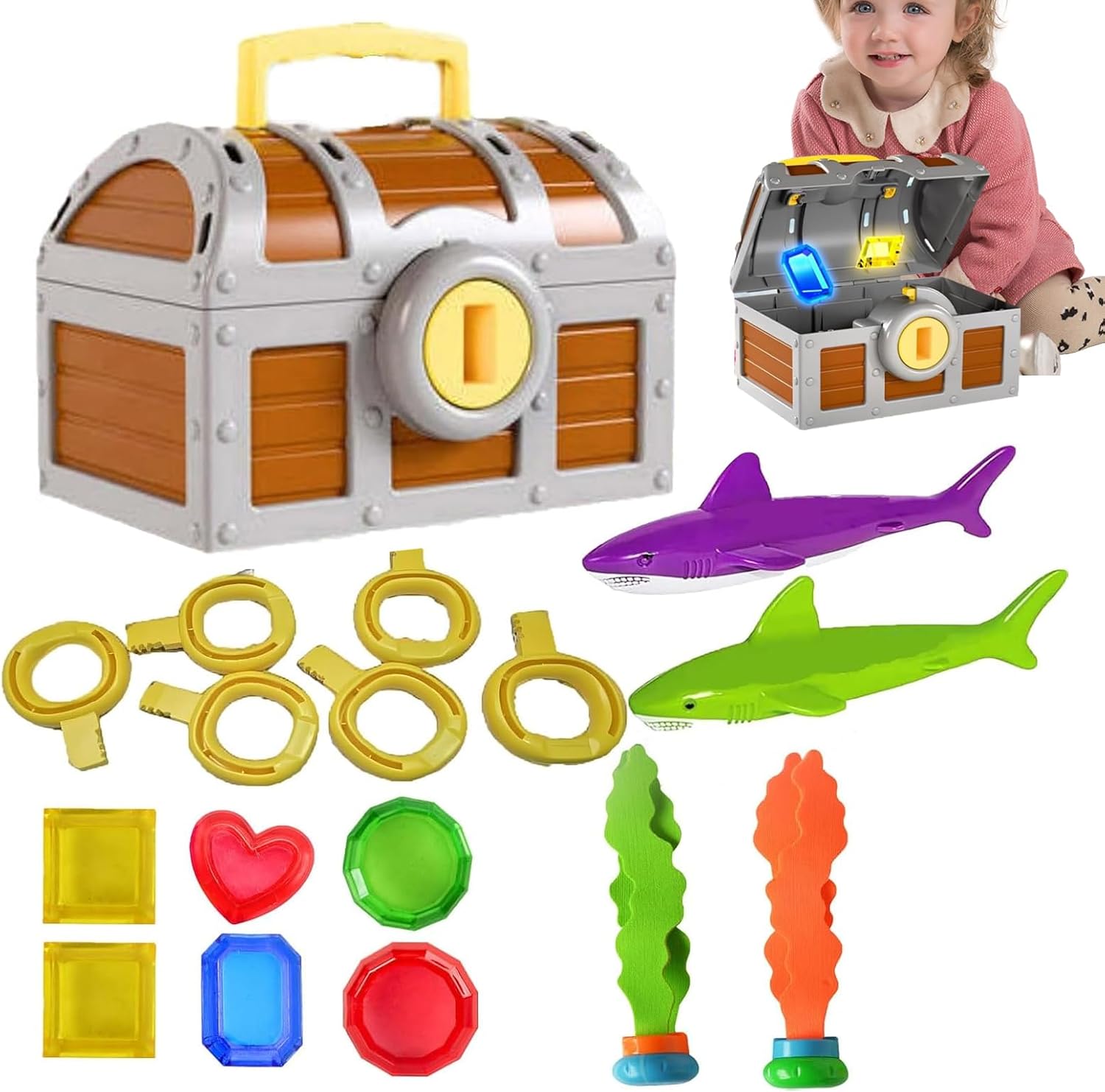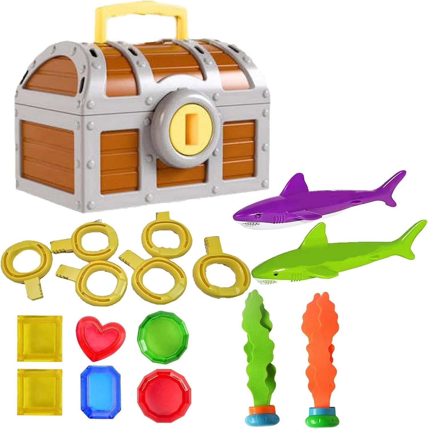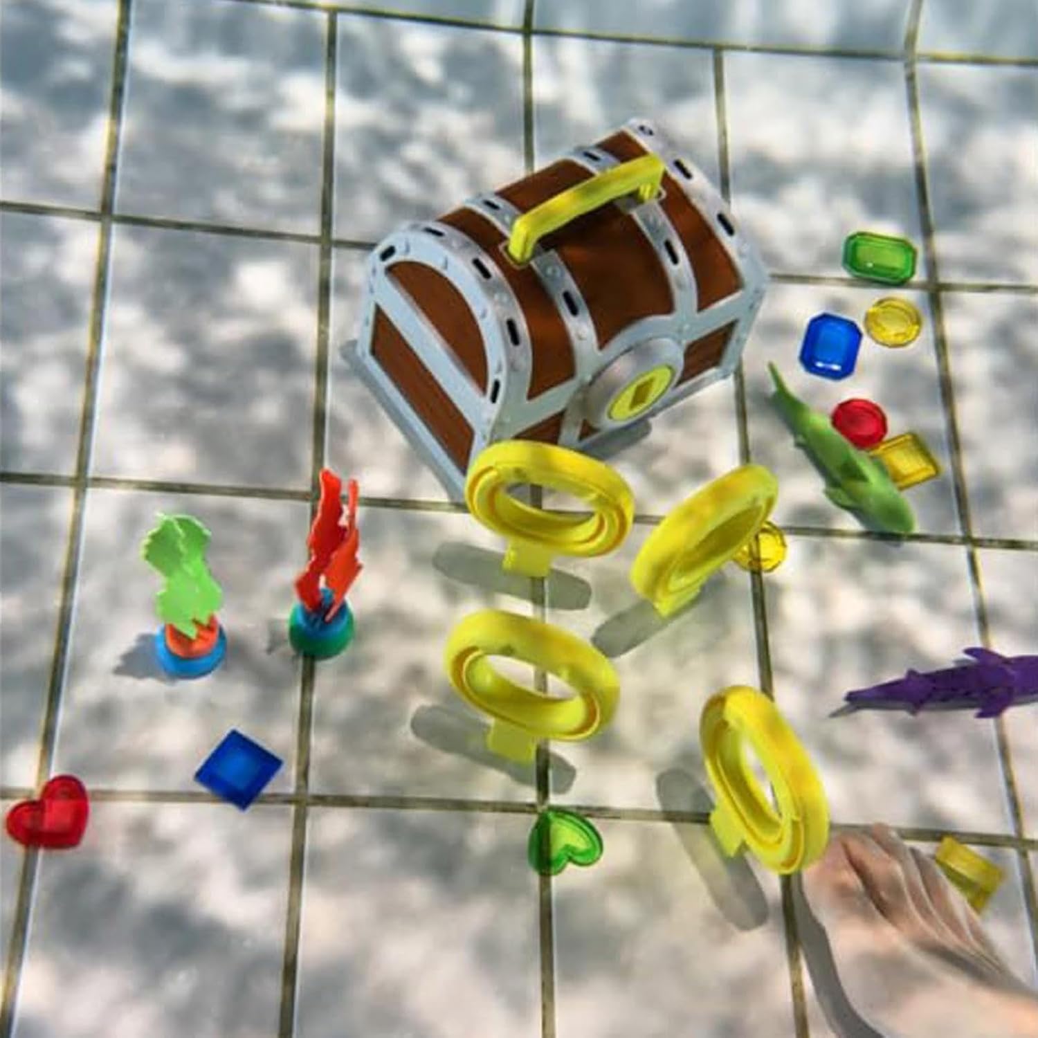 Ricca esperienza subacquea: scopri più divertimento con una scatola del tesoro operabile e pesci di gemma multipli che migliorano le interazioni di gioco di ruolo, tempo di gioco prolungato attraverso una ricca varietà di progetti per emozionanti esperienze di esplorazione della piscina Aiuto al coordinamento dei membri: Progettato per l'esercizio di competenza e la progressione naturale, combinando le abilità di formazione a mano Usi versatili: questi giocattoli per immersioni in piscina sono progettati per adattarsi perfettamente alle piscine di casa, migliorando le attività di gruppo e sono abbastanza versatili da mescolarsi con un parco acquatico o una spiaggia, per più divertimento e impegno Tema dinamico del gioco della piscina: combina il design di raduni di nuoto con la consapevolezza sul lavoro di squadra, offrendo un modo divertente per aumentare la velocità di reazione nelle formazioni di giocattoli per immersioni in piscina singole o multi-modalità interattive Forma realistica: la coppia di chiavi di pesce Gem e il design della scatola del tesoro simulano una caccia subacquea, migliorando il divertimento della piscina stimolando l'interesse dell'esplorazione attraverso il design creativo