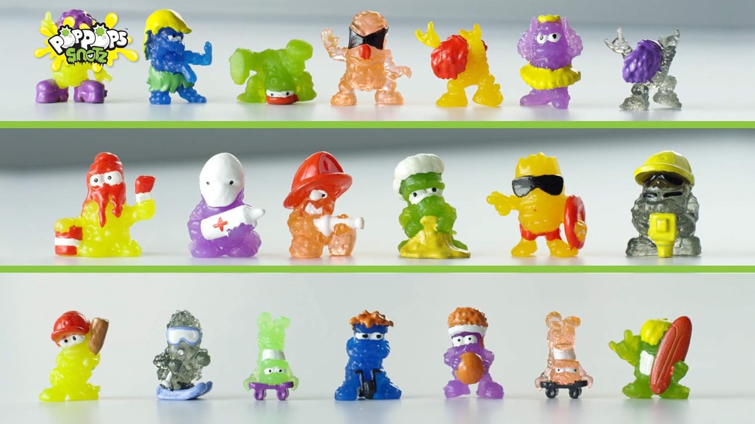 Il martello Pop Pops Snotz Slime Slammer è il modo migliore per aprire i tuoi Pop Pops! Trova 6 sorprese Snotz all'interno e un totale di 60 Snotz da collezionare. Scopri l'edizione limitata con Snotz che si illuminano al buio. Pops Pops Snotz è una combinazione di molte delle cose migliori del mondo, ovvero melma, bolle che scoppiano e la caccia agli Snotz collezionabili. Set adatto per bambini dai 5 anni in su.