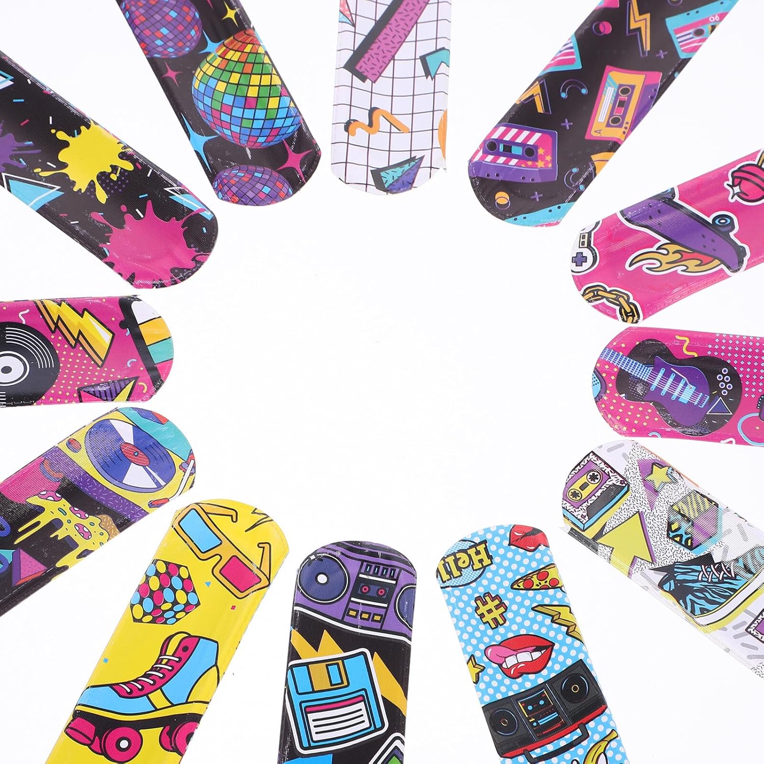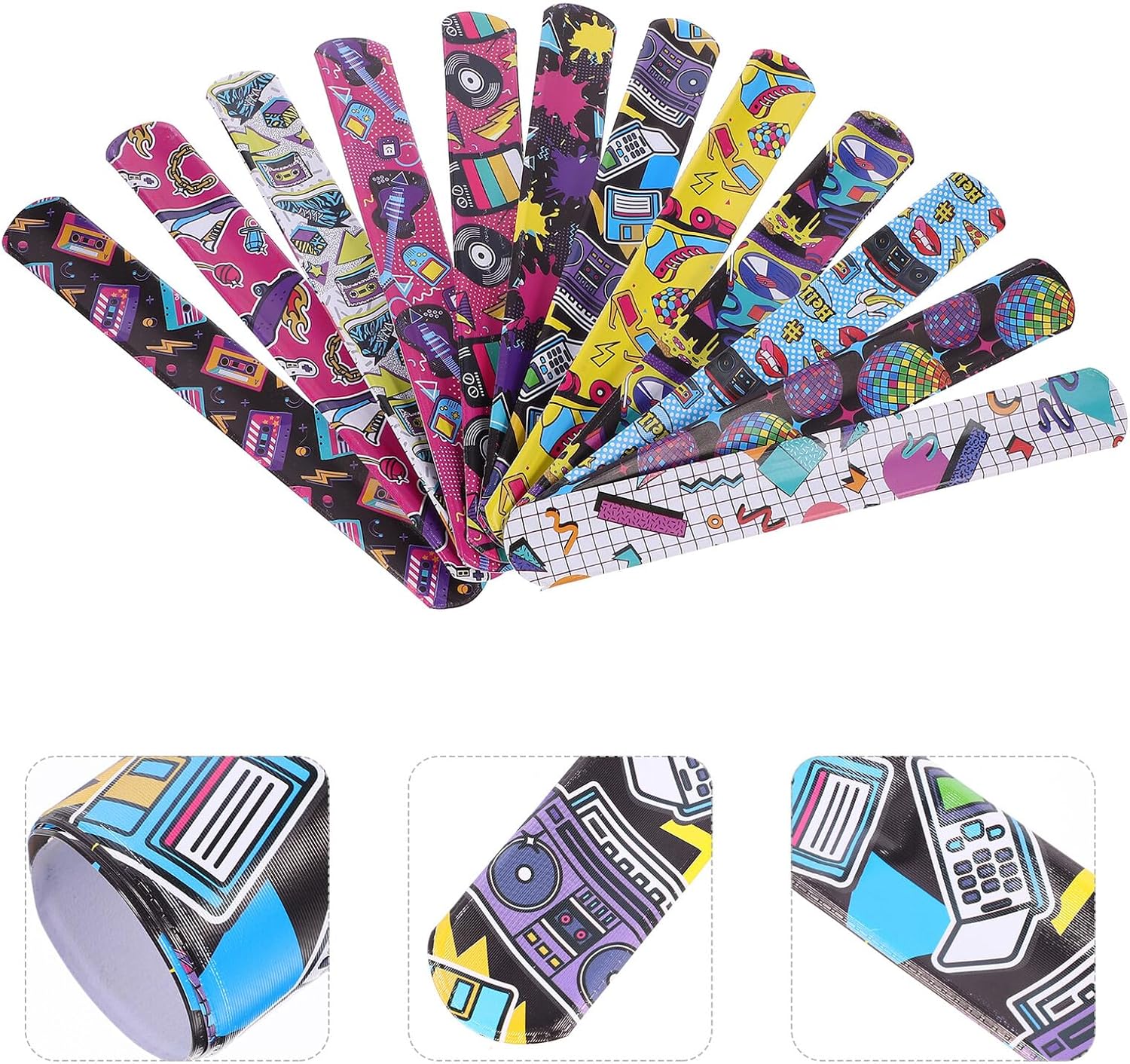 dei pacchetti 48 x braccialetti Slap Caratteristiche -Dimensioni: 22,00X3,00X0,80 cm/8,65X1,18X0,31 pollici braccialetti musicali sfusi -Informazioni sul prodotto:Braccialetto ad anello rock and roll -Colore: Bracciale con fascia colorata assortita -Materiale: PVC, lotto di braccialetti in ferro - Compatto e leggero, questo braccialetto slap è perfetto per accompagnarti ovunque tu voglia, ovunque tu vada per una festa musicale. - Facile da usare e da conservare, puoi inviare questo braccialetto slap rock a qualsiasi festival rocker. - Può essere ampiamente utilizzato per feste di Capodanno, feste a tema rock, feste del conto alla rovescia e altre occasioni. Braccialetto schiaffo sfuso. - Si adatta facilmente alle tue mani e, se ben lavorato, non sbiadisce, è sicuro per giocare con i braccialetti a scatto sfusi. - Realizzato in PVC, materiale in ferro che garantisce stabilità e durevolezza, molto comodo e scorrevole per l'uso come braccialetto musicale per le feste. Informazioni sulle merci Braccialetto musicale a schiaffo. Lavorazione pregiata che garantisce praticità e durata del braccialetto a schiaffo. Braccialetti a tema musicale. Realizzati in PVC e ferro, comodi per un uso duraturo. Accessori di scena. Stai cercando un braccialetto a schiaffo divertente da indossare e suonare? Se sì, non cercare oltre! Il nostro braccialetto a schiaffo deve soddisfare le tue esigenze.