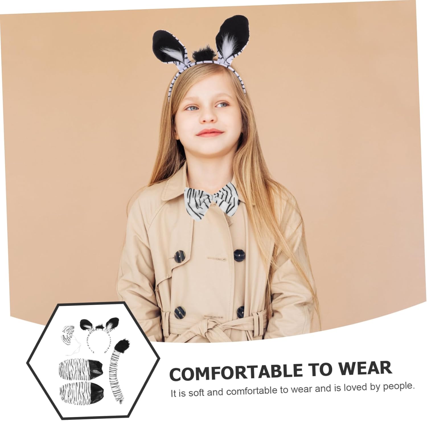 Costume da zebra per ragazza - leggero, robusto e comodo da indossare, resistente agli strappi e riutilizzabile, così puoi divertirti con la famiglia e il partner, accessori zebra per donna, accessori zebra per donna - orecchie, capelli, creativi e adorabili, ti fanno risaltare alla festa, decorazioni per feste in costume zebra - questi adorabili costumi cosplay di animali sono comodi da indossare, pratici e comodi da usare, accessori zebra Bomboniere zebrate - Con una bellissima adorabile forma di orecchio di animale e, con papillon che è attraente e decorativo, fascia decorativa Cosplay coda di animale - leggero e confortevole da indossare, facile da indossare e da togliere, come accessorio per costumi alla festa, accessori per costumi