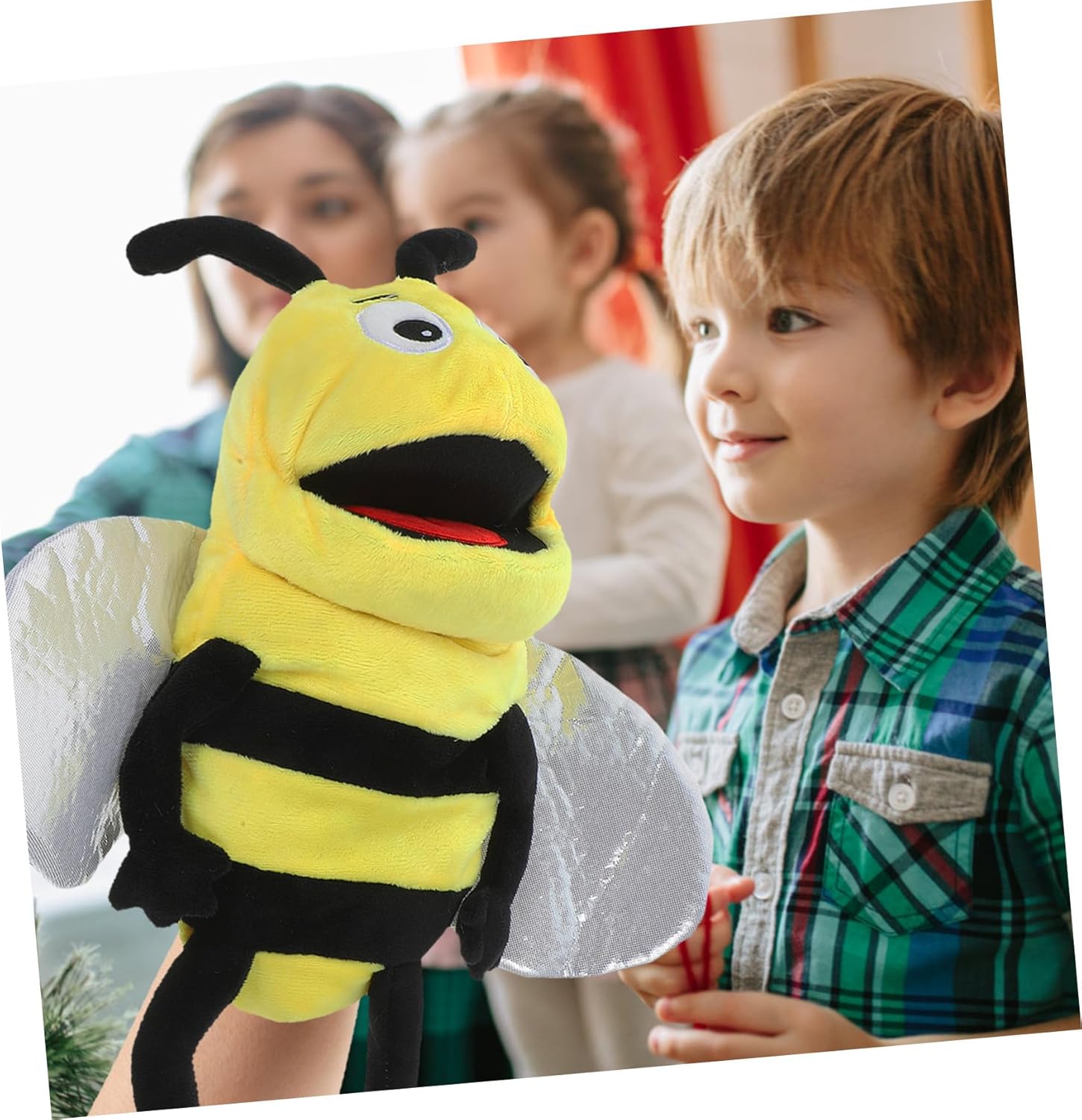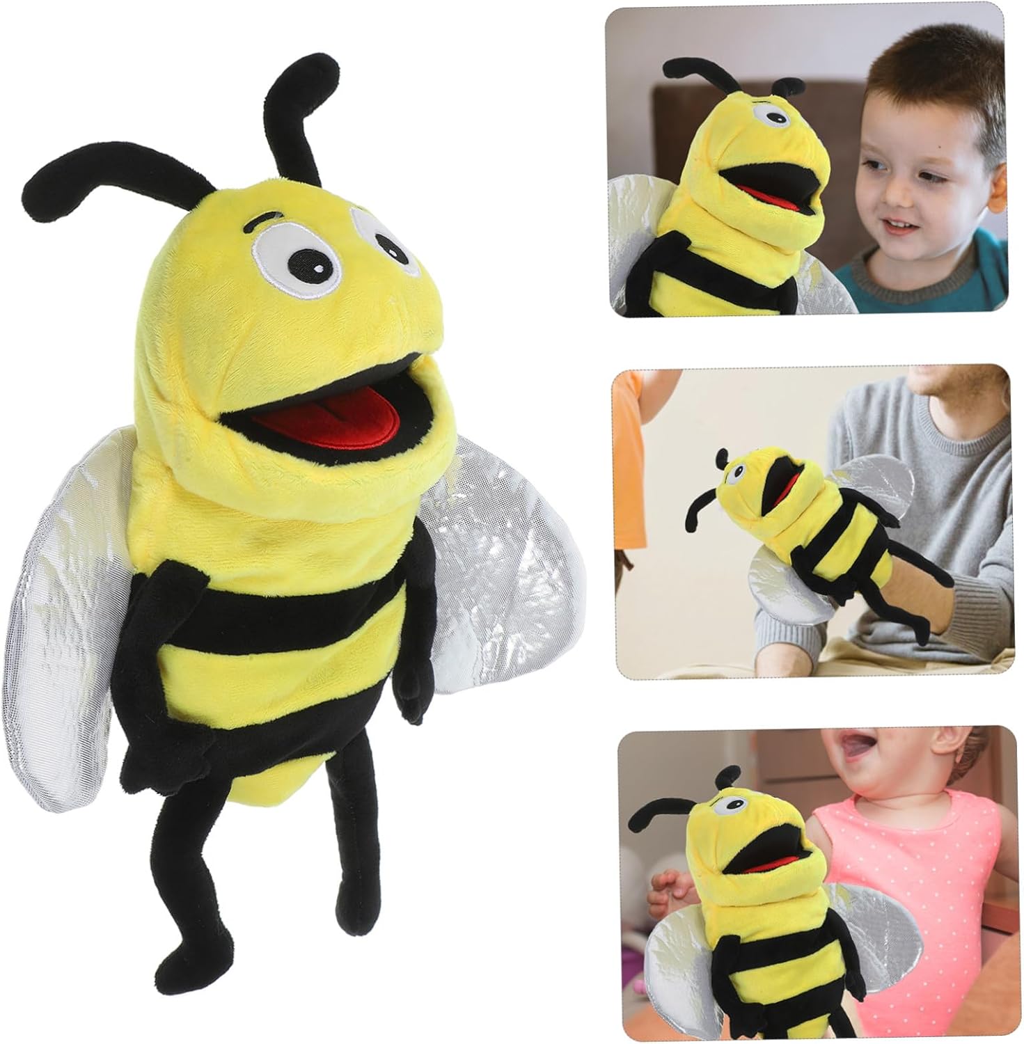 Giocattoli interattivi genitore-figlio: un regalo di compleanno perfetto per bambini o bambini, può anche essere usato come burattino per la prima educazione, pupazzo per raccontare storie. Giocattoli con marionette a mano con animali: Realizzato in materiale sicuro e morbido, il burattino a mano con l'ape è sicuro e può essere utilizzato più volte, burattini a mano per la famiglia. l'adorabile burattino a forma di ape è comodo da indossare sulla mano, ideale per bambini, giocattoli interattivi genitore-figlio
