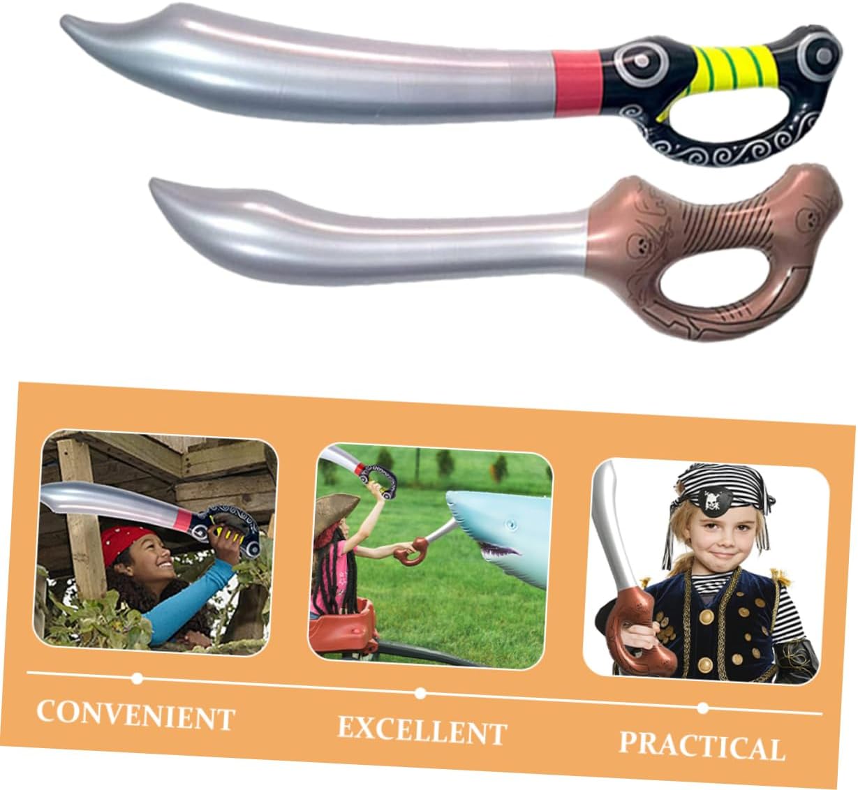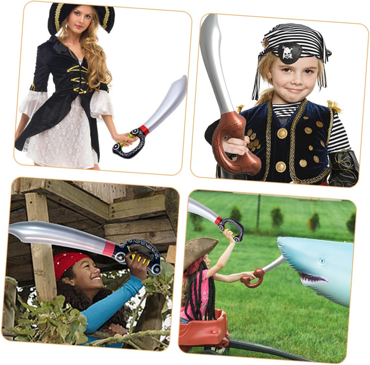 Oggetti di scena per cosplay di scena - Il design a forma di spada da pirata con motivi vivaci ha effetti decorativi, si adatta bene al tuo costume da pirata e agli oggetti di scena per la festa. Decorazione per feste - Queste spade da pirata gonfiabili sono l'accessorio per creare l'atmosfera vacanziera di Halloween, le spade gonfiabili si gonfiano sui palloncini con spada - la maniglia ti consente di afferrarli mentre li afferri, comodi da tenere in mano per spettacoli di cosplay dei pirati, Decorazioni di spade per la festa dei pirati - Facile da gonfiare e trasportare, gonfia i palloncini senza sforzo e portali ovunque, Prop di Halloween Spade da pirata gonfiabili - lunga per visuale impatto, la dimensione realistica della spada pirata fornisce un effetto visivo accattivante,