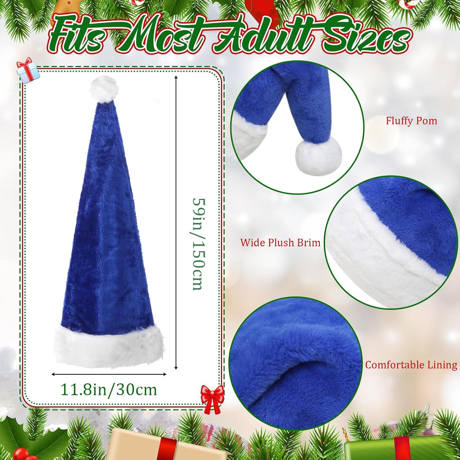 I wore this extra long Santa hat ( in Black ) for a couple days near Christmas in 2024 at work it so long it doubles as a makeshift scarf absolutely love it as did multiple customers to the store..