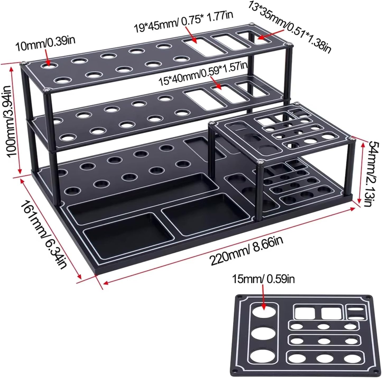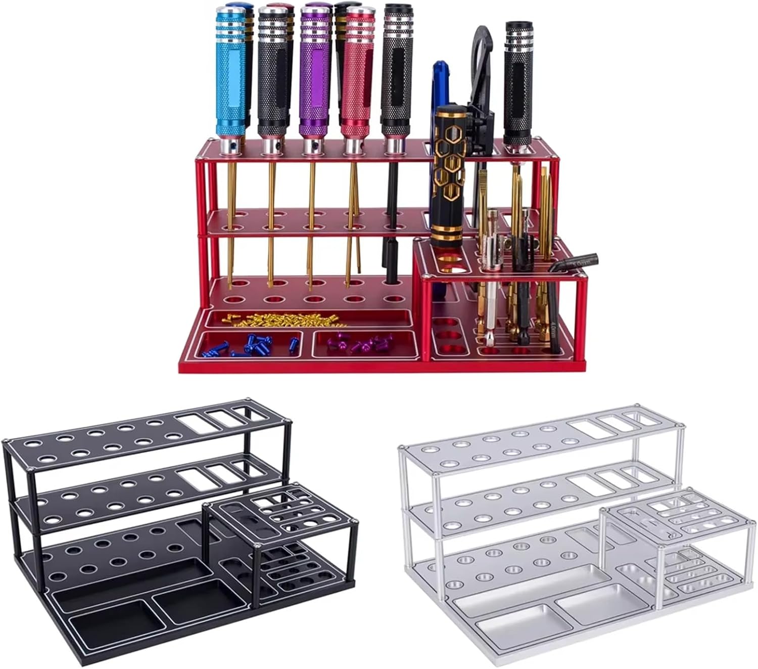Migliora i tuoi spazi di lavoro con questa facilità di installazione e garantisce che i tuoi strumenti siano a portata di mano e che il tuo processo creativo rimanga ininterrotto Mantieni i tuoi strumenti ordinati e organizzati con il nostro portautensili per modellini di auto, progettato per gli appassionati di modellini di auto per trovare rapidamente gli strumenti di cui hanno bisogno Perfetto per studi, officine e banchi da lavoro domestici dove conservare ed esporre gli strumenti di modellini di auto sono essenziali Adatto per gli appassionati di modellini di auto, hobbisti artigianali, modellisti professionisti e chiunque abbia bisogno di un efficiente stoccaggio degli strumenti Questo resistente rack è realizzato in lega. La lega contiene design pratici che completano vari stili di decorazione