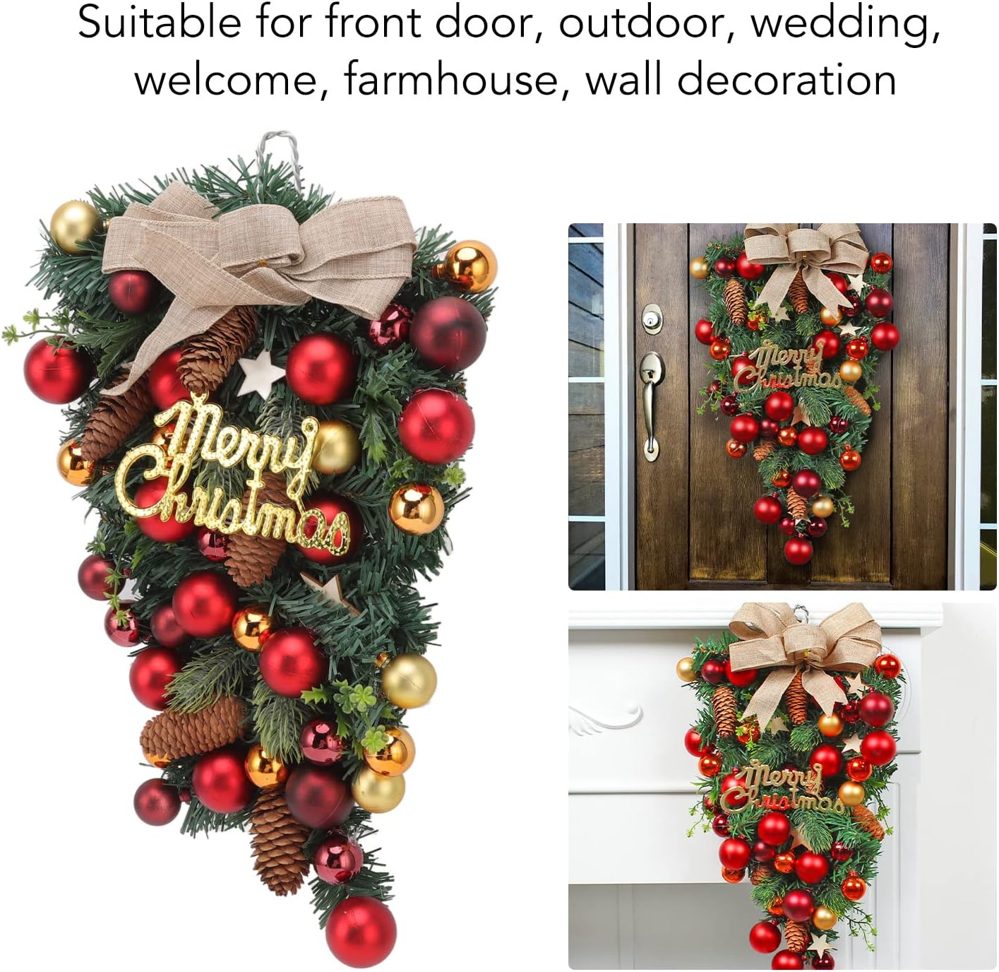 [Atmosfera festiva delle festività] trasformare la tua casa in un paese delle meraviglie invernale con questa splendida porta capovolta. per le celebrazioni di Natale e Capodanno, questo ornamento meravigliosamente realizzato aggiunge un tocco di colore e allegria alle tue giornate innevate. Il suo design elegante migliora lo spirito natalizio, rendendolo indispensabile per gli appassionati di decorazioni festivi. [Resistente a resistente e resistente alla dissolvenza] realizzato con materiali di alta qualità, questo albero di Natale rovesciato è progettato per durare. I colori vibranti rimangono luminosi e vivaci anche dopo anni di utilizzo, garantendo che le tue decorazioni rimangono fresche e belle. Non più preoccuparti di sbiadire o indossare: questo ornamento è costruito per impressionare la stagione dopo la stagione. [Riutilizzabile ed ecologico] Realizzato con meticolosa artigianato, questo ornamento della porta di Natale non è solo elegante ma anche sostenibile. La sua robusta costruzione consente un uso ripetuto in molte stagioni, rendendola una scelta ecologica. Dì addio agli inverni noiosi e ciao a un pezzo senza tempo che continua a dare gioia anno dopo anno. [Opzioni di arredamento versatili] Sia che tu stia decorando la porta d'ingresso, il camino, la finestra o persino una vetrina, questo albero artificiale capovolto si adatta perfettamente. Ideale per uso interno ed esterno, è anche una fantastica aggiunta a feste, matrimoni e ambienti da fattoria. Lascia che la tua creatività risplenda con questa decorazione adattabile e accattivante. [Idea premuroso] Cerchi il di Natale ? Questa decorazione della porta multiuso funge anche da un squisito per amici e familiari. Adatto a varie impostazioni come i benvenuti all'aperto, l'arredamento delle pareti e altro ancora, è un unico e pratico che diffonde allegria per le vacanze. Dai il dono del bellissimo arredamento in questa stagione!