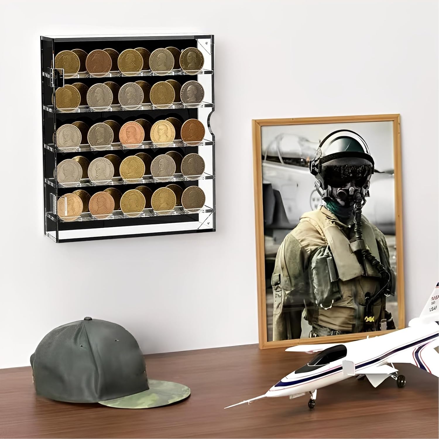 Gestione efficiente: I divisori estraibili e i compartimenti multilivello permettono organizzazione personalizzata, riducendo il disordine sulla scrivania durante la conservazione di carte e monete. Posizionamento pratico: Il foro appendibile sul retro permette un passaggio immediato tra l'uso a parete e su tavolo, assicurando un'esperienza espositiva funzionale e di immediata utilità Base Antiscivolo Sicura: Concepito per resistere al ribaltamento grazie alla fondazione antiscivolo, offre una stabilità costante che protegge le vostre monete migliorando stesso l'allestimento espositivo Protezione Completa: Custodisce medaglie e monete con design trasparente per visibilità totale, proteggendo da polvere e senza ostacolare la visuale Multifunzionalità: Le tessere rotonde della vetrina consentono un'esposizione raffinata di distintivi e medaglie commemorative, facilitando l'organizzazione della collezione