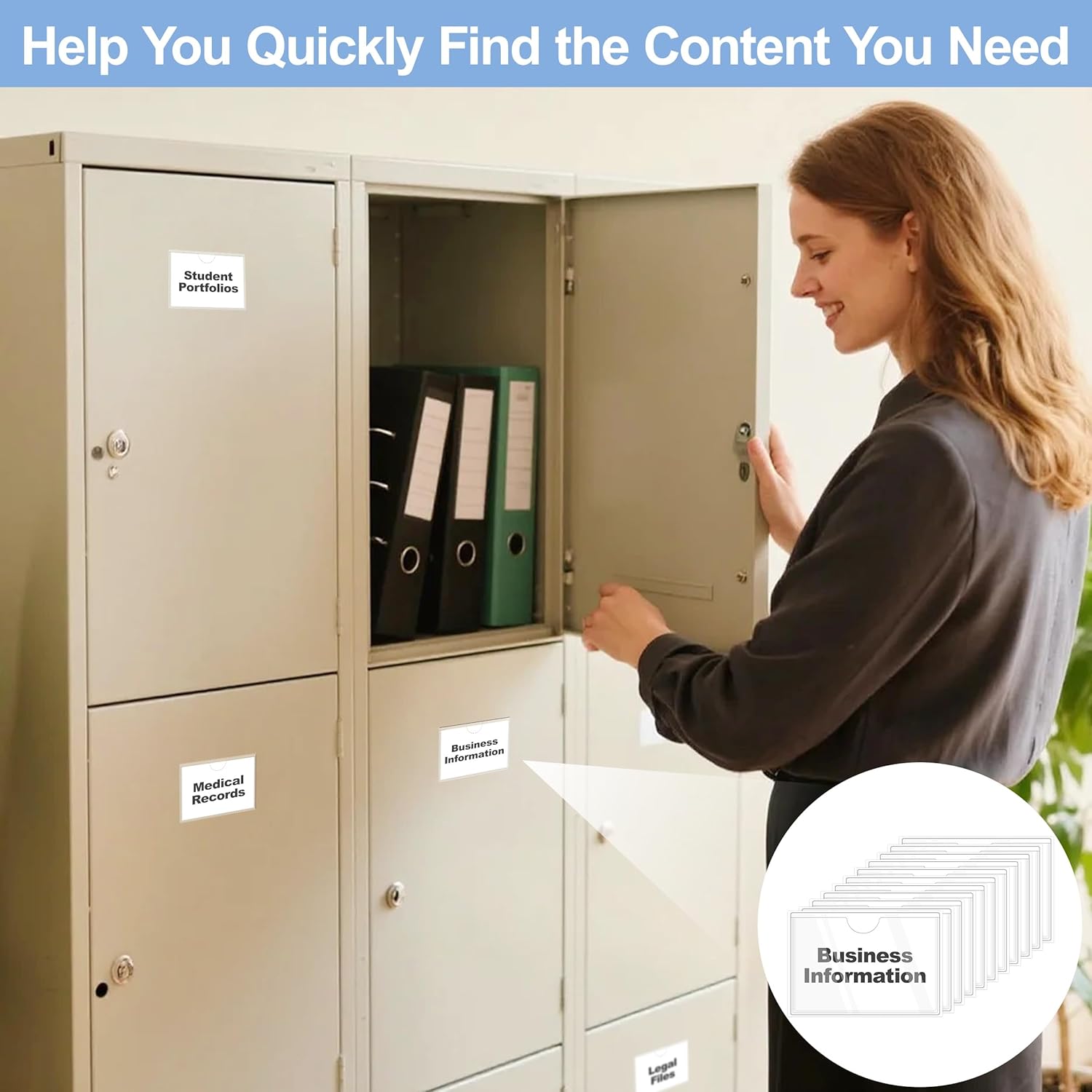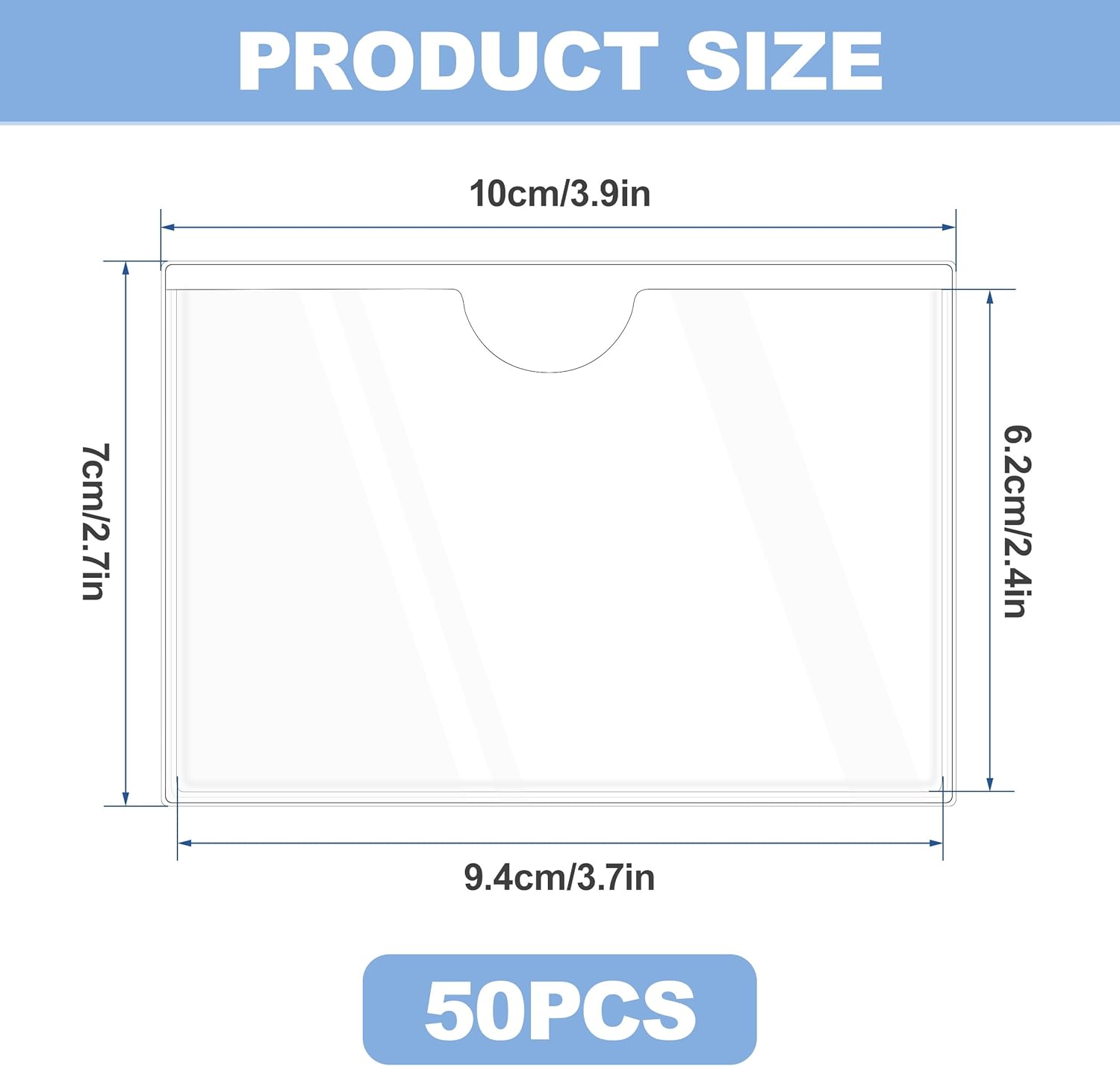 Materiali durevoli - Questo supporto per le etichette legate è realizzato in vinile morbido e di alta qualità che non deformane o si spezza quando è piegato. Trasparenti e autoadesivi: i colori trasparenti sono facili da vedere, il contenuto interno e il design di autoadesivo sono convenienti per l'inserimento di tag e viste. Portatile e facile da usare: il supporto tag è piccolo, portatile e facile da usare, basta disimpegnare il retro del supporto tag, quindi incollarlo sul punto desiderato e inserire il tag. Mantieni tutto organizzato - 50 pezzi da 10*7 cm i titolari di tag autoadesivi aiutano a identificare e ordinare diversi oggetti per organizzare bene le cose. Applicazioni ampie - Il supporto dell'etichetta è adatto a qualsiasi supporto per etichette autoadesivo in cui il segno dell'etichetta deve essere visualizzato come altoparlanti, scaffali, armadi, armadi, libri, ecc.