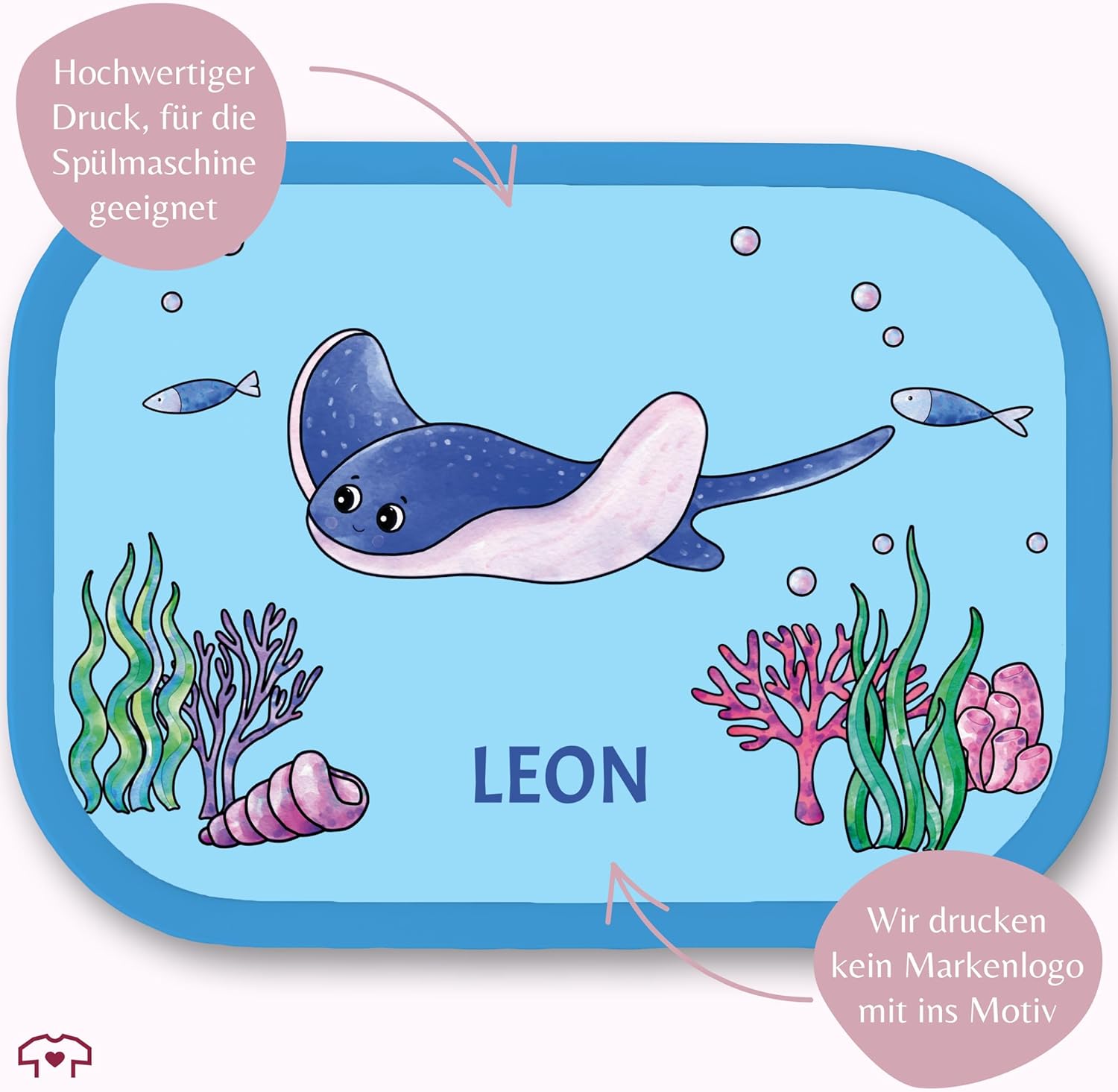 Porta pranzo campus per bambini per Mepal - animali marini - raggio regalo per l'iscrizione alla scuola personalizzato con nome I porta pane per bambini in età scolare regalo per il ritorno a scuola manta ray scuola - 750 ml - blu - mare