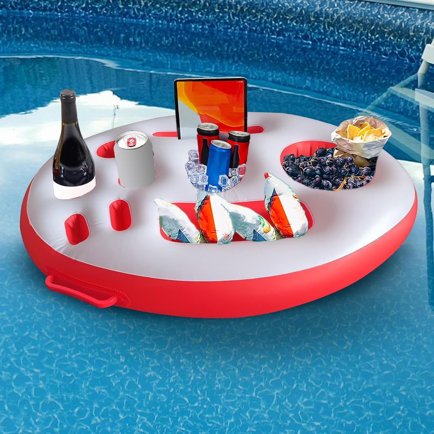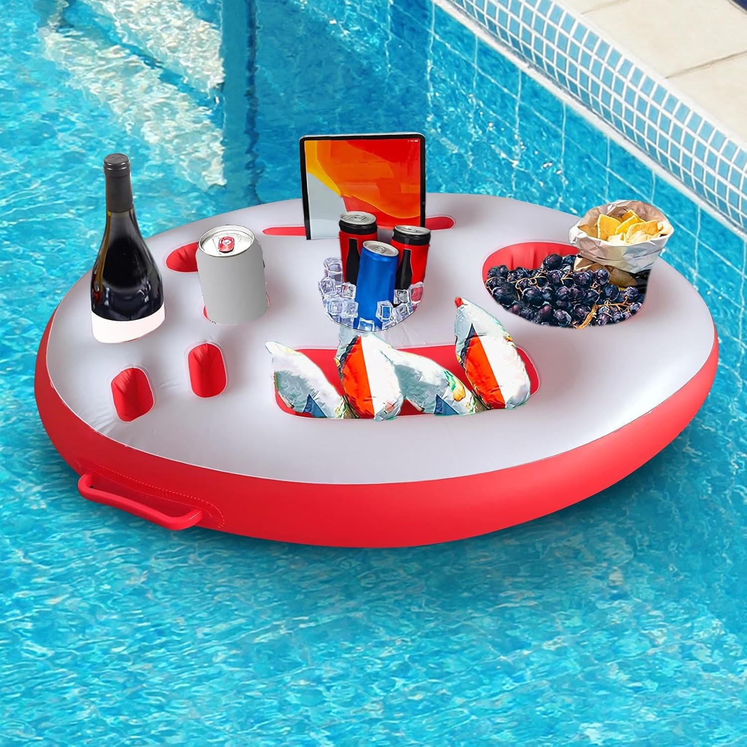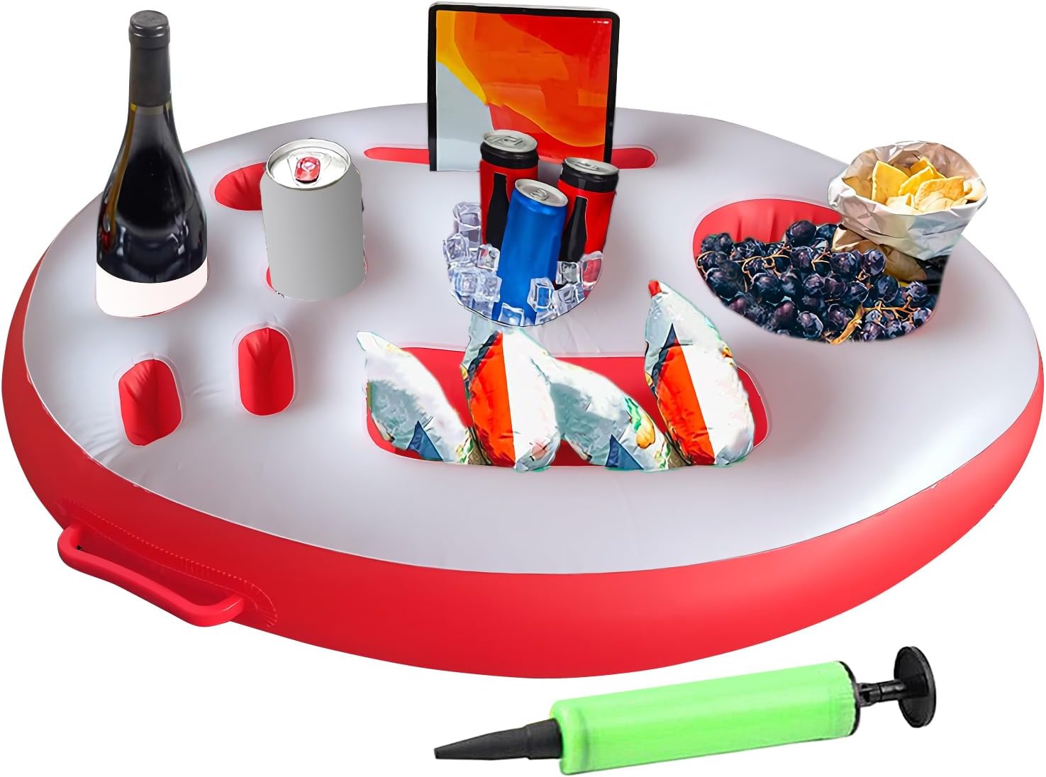 【Materiale sicuro】 Facile gonfiaggio e sgonfiaggio abbinato alla resistente struttura in PVC offre comfort e resistenza all'usura durante gli allenamenti prolungati in piscina Interni spaziosi: con nove slot dedicati e ampio spazio di archiviazione, tiene in modo sicuro bevande come birra e champagne insieme a frutta o snack, misura 70 x 50 cm per intrattenere senza sforzo Facile da usare: progettato per gli appassionati di viaggi, questo portabicchieri portatile è abbinato a un design pieghevole con gonfiaggio, offrendo comfort e adattabilità senza pari per le avventure all'aria aperta vicino all'acqua 【Per molte occasioni】 Un must-have per feste in piscina, fine settimana in famiglia, relax alla spa, gite in spiaggia, questo portabevande garantisce che i rinfreschi siano spesso a portata di mano.,Regalo nutriente: Delizia i tuoi amici e la tua famiglia con un accessorio funzionale per la piscina che migliora l'esperienza di nuoto, offrendo comfort e divertimento per famiglie e gruppi di amici.