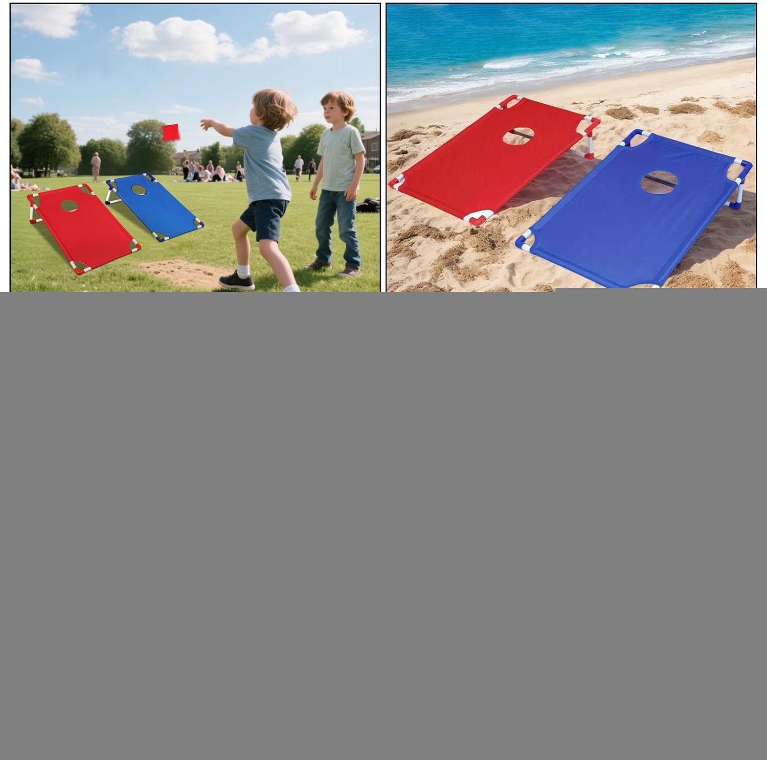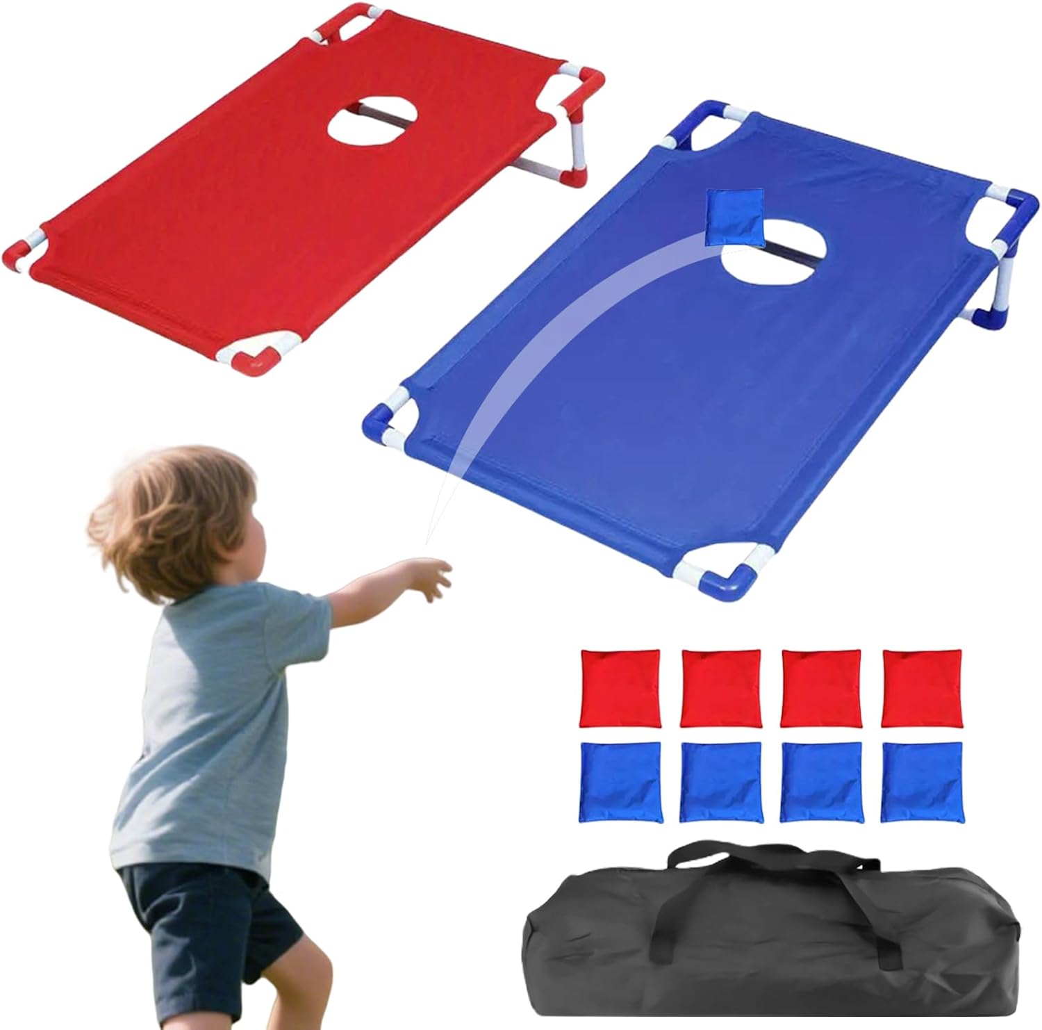 for Kids, Adults, and Families: A thoughtful and active gift option for birthdays, holidays, or housewarmings that encourages outdoor play, teamwork, and while getting everyone off their screens. Perfect for Travel, Picnics, and Parties: Lightweight frame with carry-friendly design makes it simple to bring this family vacations, road trips, beach outings, and weekend camping adventures for instant entertainment. Fun Team Game That Builds Coordination: Helps develop motor skills, hand-eye coordination, and social interaction as players and toss bean bags toward the target, making it a great activity for children’s parties or school field days. Weather-Resistant Materials for Outdoor Use: Designed to withstand outdoor play, this cornhole set features waterproof boards and bean bags that won’t fade or tear easily, making it ideal for long-term use in all kinds of weather conditions. Portable and Easy to Set Up in Minutes: Compact design with foldable legs and storage-friendly layout allows for quick assembly and transport, so you can take it to the beach, garden, school events, or anywhere you want fun on the go.