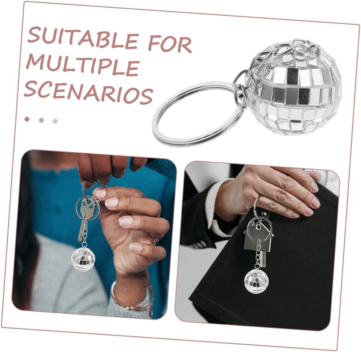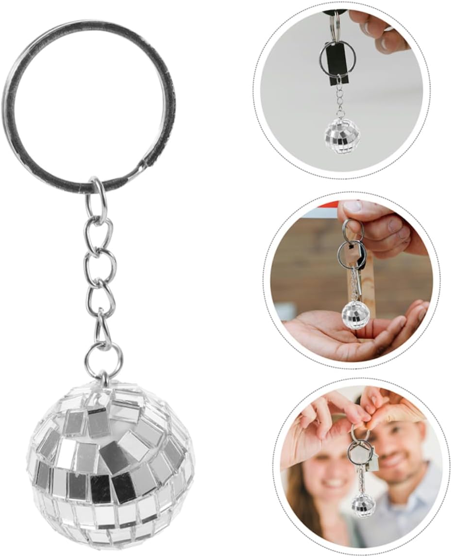 Lucentezza di lunga durata: questi portachiavi in plastica e lega di zinco sono progettati per mantenere la loro lucentezza e brillantezza anche con un uso regolare. Portachiavi da discoteca, portachiavi con palla da discoteca Accessorio elegante: questi portachiavi con palla da discoteca a specchio sono un accessorio chic ed elegante che può migliorare l'aspetto delle tue chiavi, borse o altri oggetti personali, accessori per auto con palla da discoteca, decorazione portachiavi da discoteca Design leggero: nonostante il loro aspetto accattivante, questi portachiavi sono leggeri e facili da trasportare, rendendoli una scelta pratica per l'uso quotidiano. Portachiavi con palla da discoteca, mini palla da discoteca, confezione sfusa: realizzati in plastica e lega di zinco, questi portachiavi sono progettati per durare e fornire un gioco abbagliante di luci e colori, Mini palle da discoteca, portachiavi da discoteca compatti e portatili: ogni portachiavi è piccolo e leggero, facile da trasportare e attaccare a chiavi, borse o altri accessori senza aggiungere volume. sfera a specchio, regali per feste portachiavi
