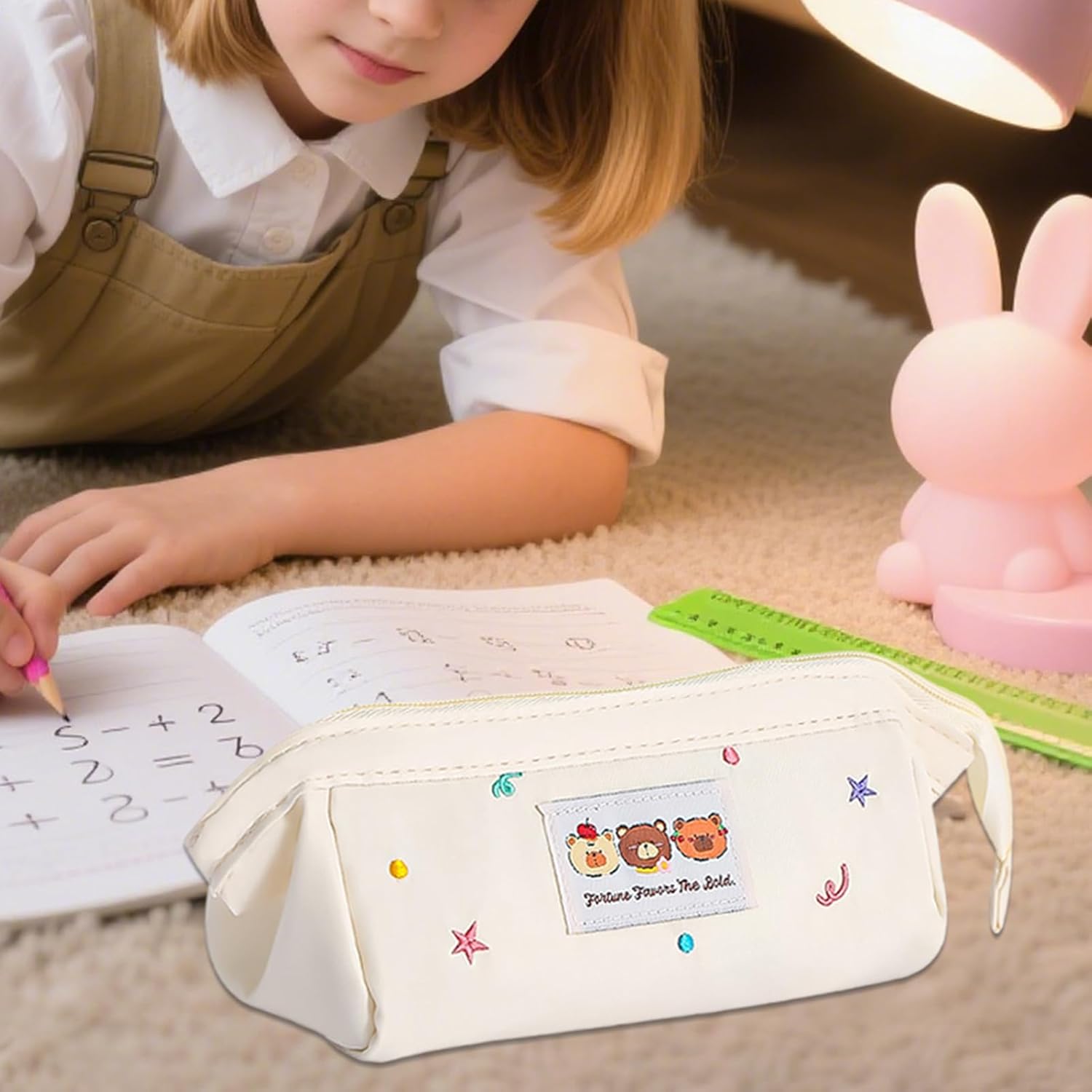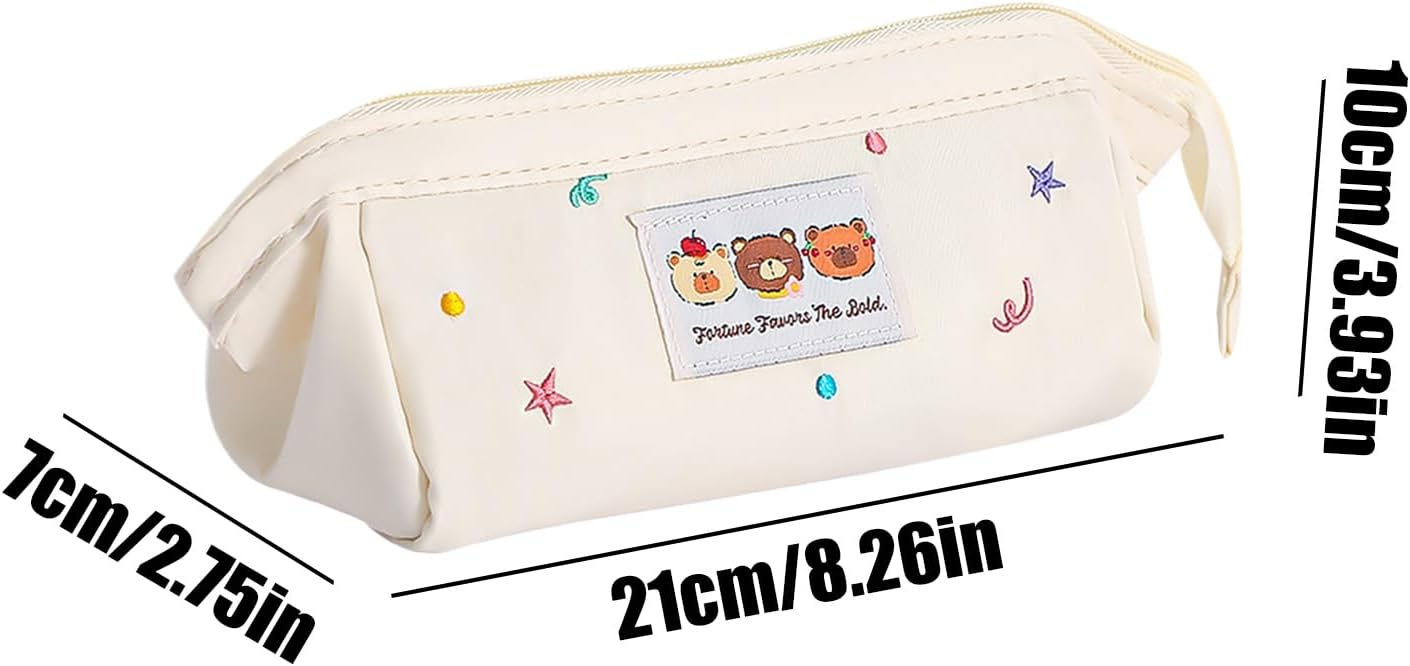 Organizzazione Efficiente: Tasche divisorie a rete, portapenne elastici e compartimenti organizzati per accesso immediato agli oggetti, mantenendo tutto perfettamente in ordine Regalo Premuroso: Portamatite realizzato con cura, scelta versatile come regalo pratico per scuola, o estetico o sopresa pensata. per occasioni come la ripresa scolastica con design adorabile e funzionalità organizzativa quotidiana Tela Poliestere Resistente: Design elegante con colori tenui, realizzato in durevole tela poliestere. o fotogenico da scrivania con chiusura a cerniera scorrevole per utilizzo quotidiano pratico e funzionale. Soluzione Multifunzione: Contiene fino a 40 penne e , funzionando come astuccio da viaggio o organizer per pennelli trucco grazie al design capiente che ottimizza lo spazio per necessità diverse Design Ricamato : Questa adorabile trousse presenta la qualità distintiva della tela e dettagli giocosamente eleganti, arricchita dal tenero ricamo di orsetti stellati che riflette il trendy stile Harajuku, ideale per valorizzare la tua collezione di cancelleria