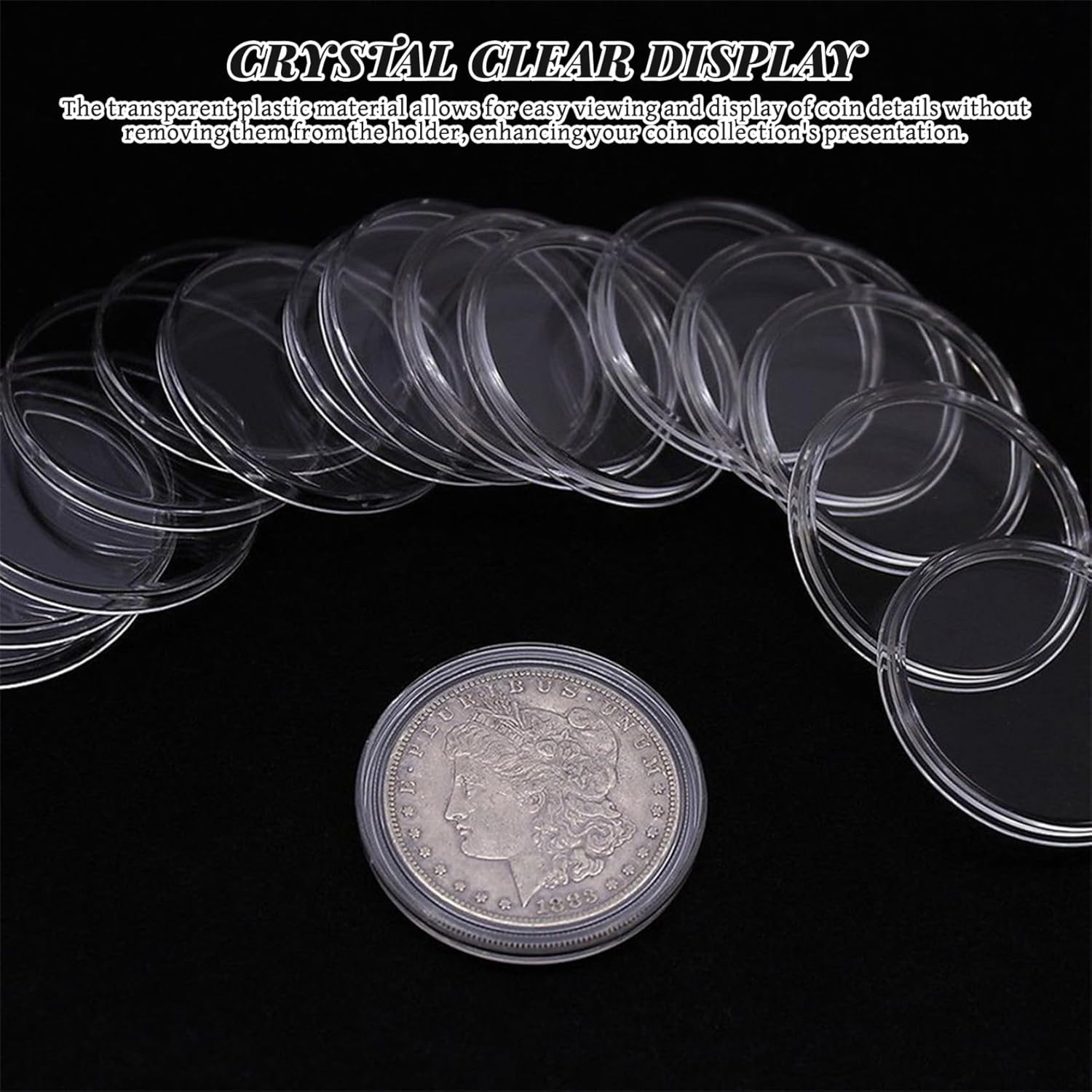 Facile da usare e conservare: le capsule leggere e impilabili semplificano l'organizzazione dell'esposizione o della conservazione delle monete, mentre una chiusura a scatto sicura garantisce che la moneta rimanga chiusa in modo sicuro. Display cristallino: il materiale plastico trasparente consente una facile visualizzazione e visualizzazione dei dettagli delle monete senza rimuoverle dal supporto, migliorando la presentazione della tua collezione di monete. Comodità di fornitura in grandi quantità: con 200 pezzi inclusi, questo set da collezione offre un'ampia fornitura per organizzare e proteggere grandi collezioni di monete, rendendolo ideale sia per gli hobbisti che per i numismatici seri. Protezione stabile: realizzati in plastica trasparente, questi portamonete da 20 mm forniscono una protezione affidabile da polvere, graffi e impronte digitali, preservando le condizioni e il valore dei tuoi preziosi dollari d'argento e altre monete. Design di ottima vestibilità: progettata specificamente per monete da 20 mm, ciascuna capsula racchiude in modo sicuro la tua moneta senza spazio eccessivo, prevenendo movimenti e potenziali danni durante la manipolazione o lo stoccaggio.
