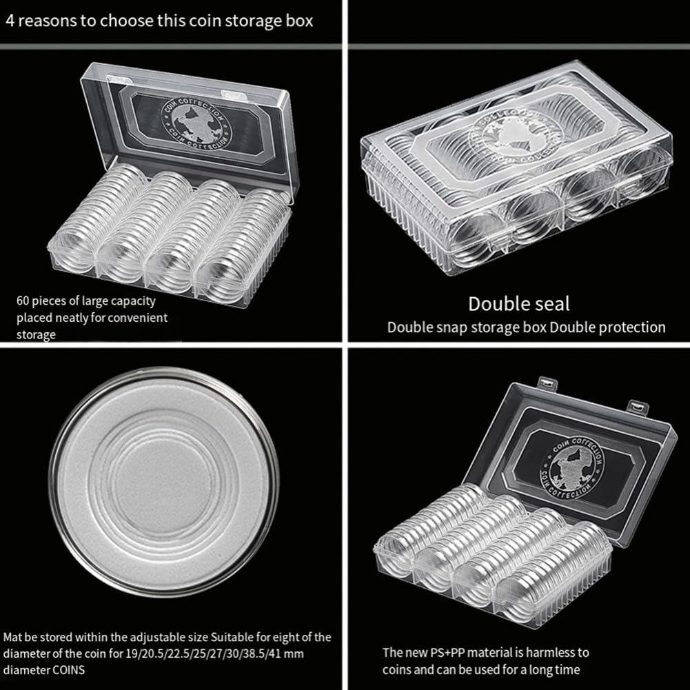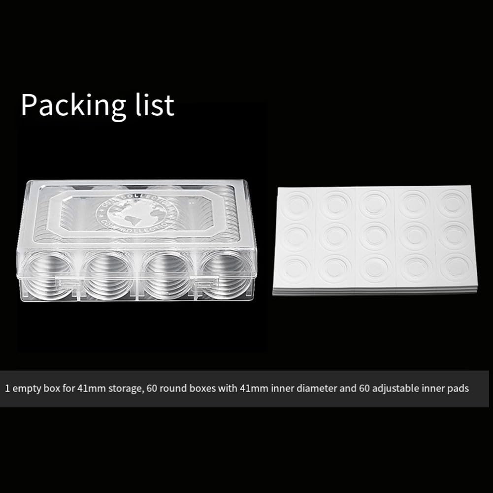 Ampio e organizzato: con una grande capacità di 60 pezzi, questo portamonete consente una soluzione spaziosa e organizzata per la vostra preziosa collezione. Materiale di lunga durata: realizzato in materiale PS+PP di lunga durata, questo portamonete garantisce durata e longevità per un uso a lungo termine. Design con fibbia sicura: la chiusura a fibbia e la protezione a doppio strato offrono una maggiore sicurezza e sicurezza per i tuoi oggetti preziosi, mantenendoli ben protetti. Cuscinetto interno regolabile: il cuscinetto interno regolabile può ospitare diametri che vanno da 19/5/22,5/25/27/30/38,5/41 mm, si adatta perfettamente a diverse dimensioni di monete. Soluzione di archiviazione affidabile: progettato specificamente per i collezionisti, questo portamonete offre una soluzione affidabile e comoda per riporre le vostre preziose collezioni di monete.