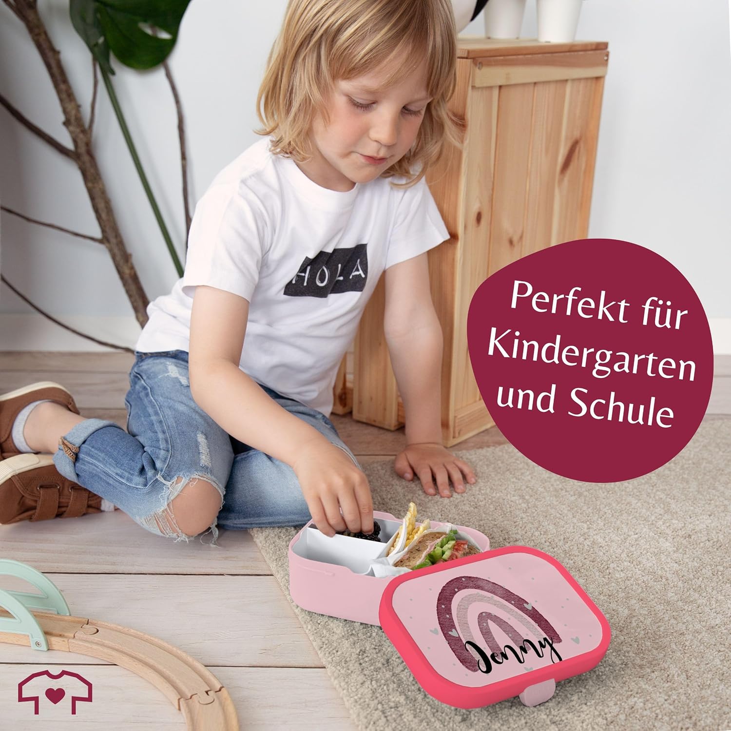 ✔️ SCATOLA PERSONALIZZATA: simpatico motivo con arcobaleno e nome inserto Bento: questo bellissimo contenitore per il pranzo per bambini consente di separare il cibo grazie all'inserto Bento rimovibile e può quindi essere utilizzato in vari modi. Che si tratti del classico pranzo o della frutta fresca e secca per la scuola, grazie agli scomparti tutto rimane fresco e appetitoso. Forchetta snack: il contenitore per il pranzo ti invita a gustare un'ampia varietà di cibi con la piccola forchetta snack. Il contenitore per snack non è adatto al microonde. Per riscaldare il cibo è quindi necessario toglierlo dal contenitore del pranzo. Lavabile in lavastoviglie: la pulizia del contenitore per il pranzo dei bambini può essere effettuata facilmente in lavastoviglie dopo l'uso. Sia il contenitore per il pranzo, l'inserto bento che la forchetta sono lavabili in lavastoviglie e quindi facili e igienici da pulire. Il materiale del contenitore per il pranzo è privo di BPA e adatto agli alimenti, quindi non dovrai preoccuparti delle sostanze chimiche nocive. Leggero: con un peso di soli 250 grammi, il contenitore per il pranzo stampato può essere facilmente portato ovunque. Con una dimensione di 132 mm di larghezza, 178 mm di lunghezza e 61 mm di altezza, il contenitore per il pranzo è compatto e perfetto per la borsa della scuola o lo zaino. Con una stampa divertente, il contenitore per il pranzo è perfetto per l'inizio della scuola e per ogni altra pausa pranzo