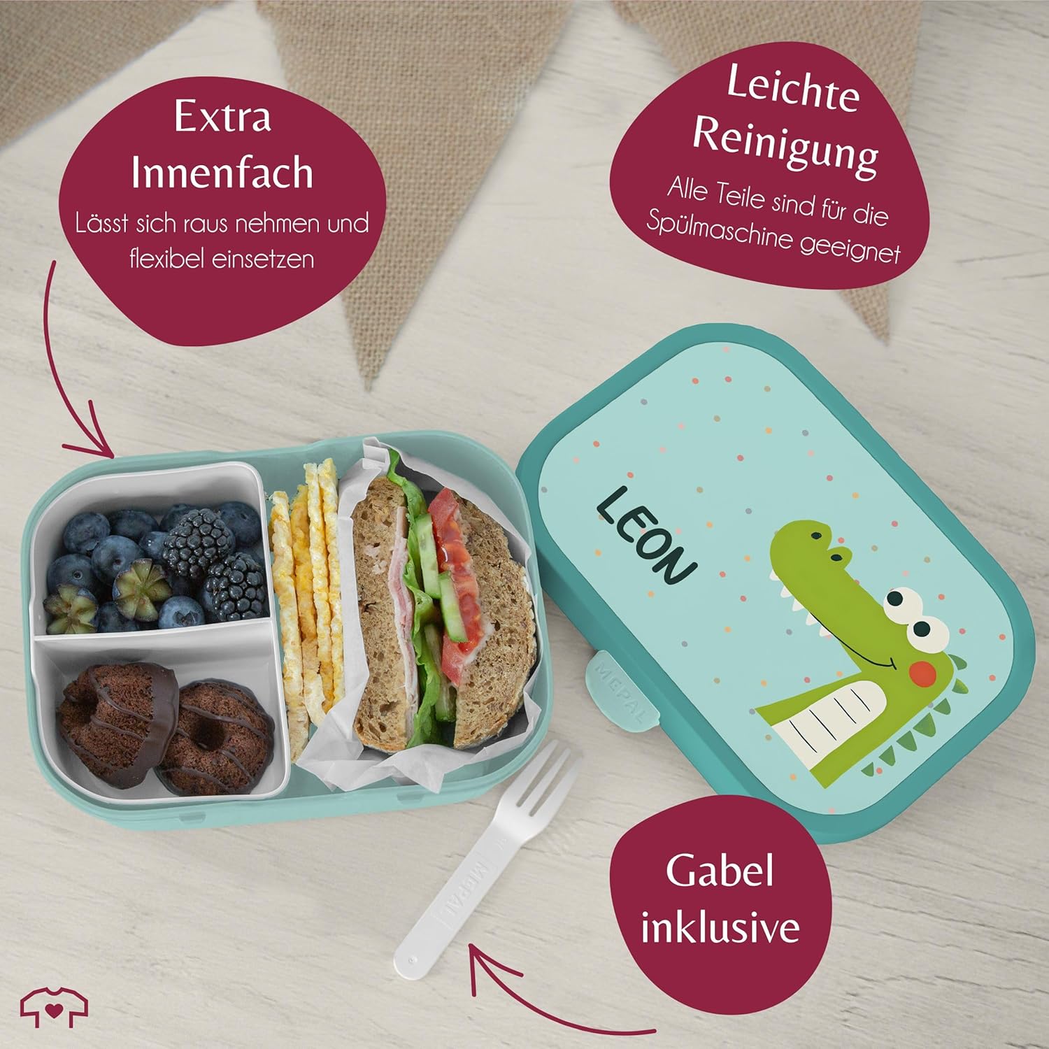 Portapranzo campus per bambini per Mepal - portapane simpatico coccodrillo con nome regalo per bambini in età scolare idea regalo inizio scuola inizio scuola regalo inizio scuola coccodrilli - 750 ml - turchese