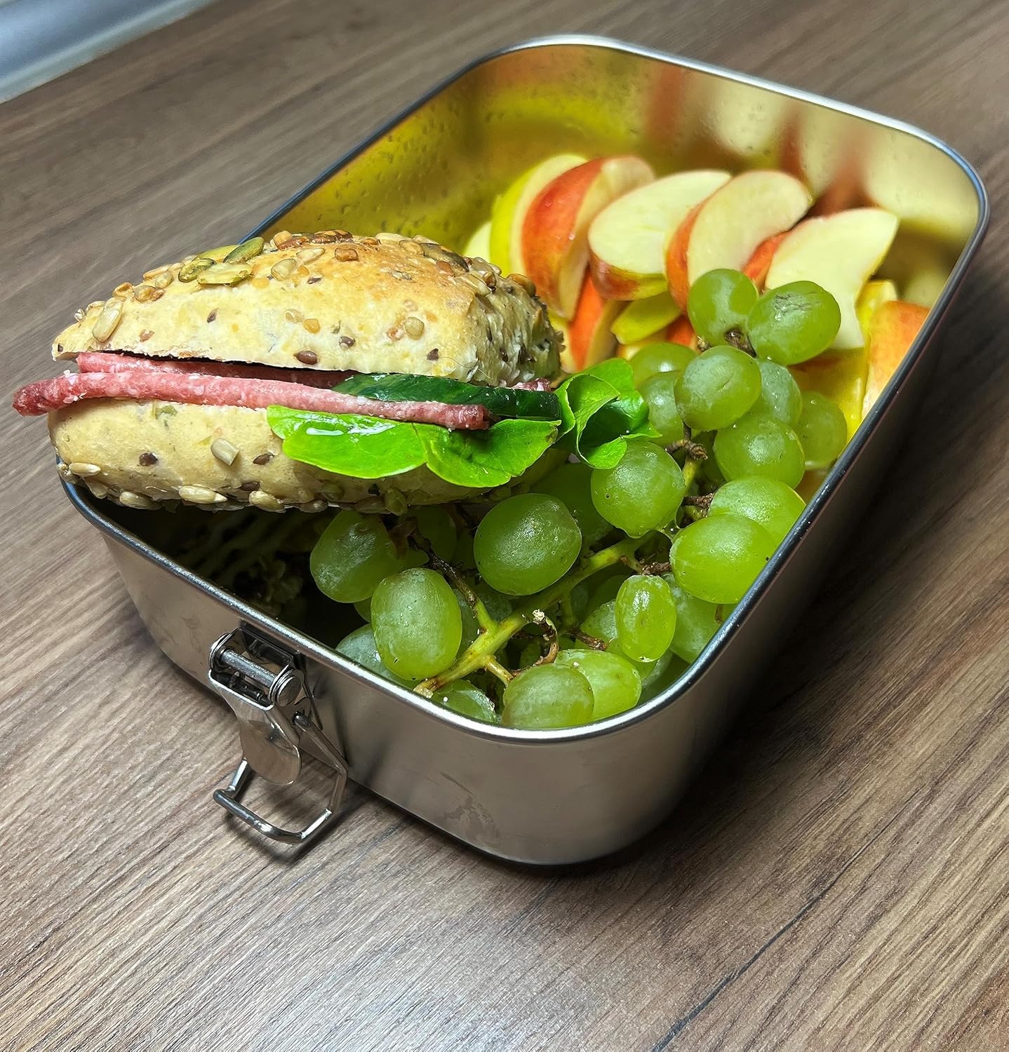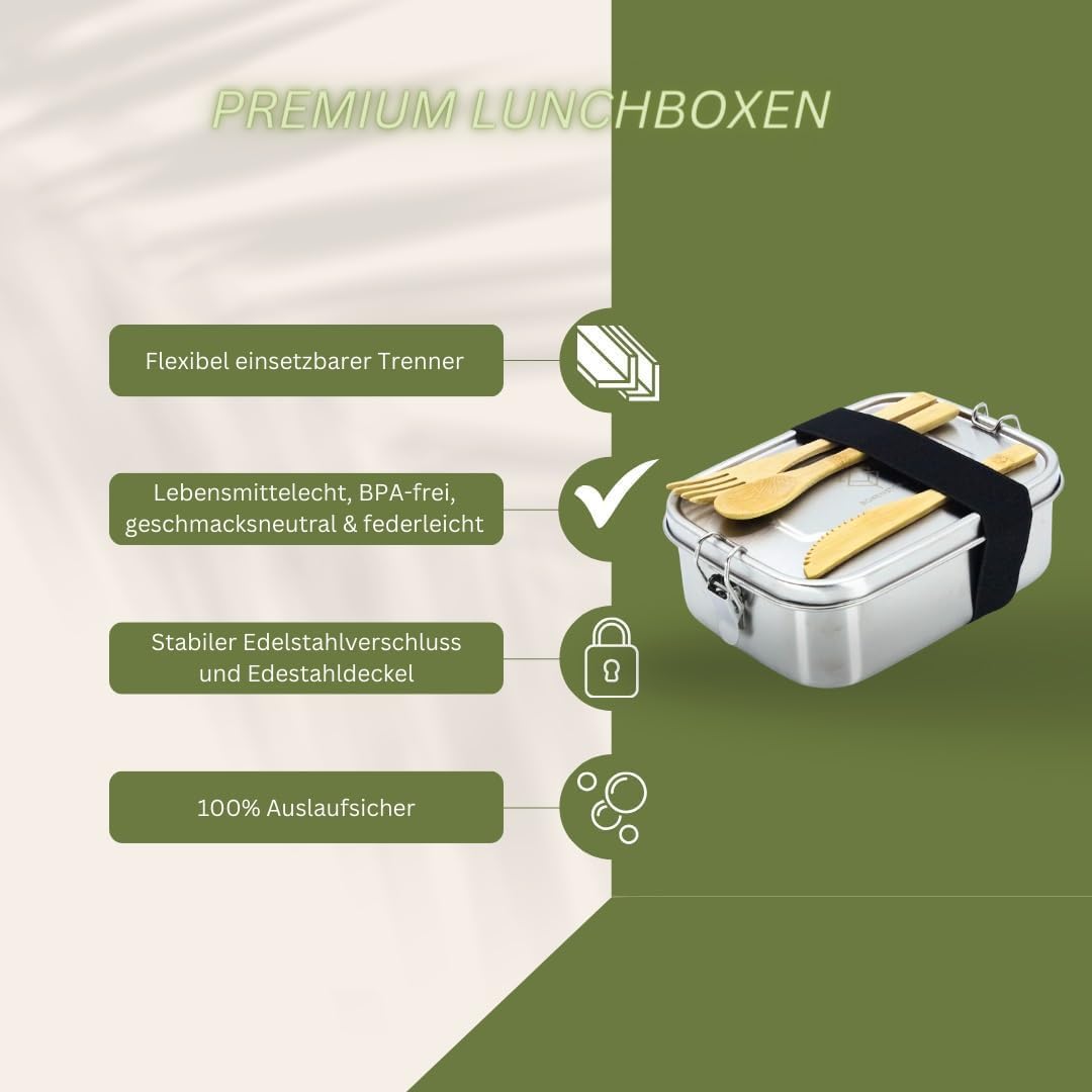 🍎 Alta qualità: siamo così convinti della qualità premium dei nostri contenitori per il pranzo che ci diamo molto spazio (tranne il sigillo)! 🍎 Alta qualità: il portapranzo che preferisci ➕ 𝟑-𝐭𝐞𝐢𝐥𝐢𝐠𝐞𝐬 composto da coltello, forchetta, cucchiaio ➕ un alimento flessibile-𝐓𝐫𝐞𝐧𝐧𝐞𝐫 ➕ uno ➕ un Realizzato in cotone biologico ➕ un'alta qualità 𝐑𝐞𝐢𝐧𝐢𝐠𝐮𝐧𝐠𝐬𝐭𝐮𝐜𝐡 𝐚𝐮𝐬 𝐁𝐚𝐦𝐛𝐮𝐬𝐟𝐚𝐬𝐞𝐫𝐧 ➕ un 𝐛𝐫𝐞𝐢𝐭𝐞𝐬 𝐆𝐮𝐦𝐦𝐢𝐛𝐚𝐧𝐝 per fissare le posate al cestino del pranzo. 🍎 Qualità: 100% senza plastica, 100% per alimenti, 0% plastificanti! Il nostro contenitore per il pranzo in acciaio inossidabile è realizzato in acciaio inossidabile di alta qualità per alimenti, noto non solo per la sua resistenza, ma anche per il fatto che non assorbe odori e sapori, ovvero è completamente inodore e insapore. Ciò significa che il tuo cibo rimane sempre fresco e delizioso, senza alterarne il gusto. 🍎 Alta qualità: il coperchio stabile con clip di sicurezza e guarnizione in silicone garantisce in modo affidabile che la lattina sia assolutamente ermetica e a prova di perdite e non dovrai mai più preoccuparti della fuoriuscita di liquidi. Tutti i bordi delle lattine sono zigrinati e ondulati in modo pulito e garantiscono una protezione affidabile contro i tagli. Il contenitore per il pranzo è lavabile in lavastoviglie e quindi facile da pulire. 🍎 Alta qualità: il nostro contenitore per il pranzo in acciaio inossidabile per alimenti è ecologico, non tossico e sostenibile. Con questa scelta sostenibile, insieme aiutiamo a proteggere il nostro pianeta e a creare un futuro sano per le generazioni future.