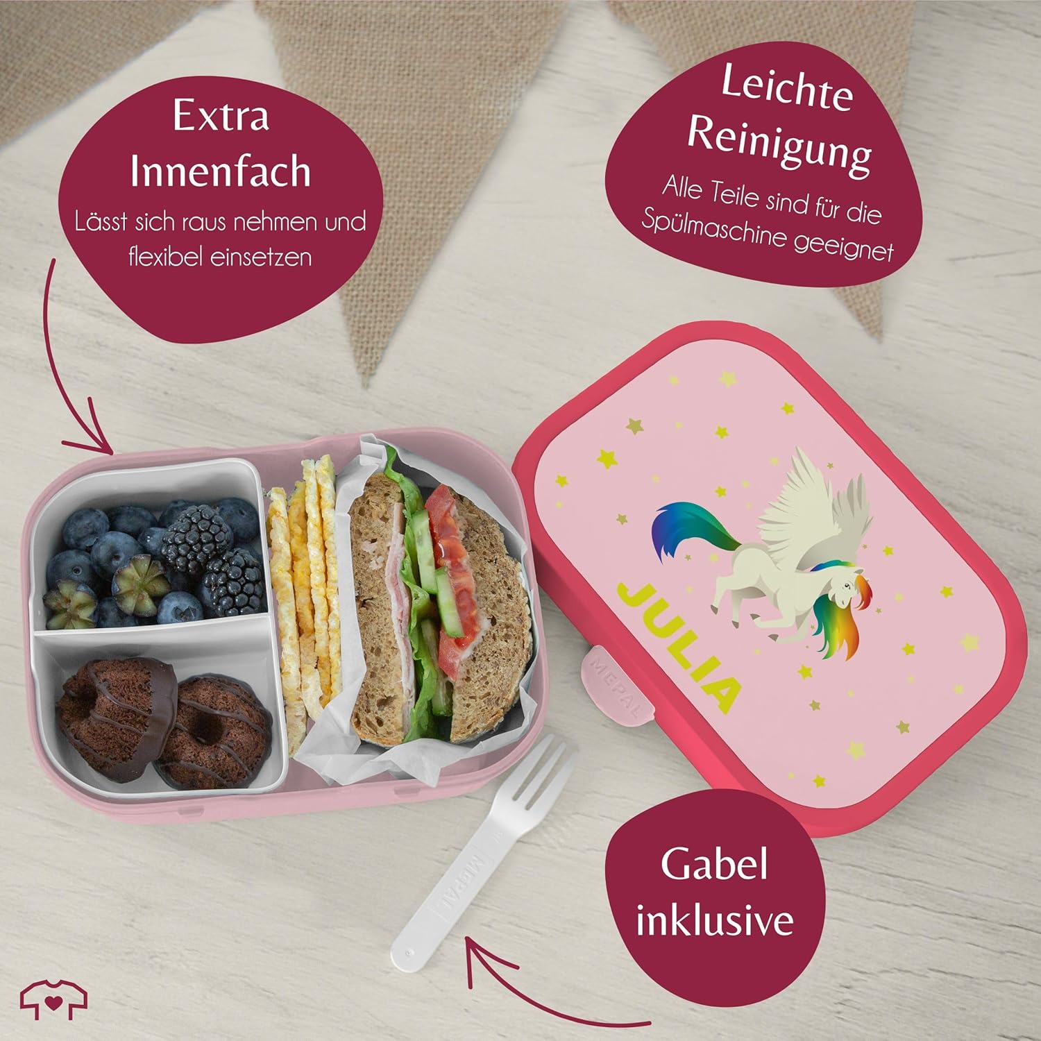 Portapranzo per bambini Campus per Mepal - unicorni - portapranzo unicorno portapranzo unicorno motivo ragazza I - 750 ml - rosa - regali contenitori per il pranzo per bambini della scuola asilo unicorni personalizzabili