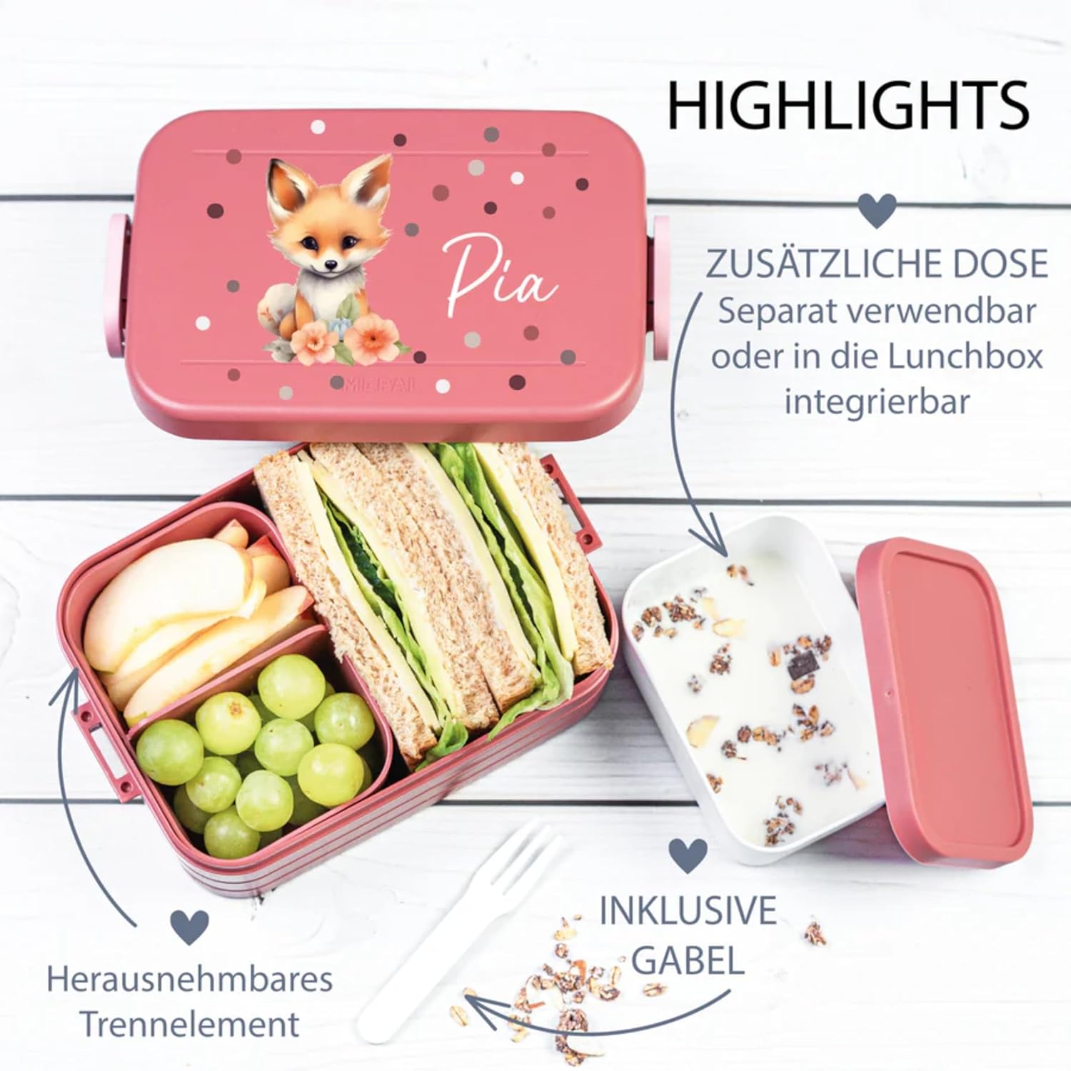🎨 DESIGN: contenitore per il pranzo dal design amorevole con motivo di procione - perfetto per piccoli avventurieri ed esploratori. 🖋️ PERSONALIZZAZIONE: il portapranzo viene stampato individualmente con il nome desiderato: un articolo davvero unico per l'asilo e la scuola. 📦 QUALITÀ: contenitore per il pranzo midi di alta qualità: robusto, durevole e senza BPA. 🍎 PRATICO: Ideale per panini, snack e frutta - chiusura sicura e facile da aprire. 🎁 IDEA REGALO: ottimo regalo personalizzato per i compleanni dei bambini, l'inizio della scuola o l'inizio dell'asilo nido.