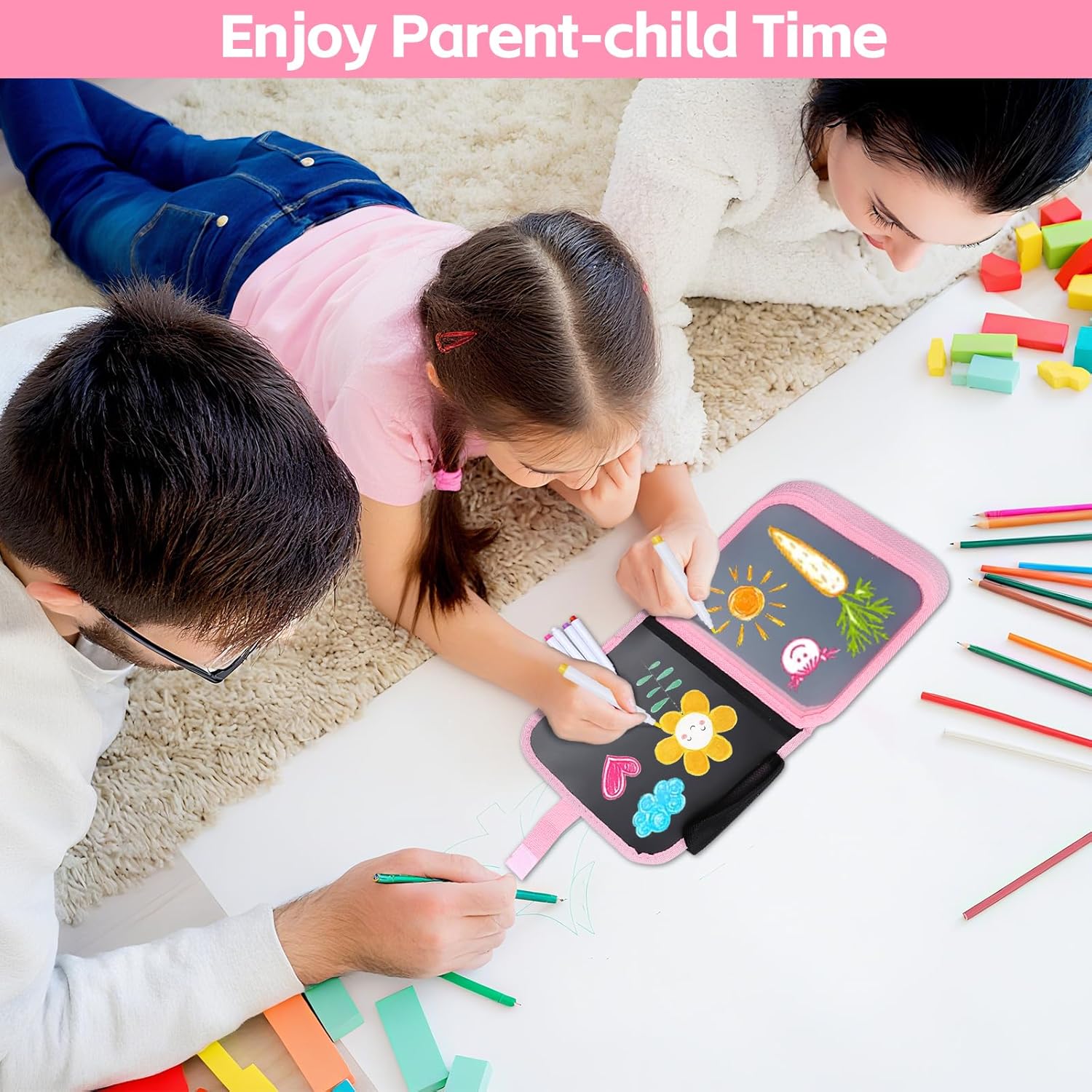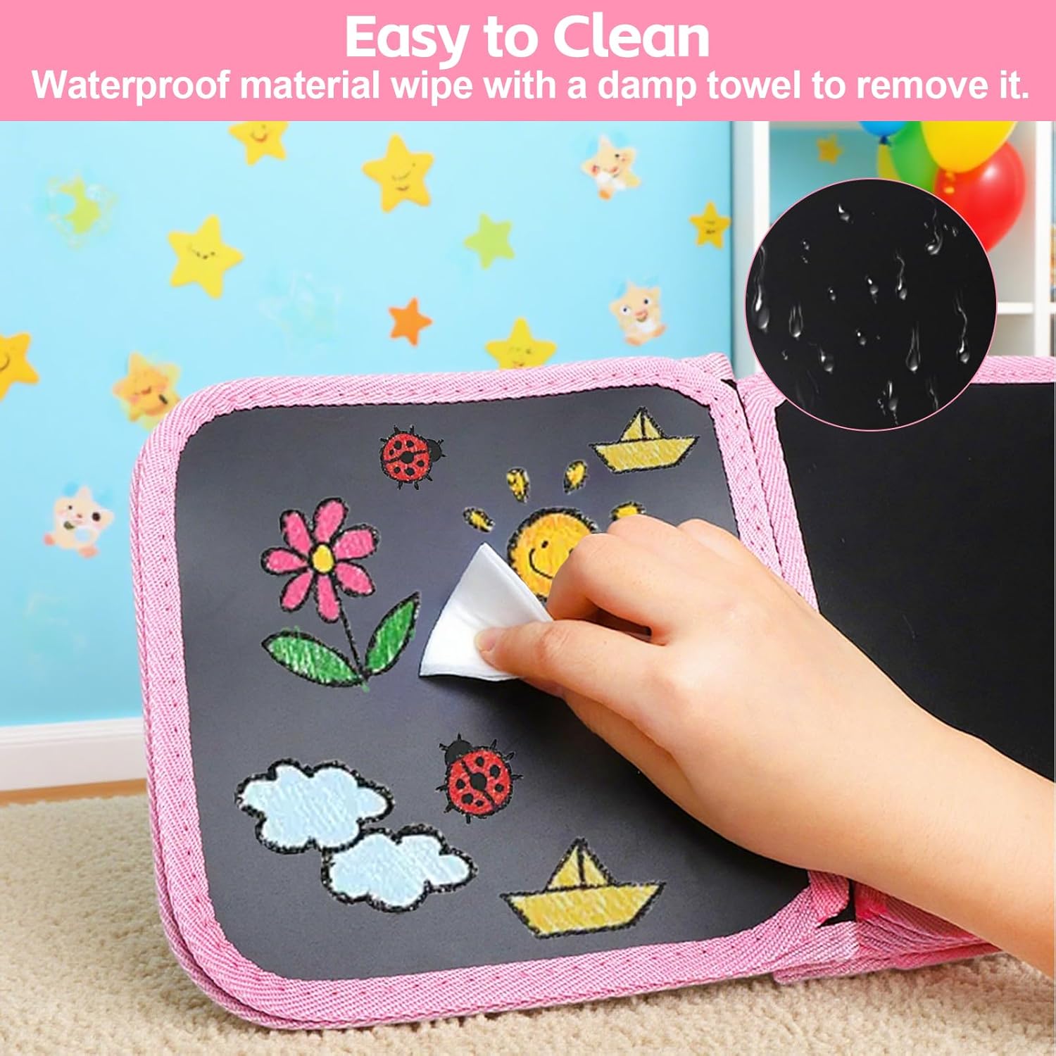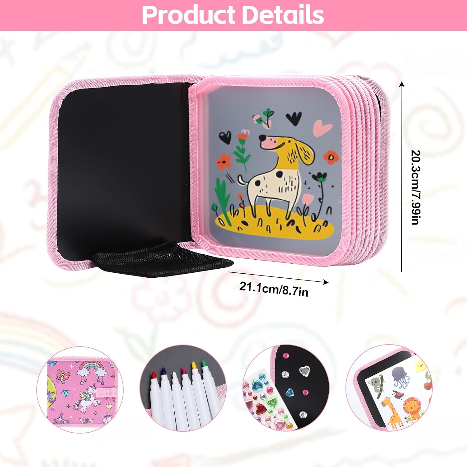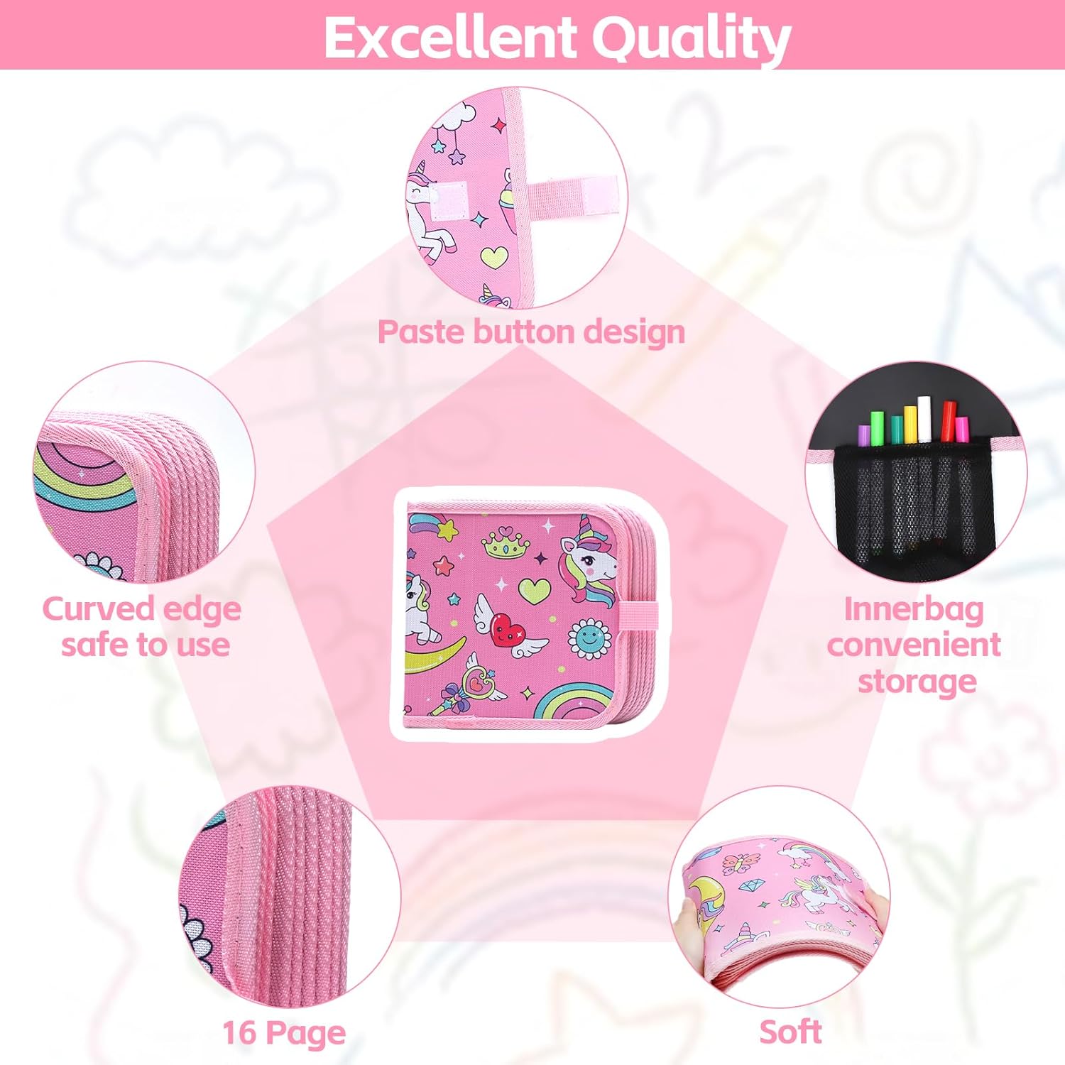 Set creativo completo per bambini: Questo kit viaggio bambini include un libro da colorare cancellabile con 16 pagine, salviette umide e un album da ricalco per stimolare l'immaginazione ovunque Design magico per bambine: La copertina con unicorno e luna incanta ogni piccola artista. Regalo perfetto per le bimbe, stimola fantasia, colore e amore per il disegno per bambini Riutilizzabile ed ecologico: Realizzato in materiale PP impermeabile, ogni pagina del libro si pulisce facilmente con un panno umido. Dì addio agli sprechi, scegli un'alternativa sostenibile e divertente Facile da trasportare ovunque: Il formato compatto e pieghevole rende questo portatile da disegno per bambini perfetto per viaggi in auto, aerei o ristoranti. Intrattiene i piccoli in modo silenzioso e creativo Imparare giocando: Il libro incoraggia la coordinazione mano-occhio, il riconoscimento dei colori e l'apprendimento delle prime parole. Un alleato educativo che trasforma ogni momento in un'opportunità di crescita