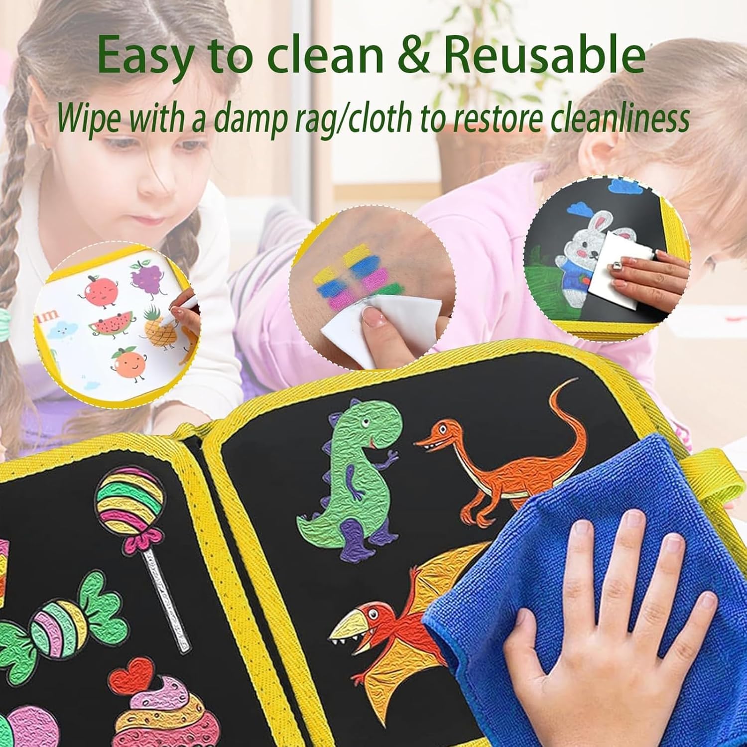 Materiali di Alta Qualità: Questo portatile da disegno per bambini è realizzato in materiale plastico di alta qualità. Il suo materiale è robusto e durevole, e può resistere agli scarabocchi, ai disegni, alle giravolte e ad altre azioni quotidiane dei bambini, e non è facile da danneggiare. Questo lavagnetta cancellabile bambini è stato rigorosamente testato e non contiene sostanze nocive, quindi puoi lasciare che i tuoi bambini lo usino in tutta sicurezza. Riutilizzabile: Questo libro da colorare riutilizzabile ha le caratteristiche di essere cancellabile e gli scarabocchi possono essere facilmente cancellati, permettendo ai bambini di continuare a scarabocchiare, disegnare e modificare i propri lavori nel libro da disegno. Non solo fa risparmiare carta, ma incoraggia anche i bambini a continuare a mettere alla prova la loro creatività e le loro idee sull'libro che si colora con acqua. Leggero e Portatile: Questo album da colorare per bambini è leggero e di dimensioni contenute, il che lo rende facile da trasportare. Che sia a casa, in viaggio o in attesa al ristorante, i bambini possono portarlo fuori per scarabocchiare e creare. Questo tavola da disegno per bambini può essere utilizzato in qualsiasi momento e in diverse occasioni. Giocattoli Educativi per Bambini: Questo libro da colorare per bambini presenta un grazioso motivo, che può aiutare i bambini a disegnare e progettare, promuovendo così la loro creatività e la coordinazione mano-cervello. Questo colori per bambini non è solo un prodotto di intrattenimento, ma può anche migliorare l'intelligenza e le capacità artistiche dei bambini. Un Regalo Fantastico: Questo libri da colorare per bambini è un regalo ideale per i bambini. L'aspetto raffinato, la ricca combinazione di colori e le funzioni pratiche possono far brillare i bambini che lo ricevono. Che si tratti di un compleanno o di altre occasioni speciali, regalare questo portatile da disegno è un regalo pratico ed educativo.