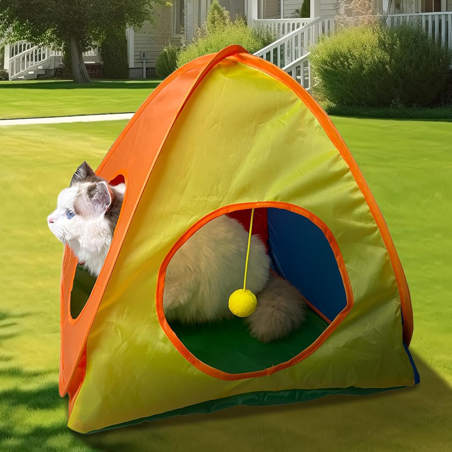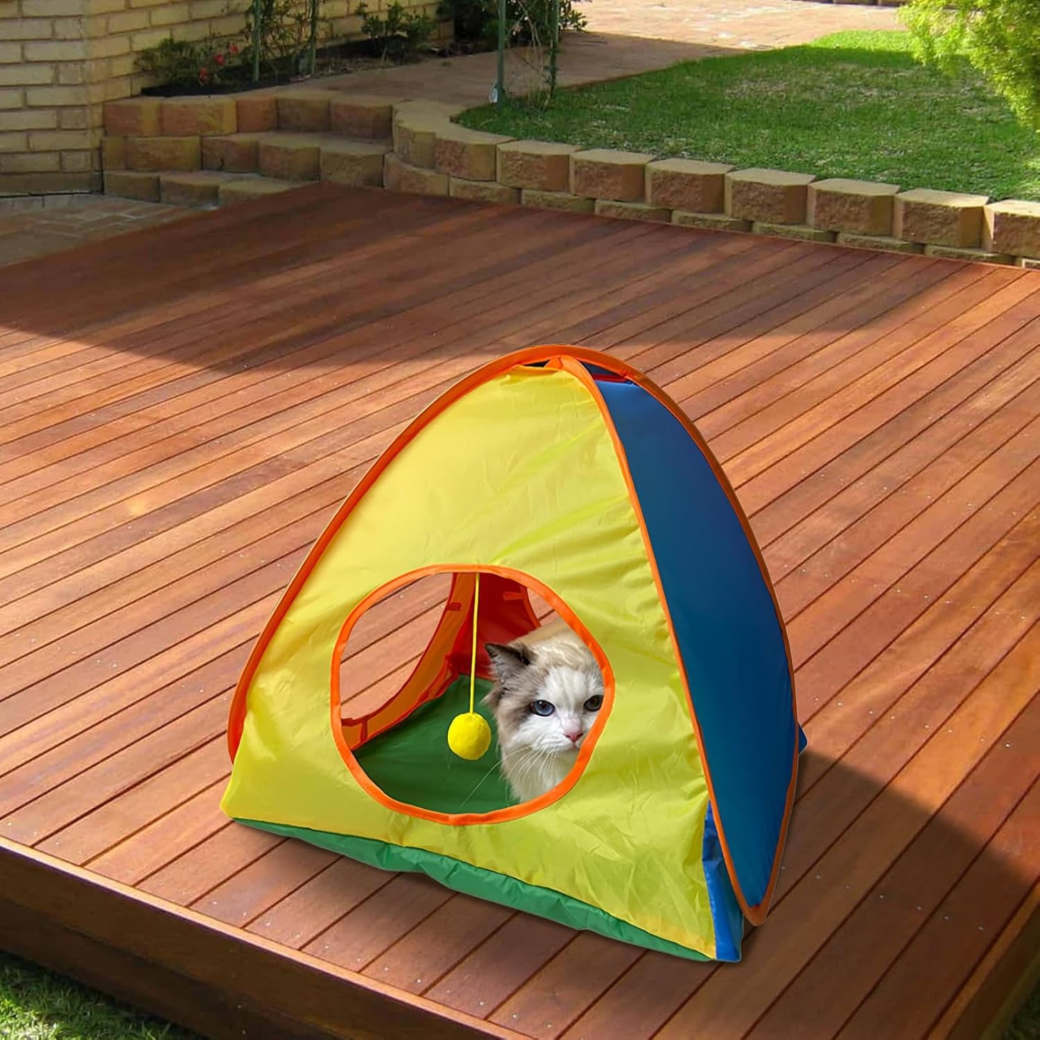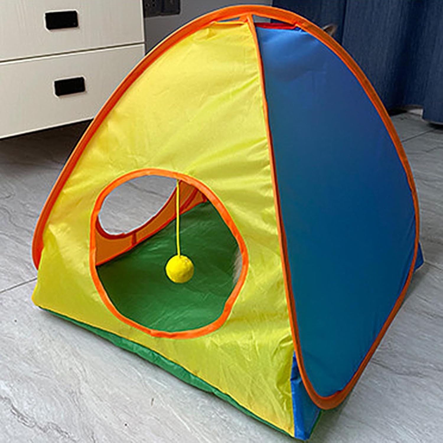Sistema anti-surriscaldamento: strato UV e zanzariera superiore che impedisce l'accumulo di calore. Garantisce un uso estivo all'aperto sicuro mentre la massima aerazione per il benessere del vostro animale domestico. Spazio Gioco Elegante: motivo arcobaleno vibrante e tonalità morbide attirano gli animali curiosi in questa tenda pieghevole, aggiungendo un tocco decorativo attraente al tuo salotto per sposare funzionalità e stile con grazia. Nascondigli spaziosi: incentrata sull'arricchimento del benessere degli animali, questa tenda pieghevole include palline giocattolo integrate. Offre nascondigli e aree di imboscata attraverso il suo design semi-chiuso, con ampio spazio per lo stretching e le attività che combinano gioco e relax. e resistente: tenda per animali con struttura rinforzata e tessuto resistente ai graffi, traspirabilità ottimale e robustezza durante l'uso quotidiano prolungato. Design salvaspazio: estremamente compatto quando ripiegato, questa tenda portatile e pieghevole per animali domestici assicura un rapido montaggio e stoccaggio risparmiando spazio grazie al suo design facile da trasportare, ideale per i viaggi.