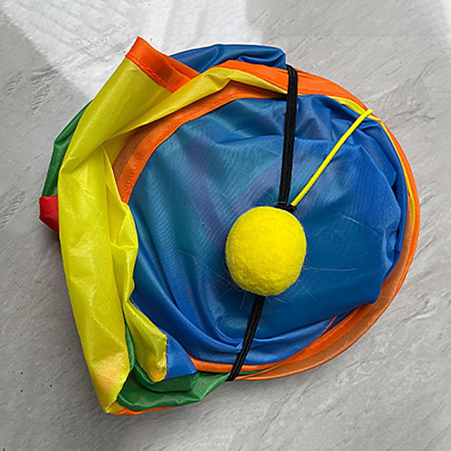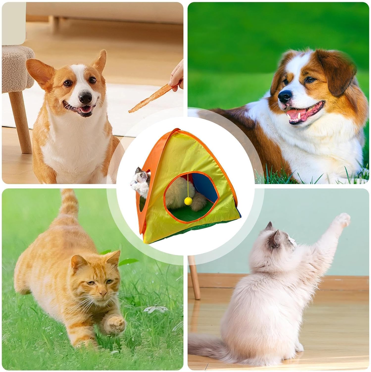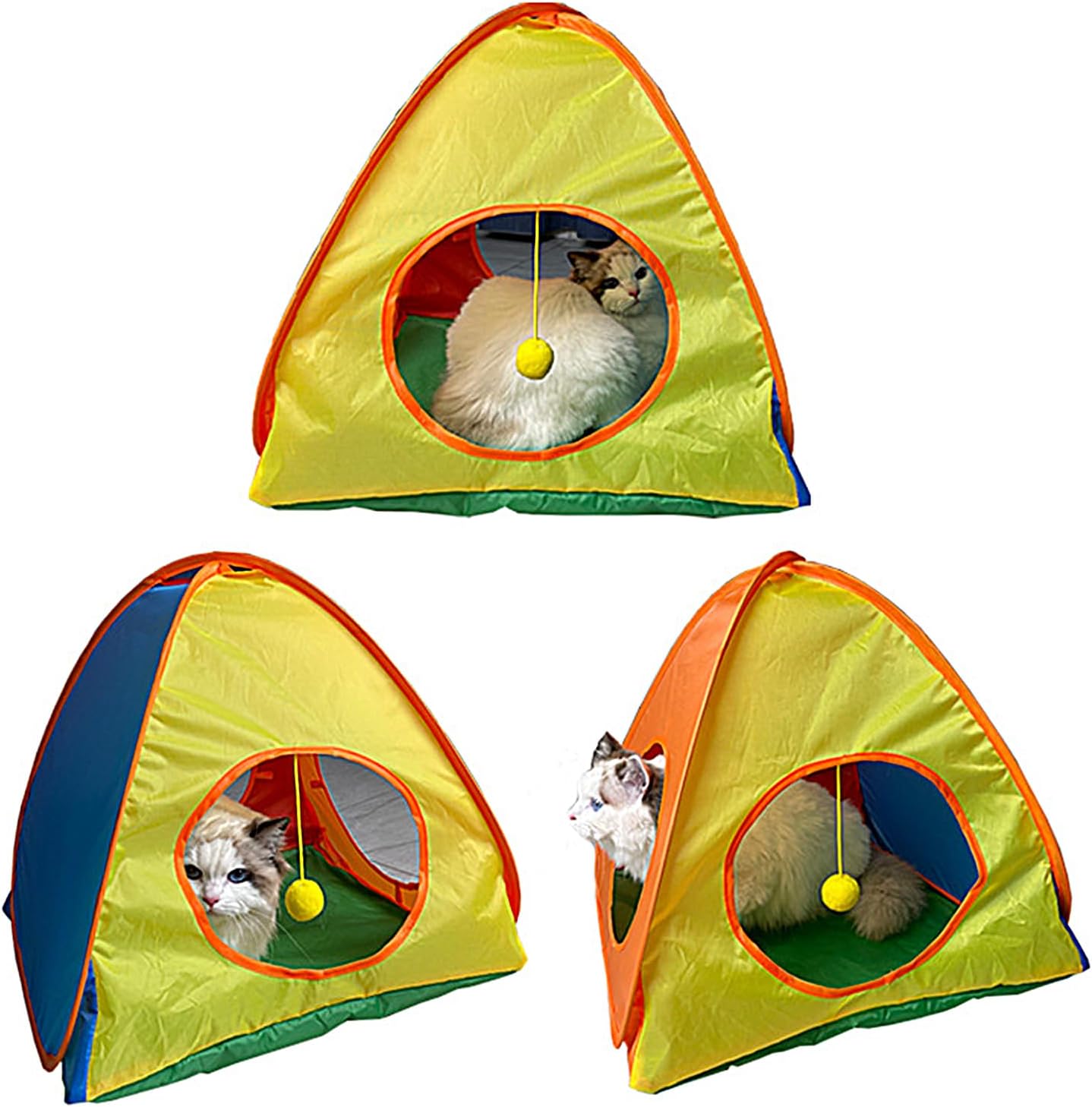 Sistema anti-surriscaldamento: strato UV e zanzariera superiore che impedisce l'accumulo di calore. Garantisce un uso estivo all'aperto sicuro mentre la massima aerazione per il benessere del vostro animale domestico. Spazio Gioco Elegante: motivo arcobaleno vibrante e tonalità morbide attirano gli animali curiosi in questa tenda pieghevole, aggiungendo un tocco decorativo attraente al tuo salotto per sposare funzionalità e stile con grazia. Nascondigli spaziosi: incentrata sull'arricchimento del benessere degli animali, questa tenda pieghevole include palline giocattolo integrate. Offre nascondigli e aree di imboscata attraverso il suo design semi-chiuso, con ampio spazio per lo stretching e le attività che combinano gioco e relax. e resistente: tenda per animali con struttura rinforzata e tessuto resistente ai graffi, traspirabilità ottimale e robustezza durante l'uso quotidiano prolungato. Design salvaspazio: estremamente compatto quando ripiegato, questa tenda portatile e pieghevole per animali domestici assicura un rapido montaggio e stoccaggio risparmiando spazio grazie al suo design facile da trasportare, ideale per i viaggi.