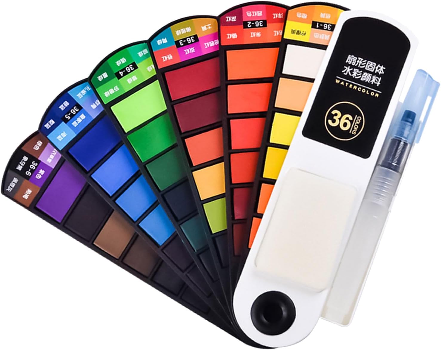 La confezione viene fornita con 24 colori (o 36 colori), penna ad acquerello ricaricabile e spugna. Set di pittura ad acquerello solido portatile molto adatto per pittori professionisti, principianti, artisti, studenti e bambini. Aiuta ad aggiungere alle tue opere d'arte Tutto ben organizzato in una custodia in metallo. Leggero e portatile. Funziona alla grande con pennello ad acquerello e spugna per diversi effetti sorprendenti Questa custodia pieghevole portatile per pittura ad acquerello è staccabile, da trasportare e utilizzare. Il solido pigmento acquerello ha un alto grado di colorazione, non sbiadisce facilmente. Sia su carta nera che bianca, molto piena di colori e fornisce un effetto sorprendente La pittura ad acquerello solida è stata macinata finemente, solubilità rapida in acqua, grande diffusione, colore uniformemente miscelato, elevata resistenza alla luce e alta saturazione. Può essere facilmente mescolato con colori diversi per effetti unici Realizzato con pigmenti solidi acquerelli, sicuro da usare. Ampiamente usato per l'insegnamento in classe, pittura ad acquerello, libri da colorare, progettazione di poster, pittura di paesaggio, schizzi all'aperto, pittura di viaggio. Regalo di vacanza per bambini, studenti, principianti